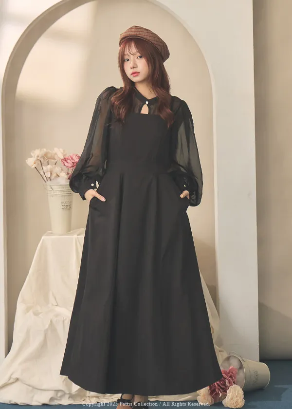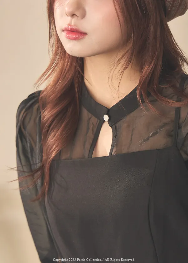 未簽署的保密協議 | 正反穿多way單釦絲光紗罩衫+背心洋裝set(黑)