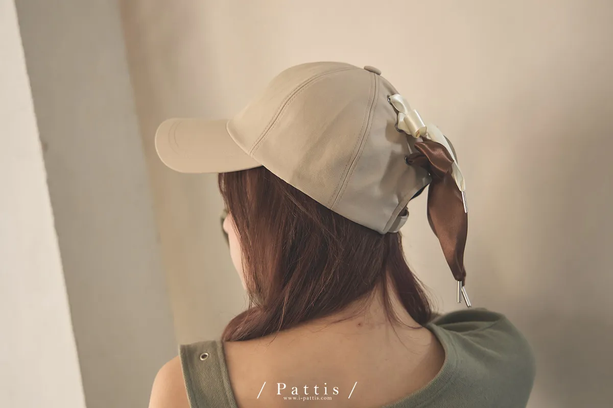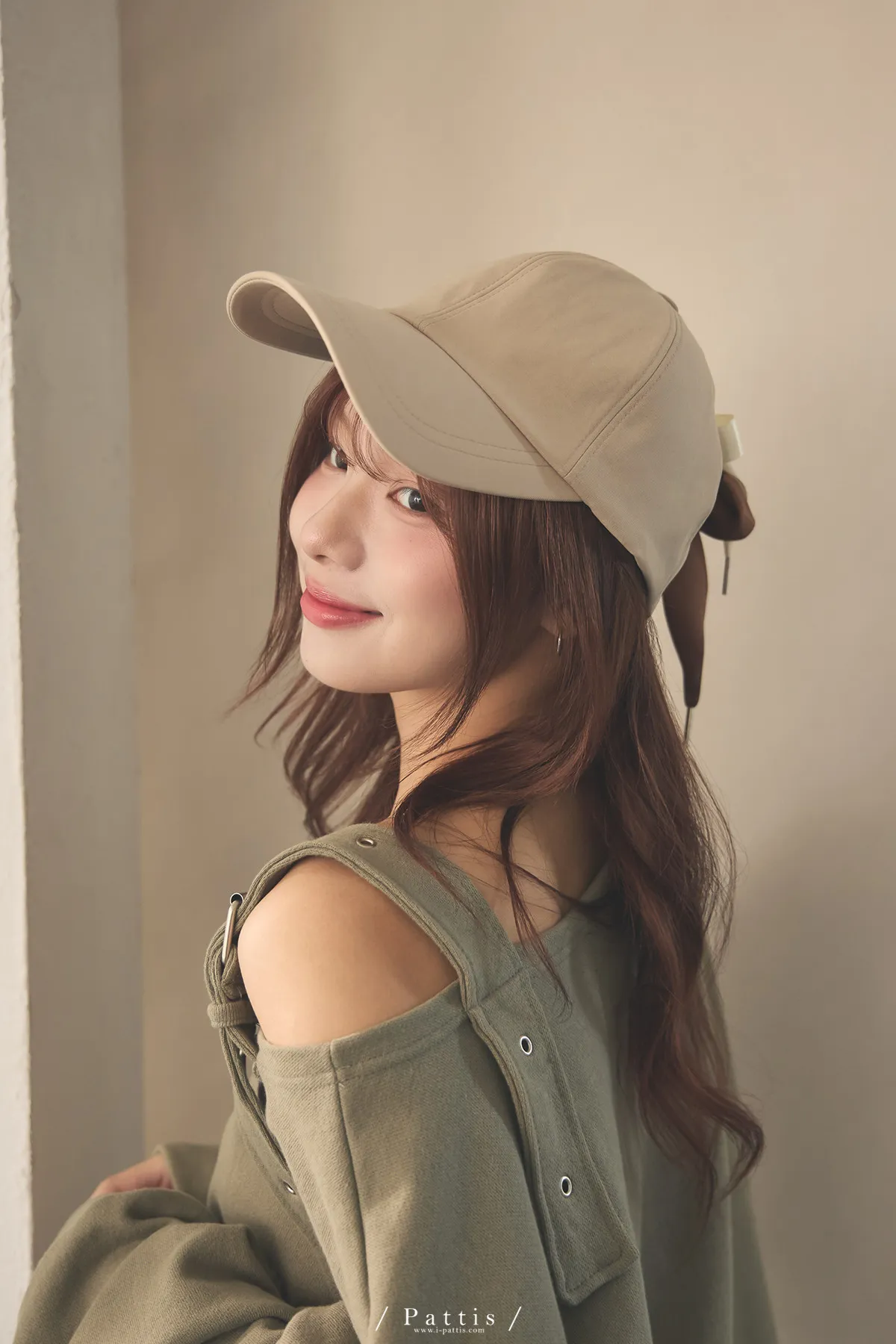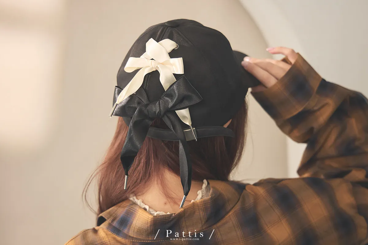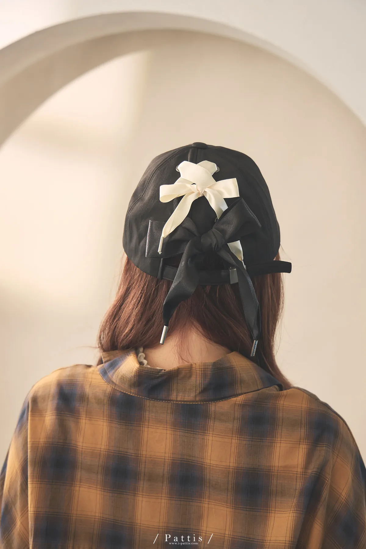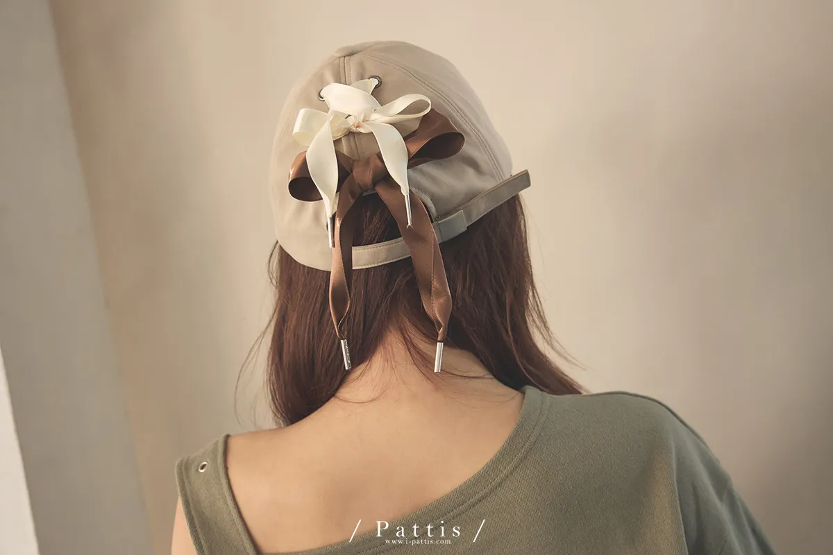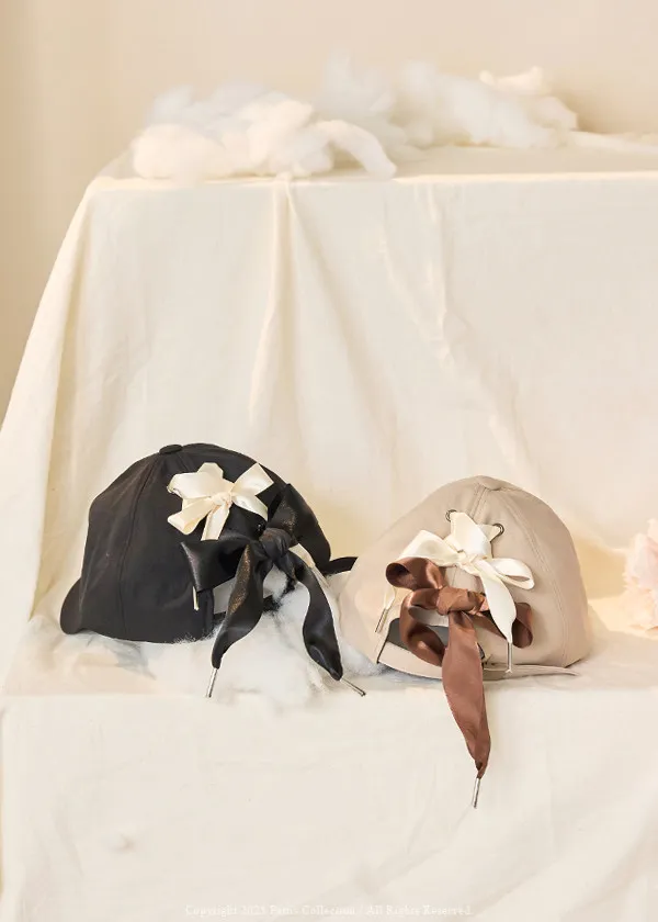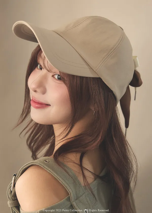 後雙色蝴蝶結棒球帽(灰杏/黑)