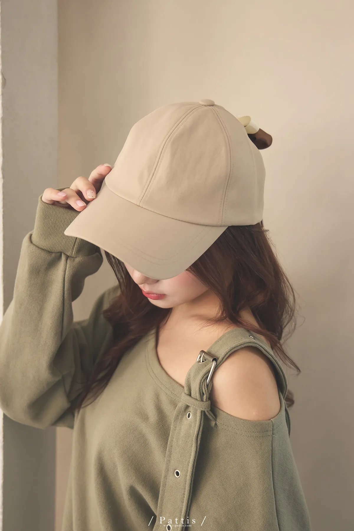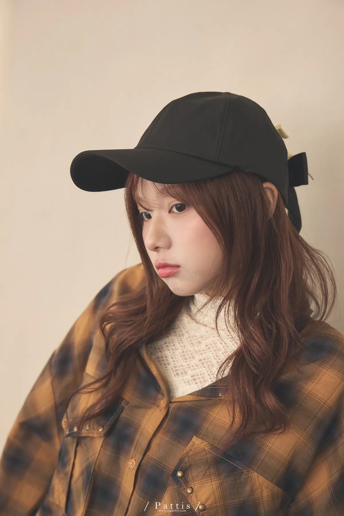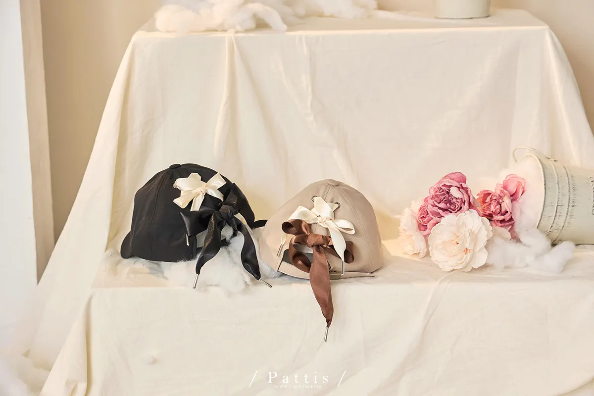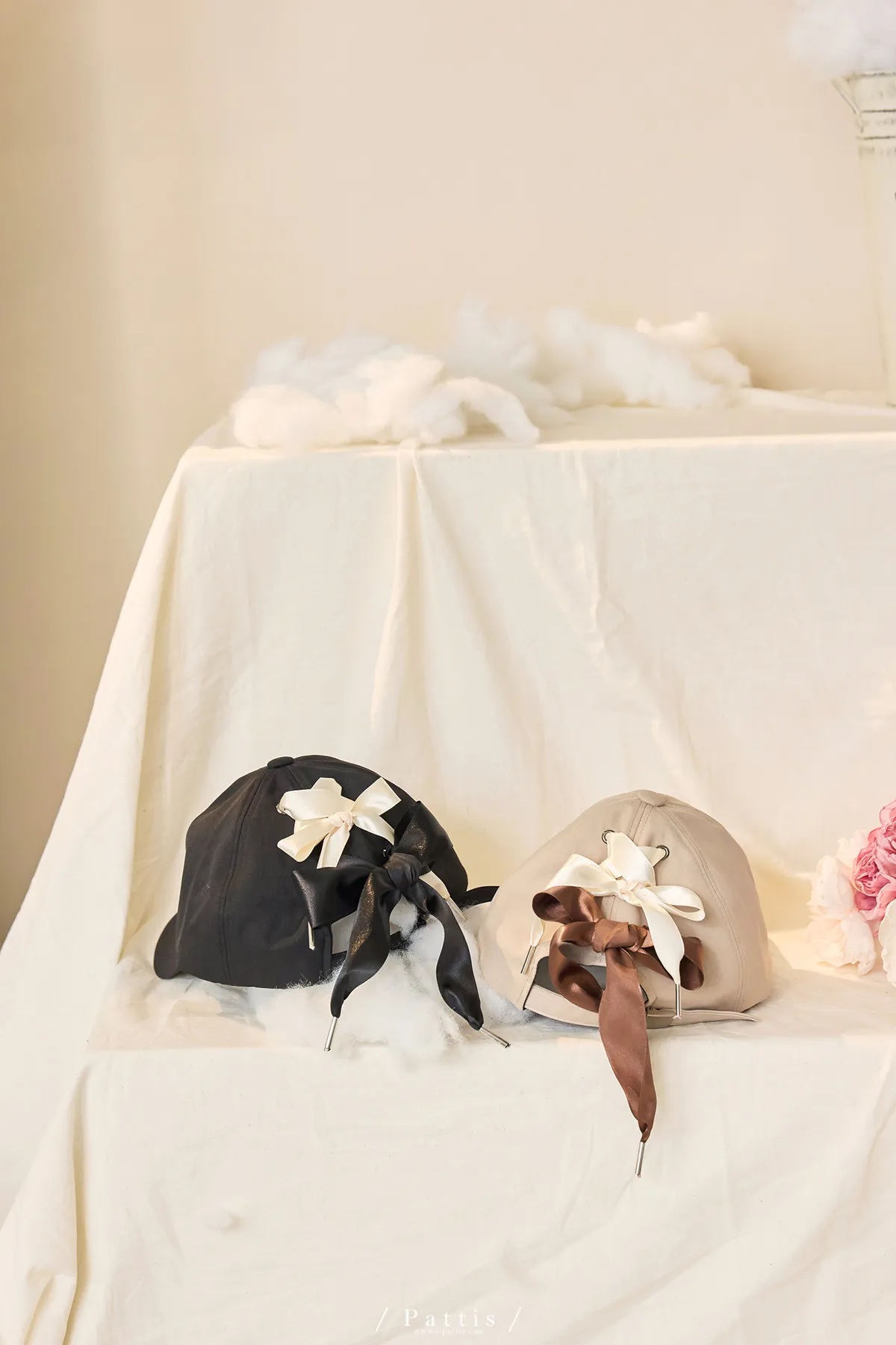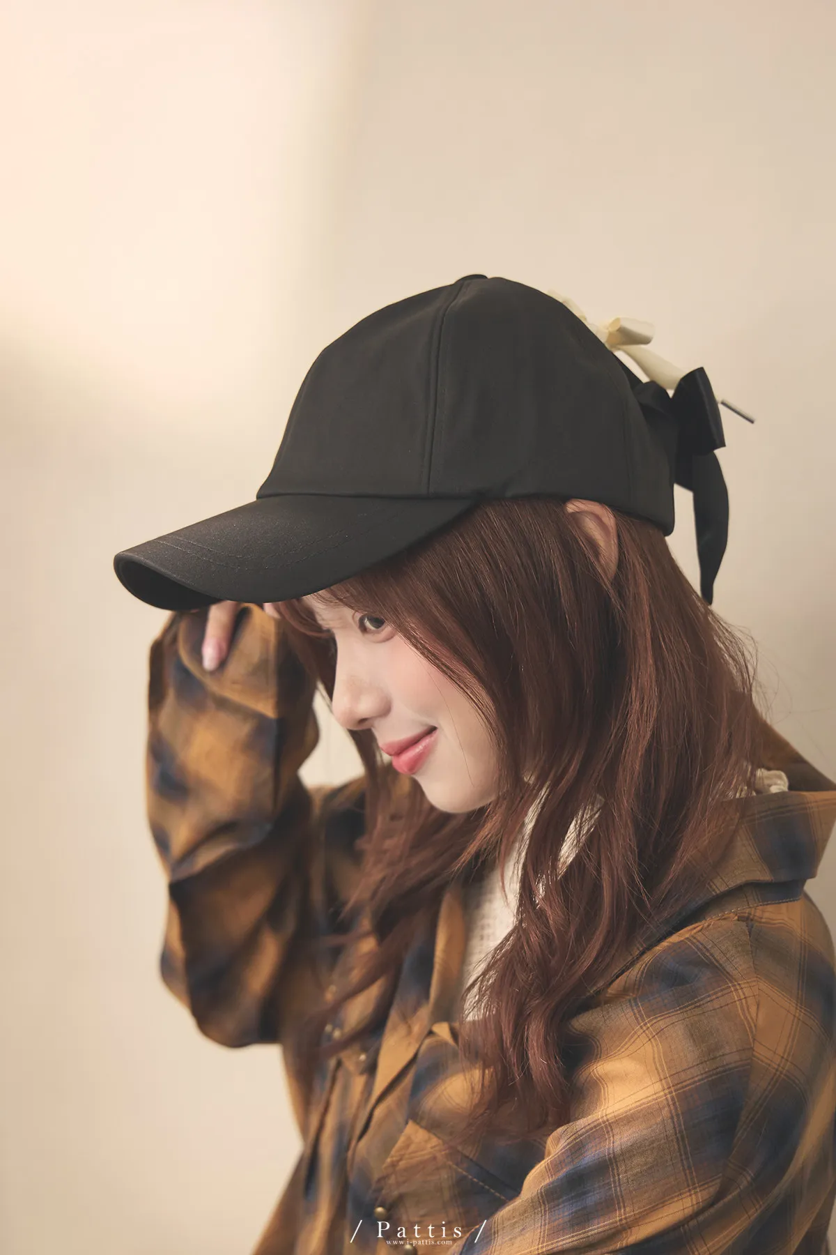 後雙色蝴蝶結棒球帽(灰杏/黑)