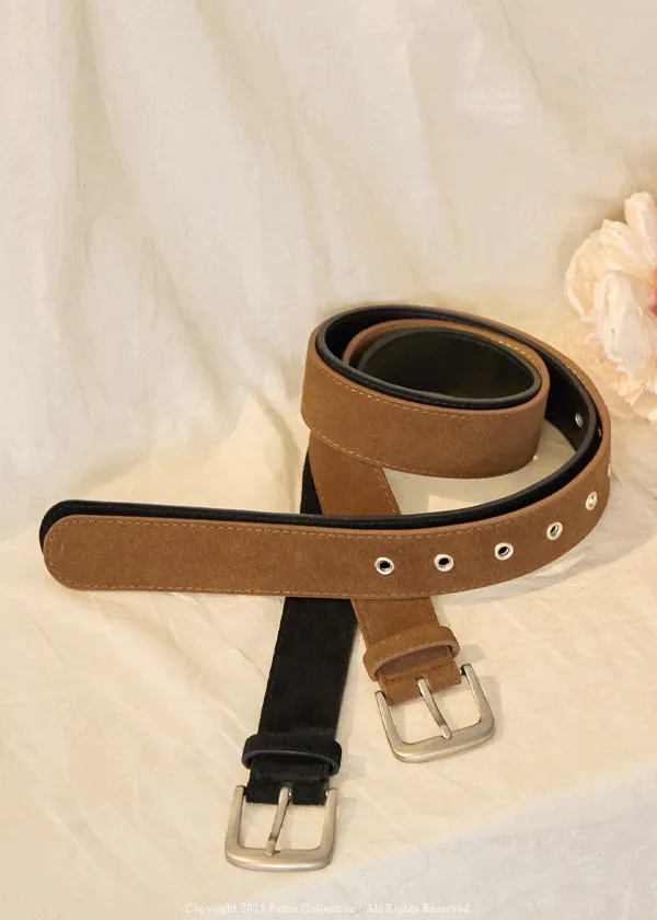 義大利真皮金屬多釦麂皮絨皮帶(駝棕/黑)
