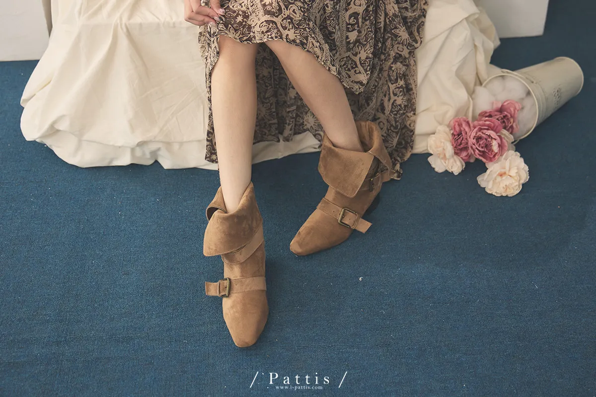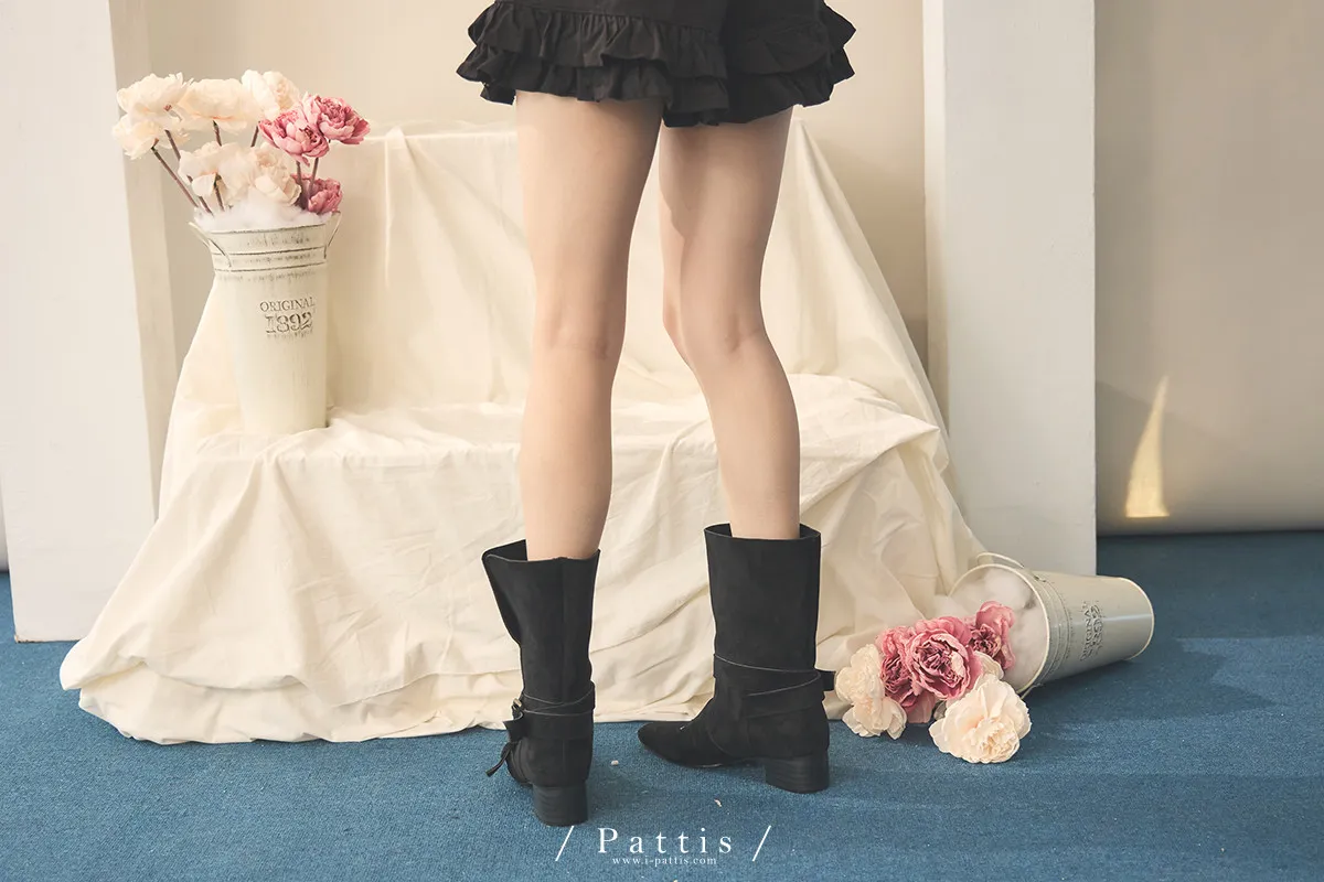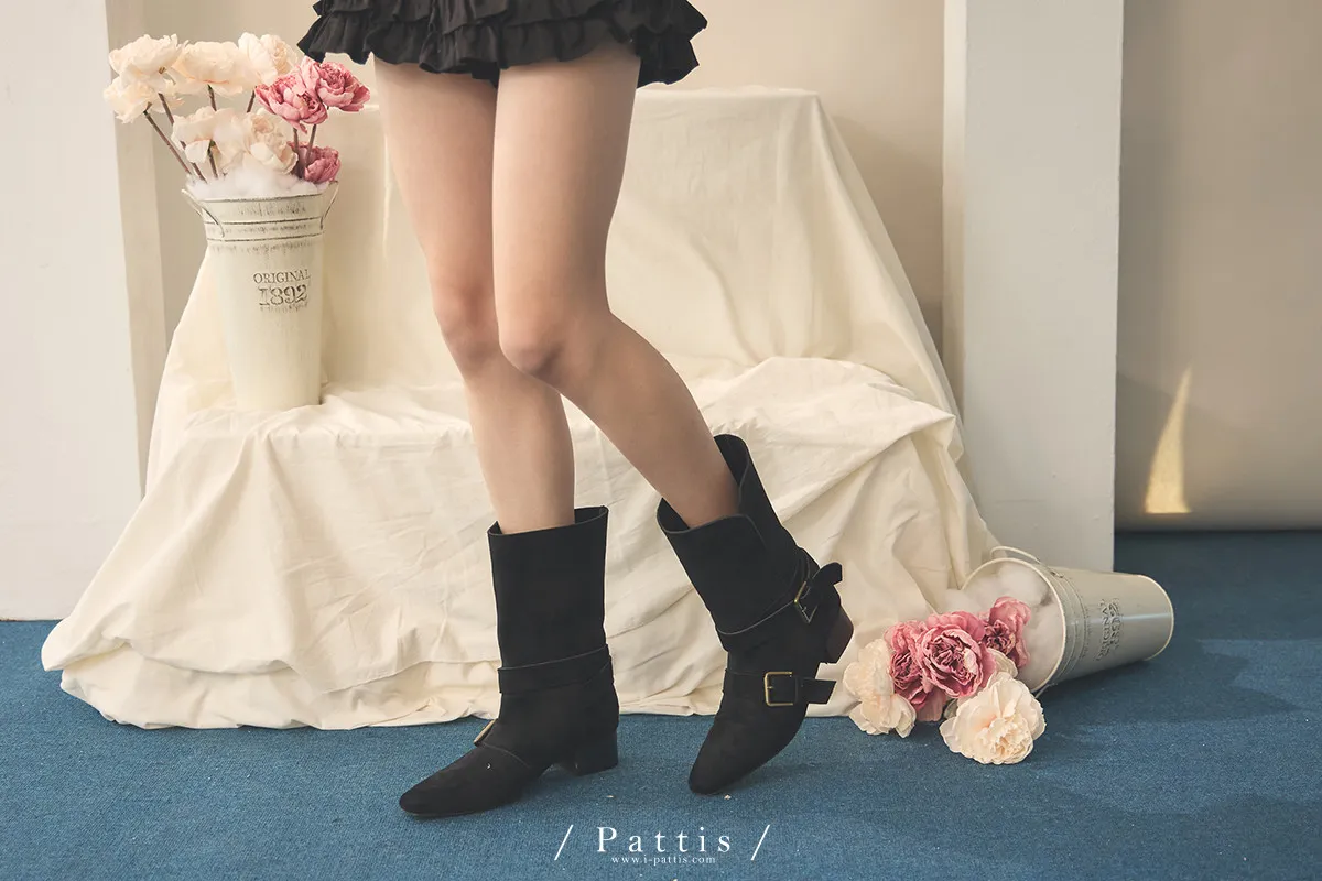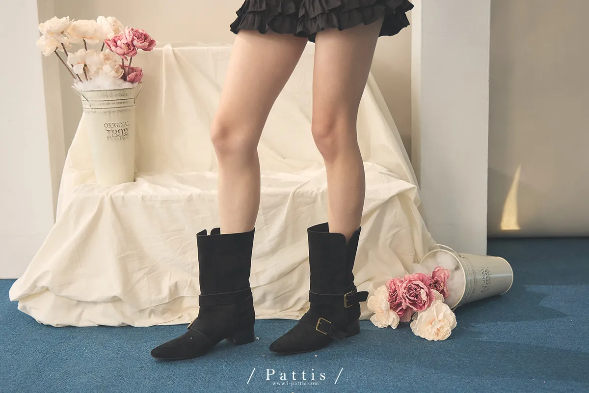 (現貨-陀棕24.0)環扣繫帶尖頭低跟2way翻摺中筒短靴(駝棕/黑)