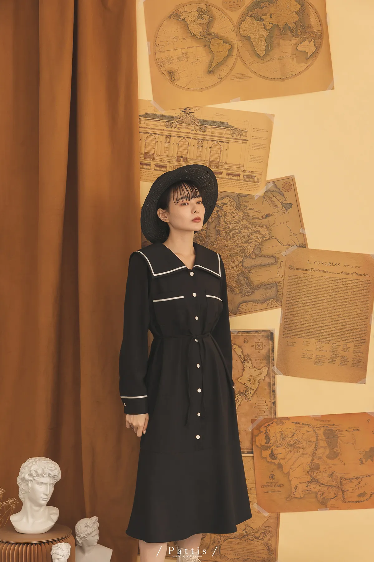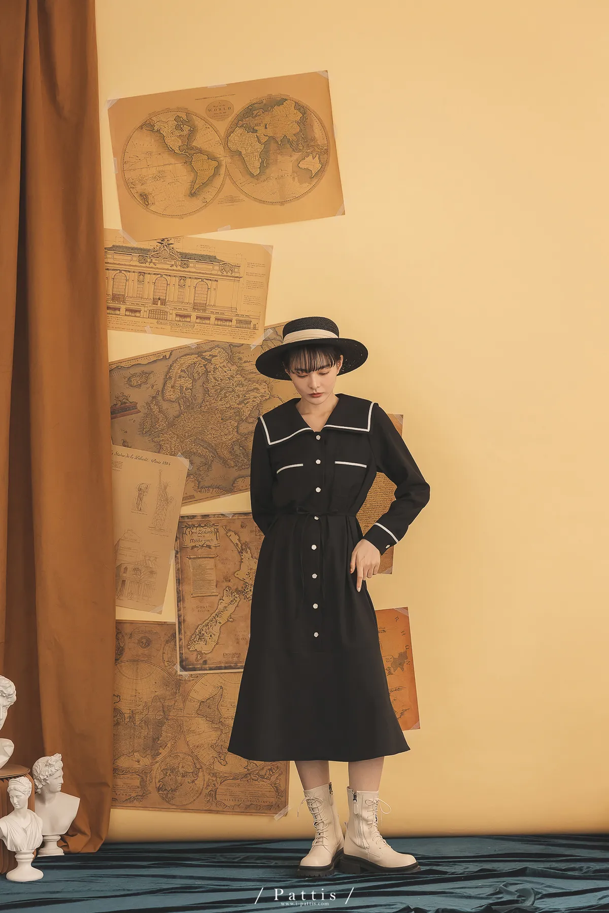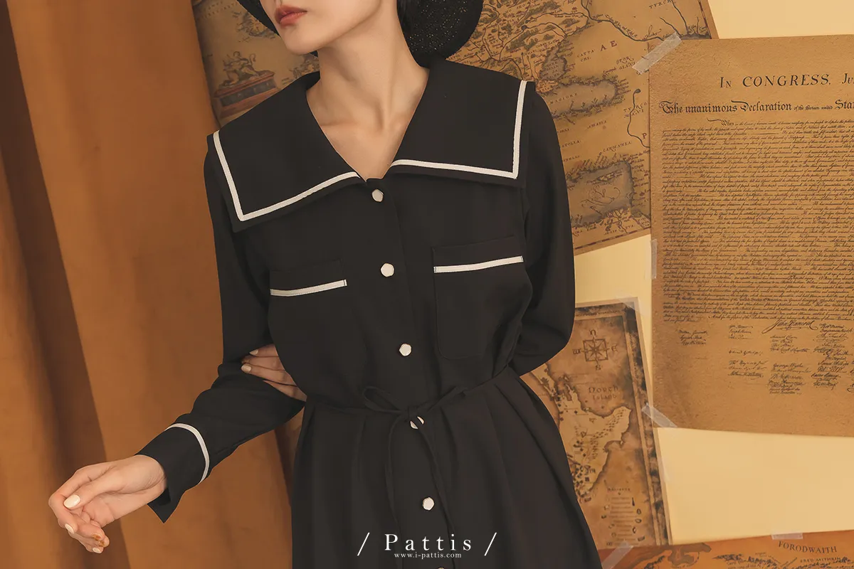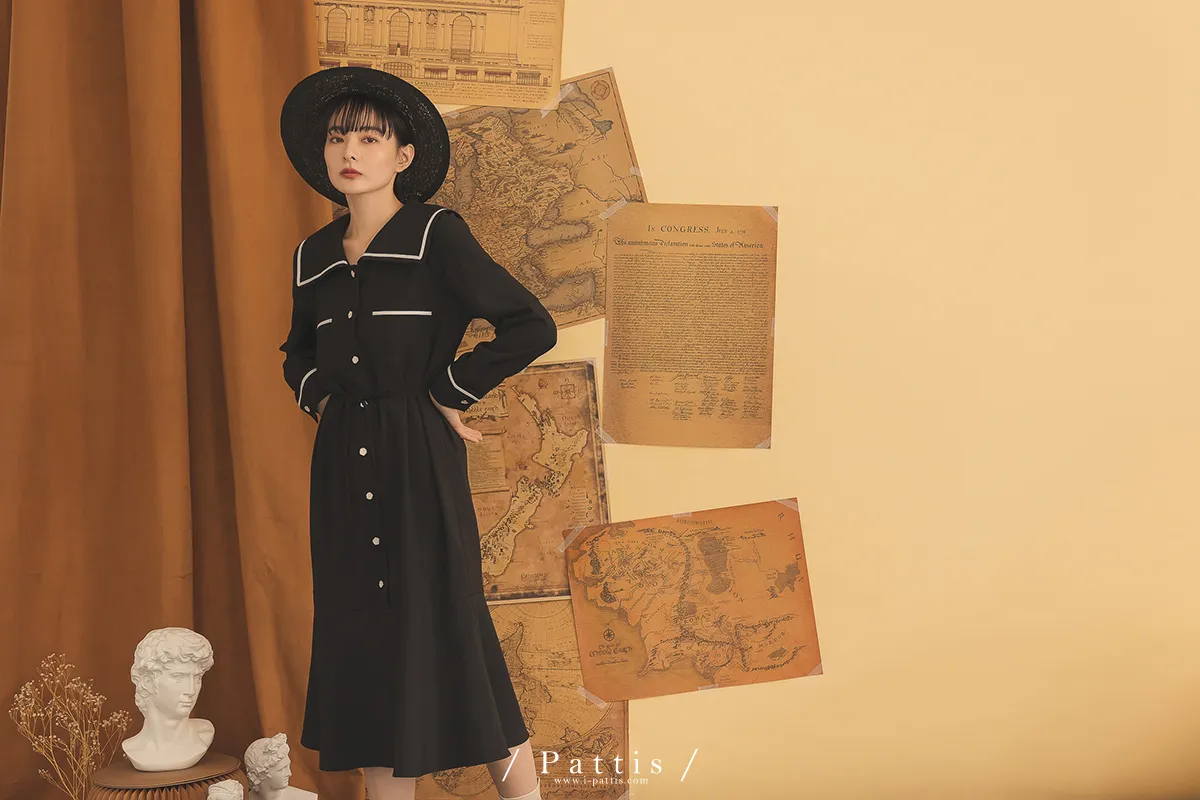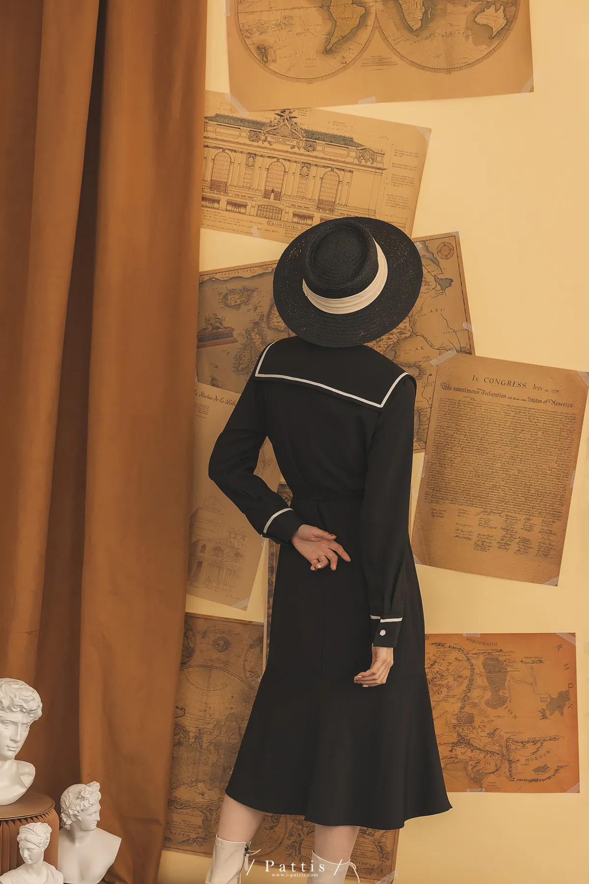 高年級生 | 水手領綴緞帶魚尾洋裝(黑)