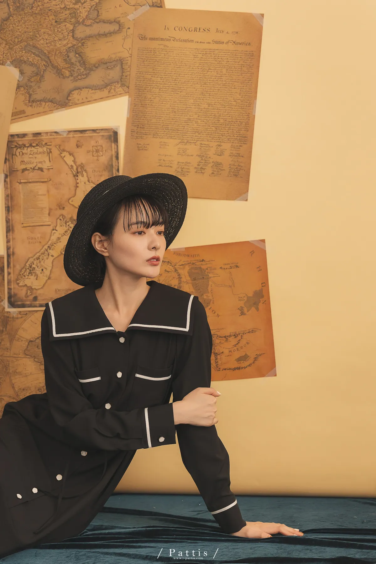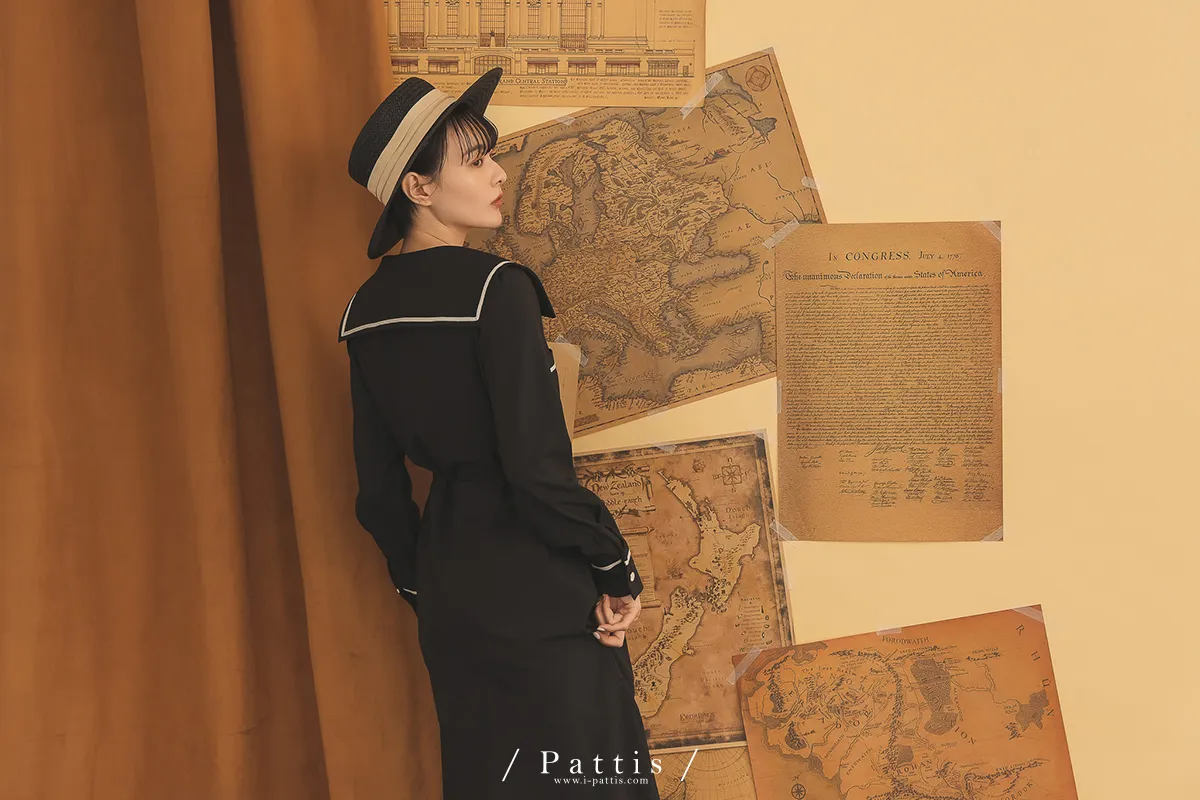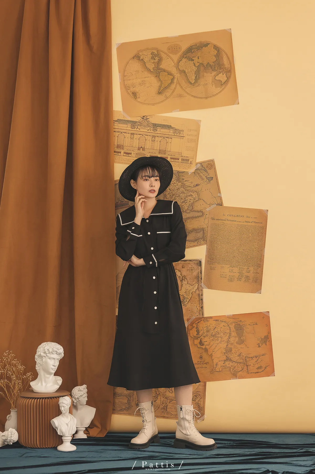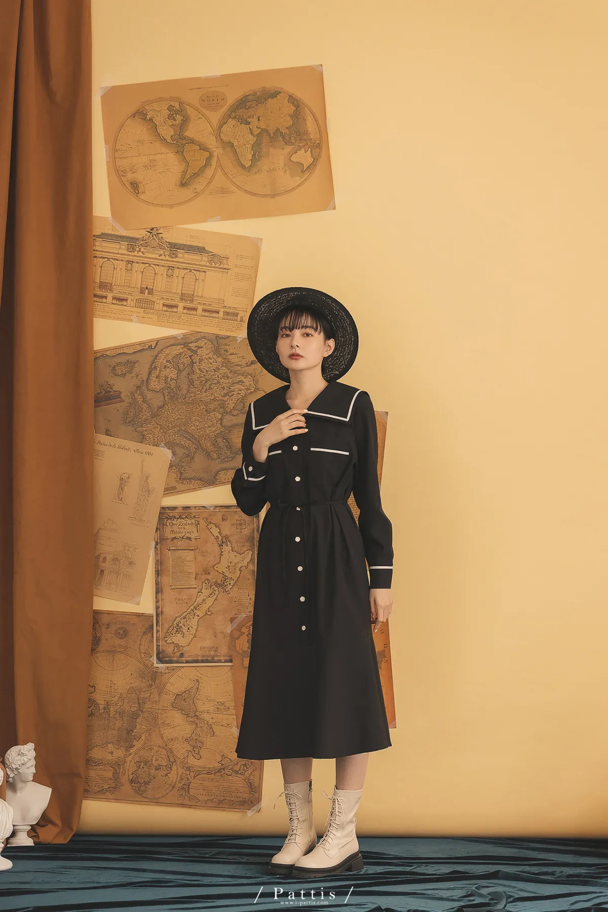 高年級生 | 水手領綴緞帶魚尾洋裝(黑)