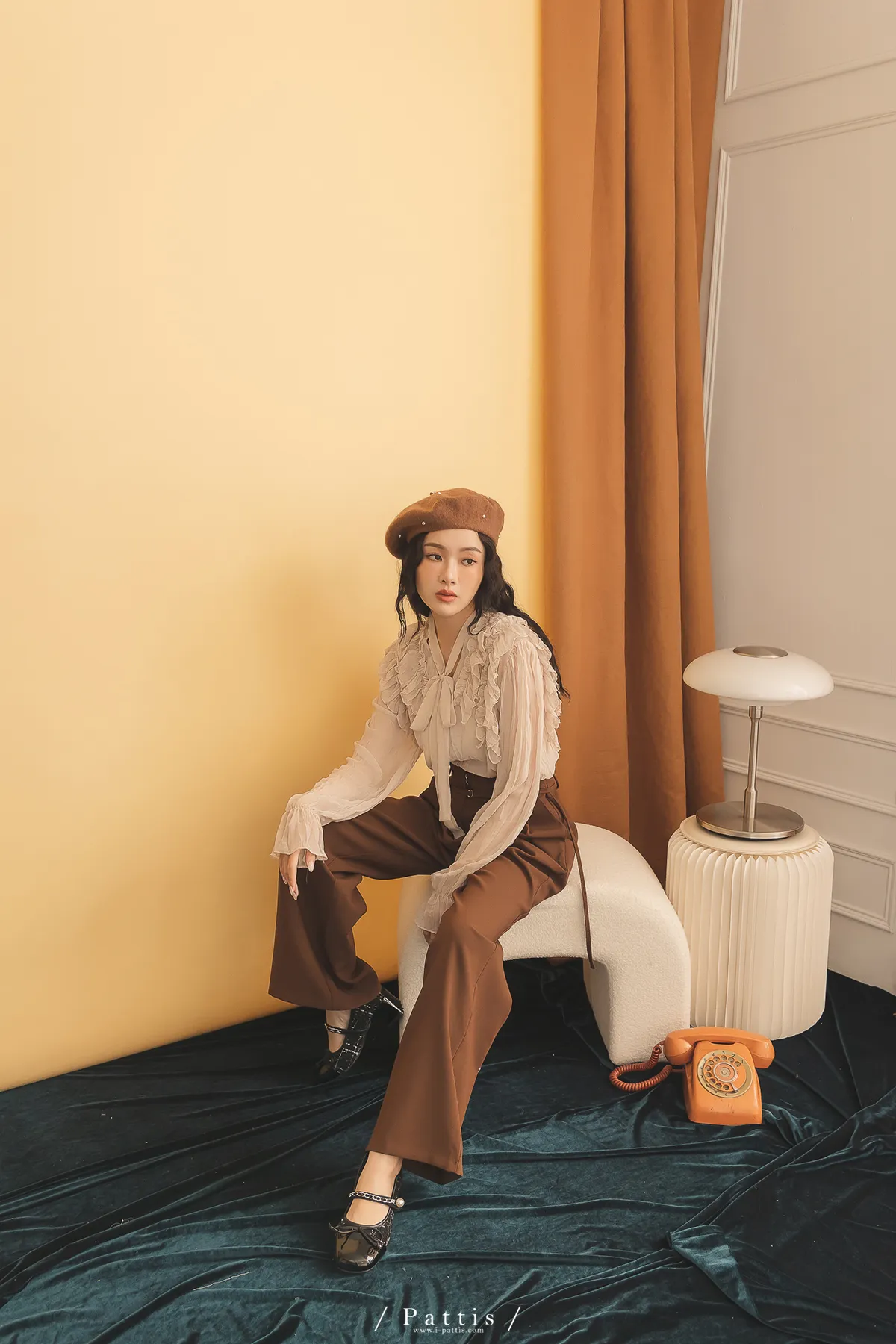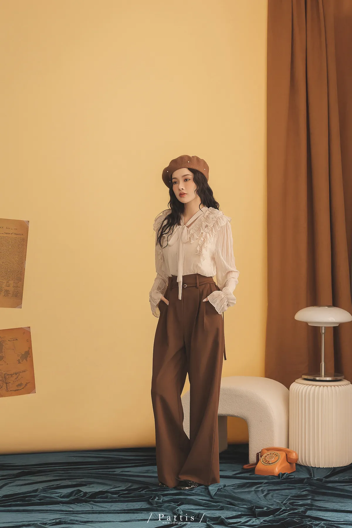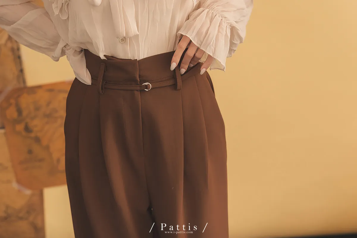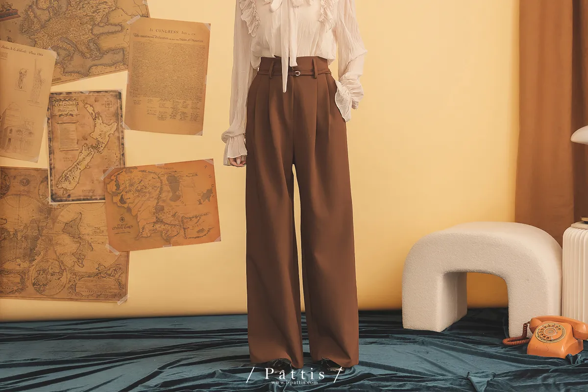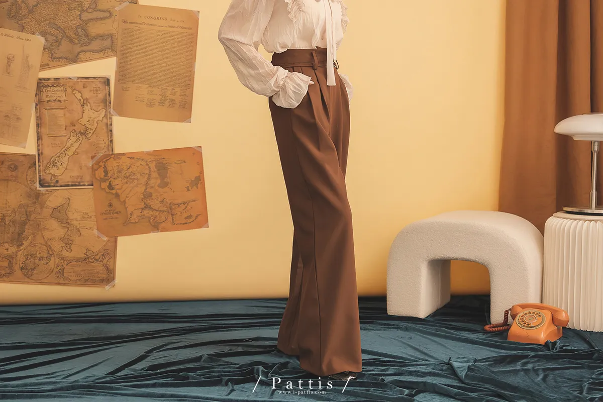 楓糖烤奶 | 附窄腰帶壓褶西裝寬褲(咖啡棕)