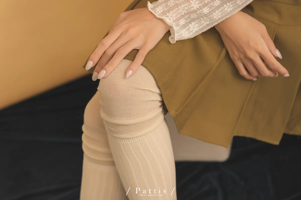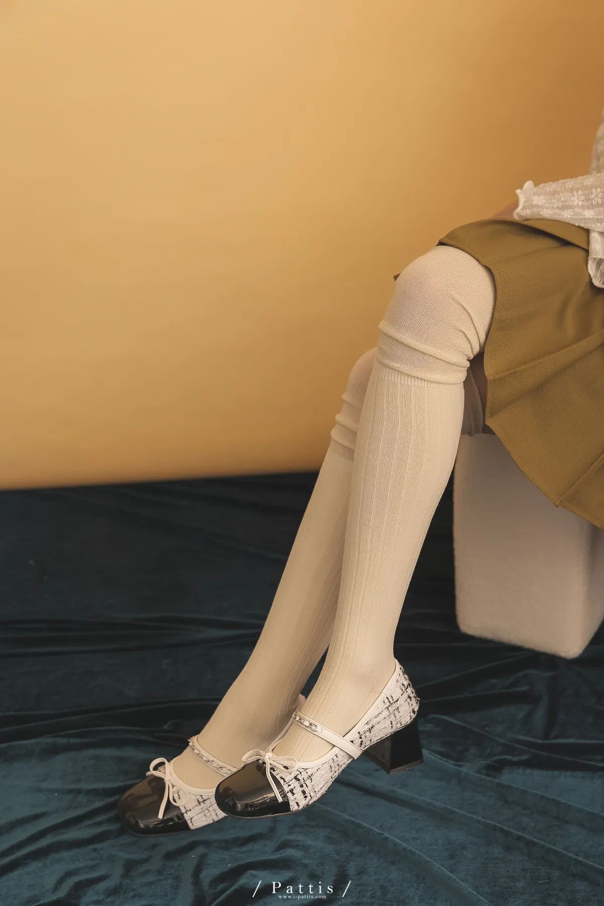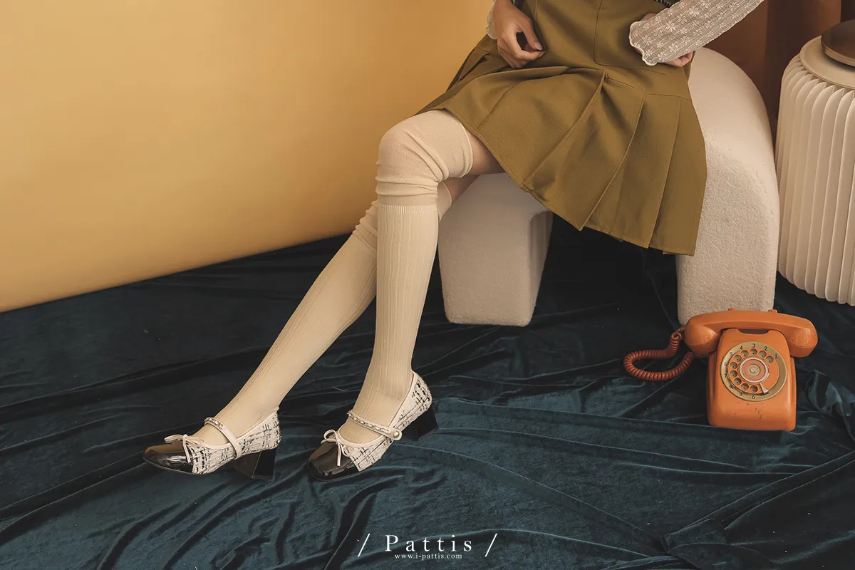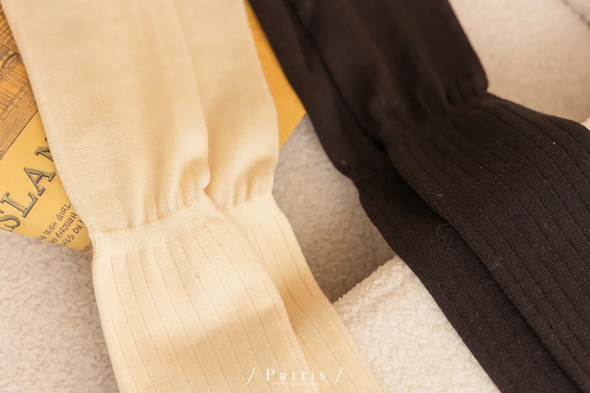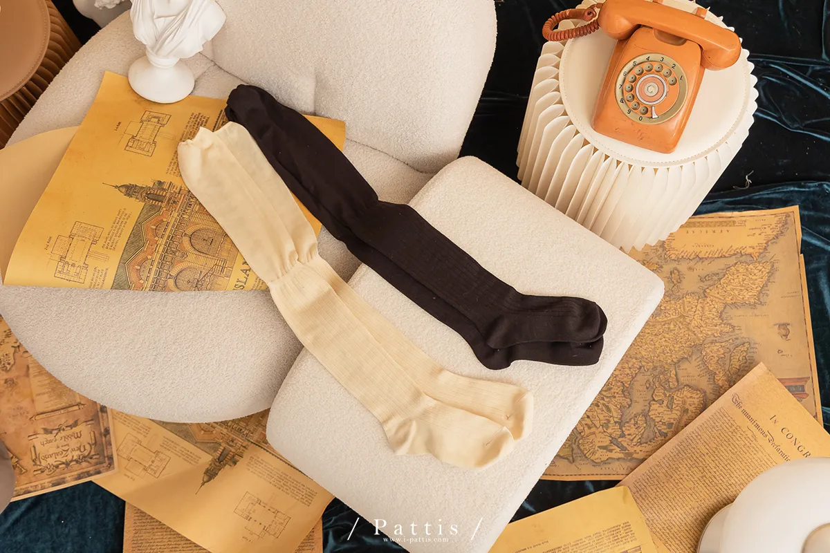 *特*坑條拼接針織膝上襪(米杏/黑)