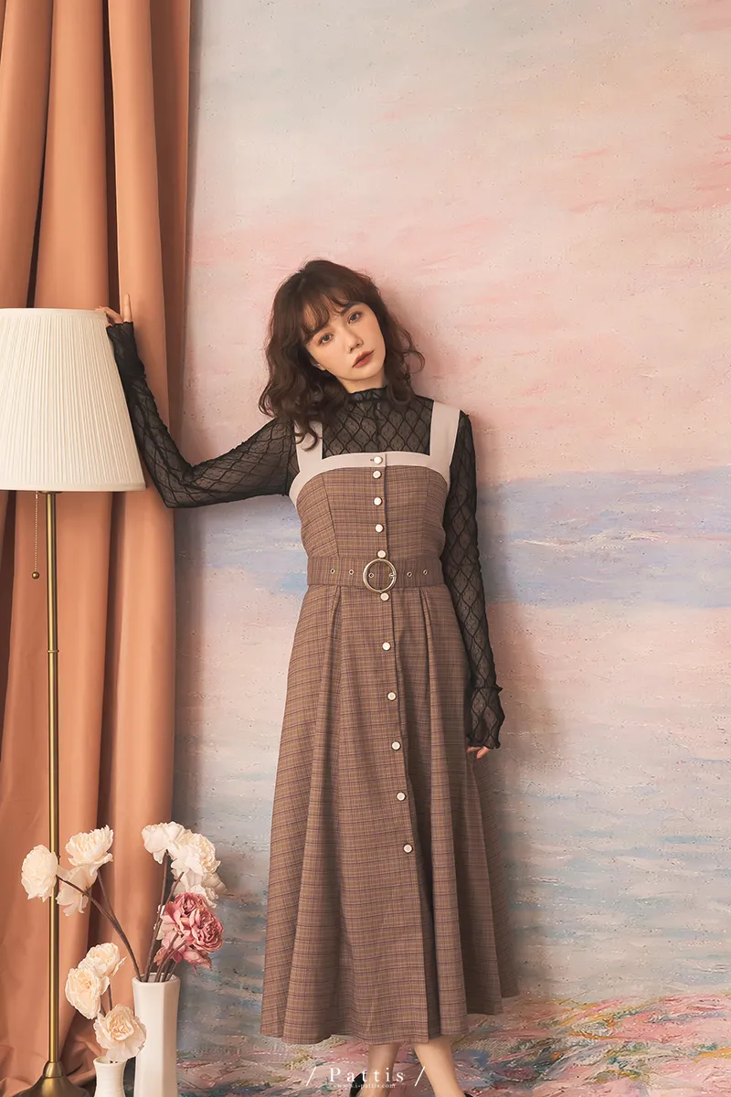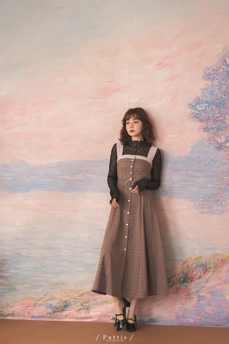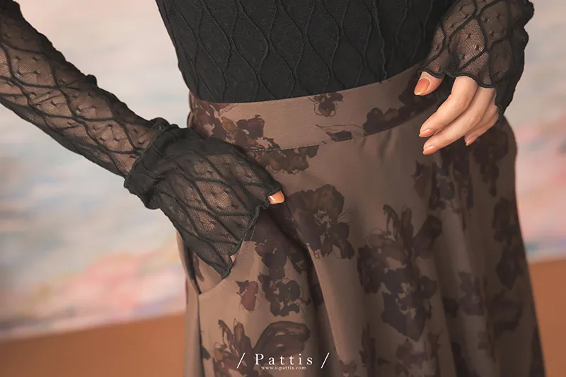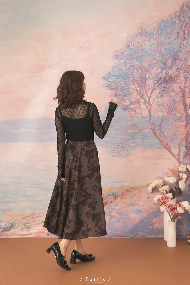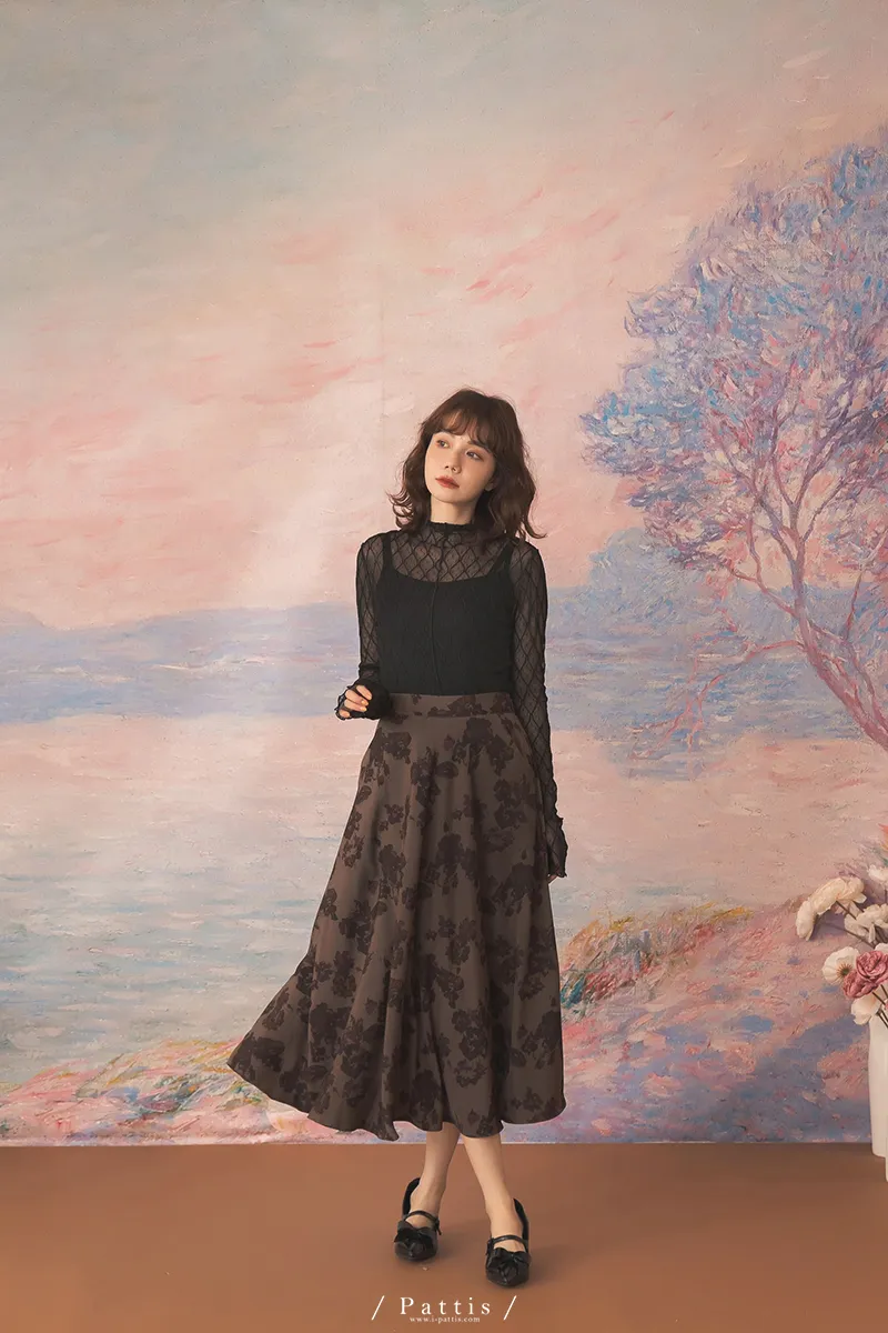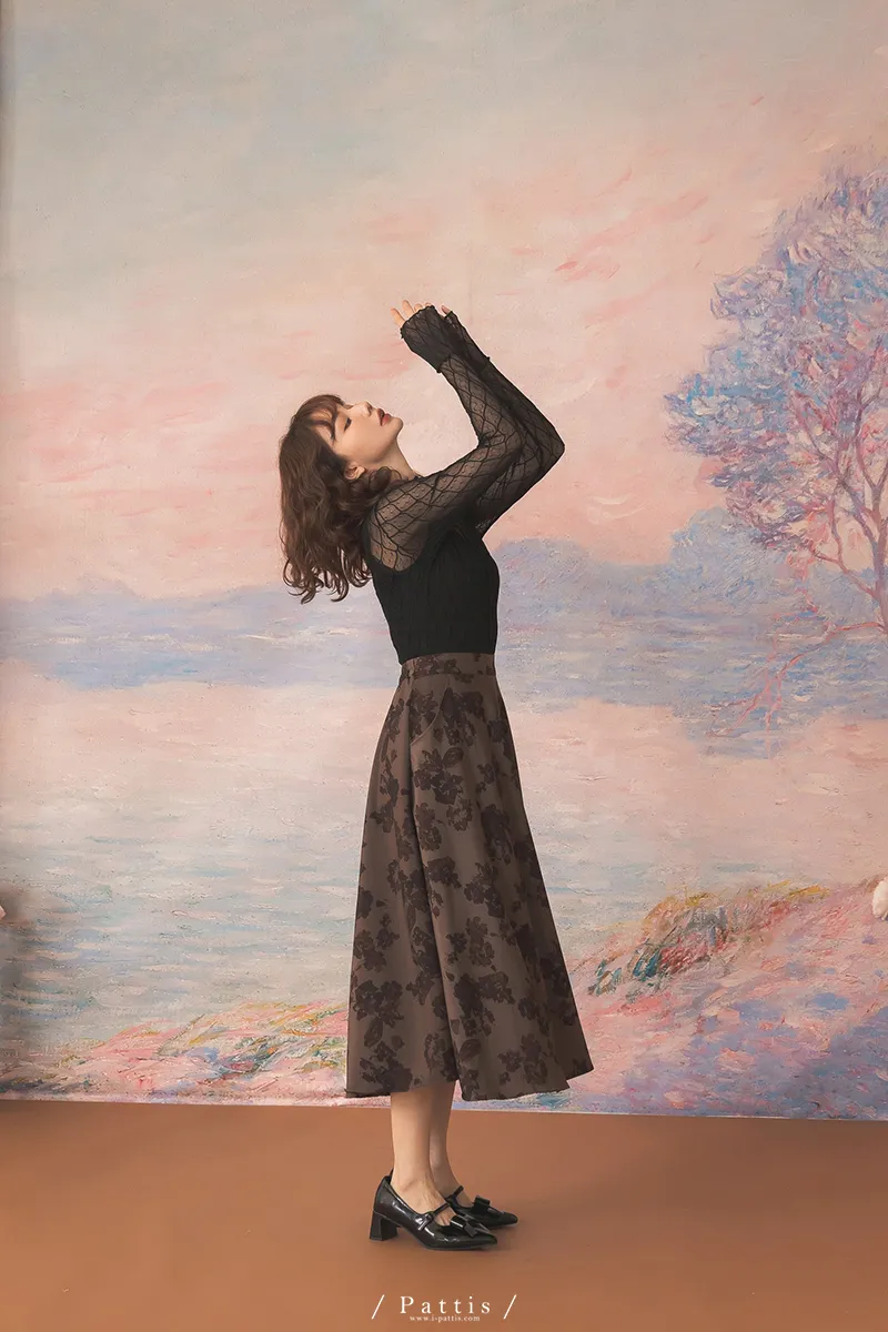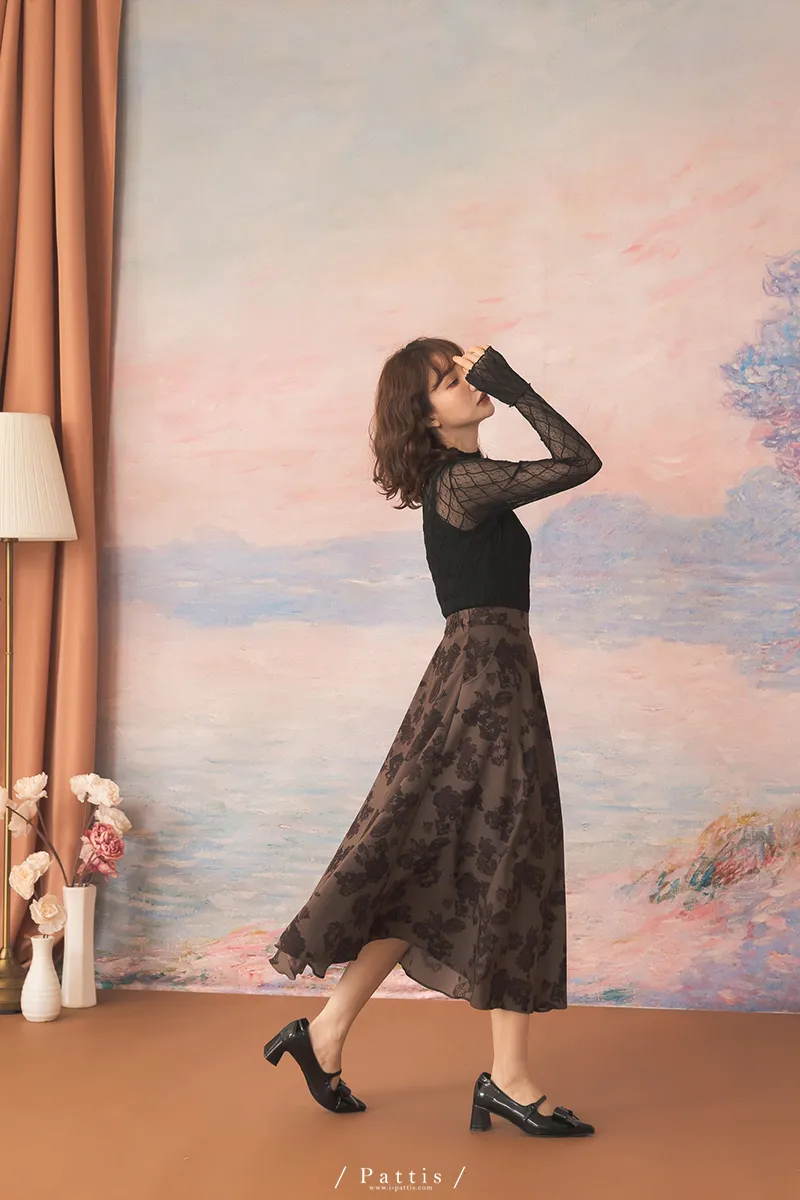 土星環宣言 | 水波紋透肌車線微高領上衣(墨水黑)