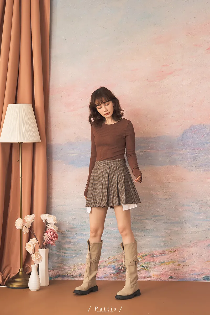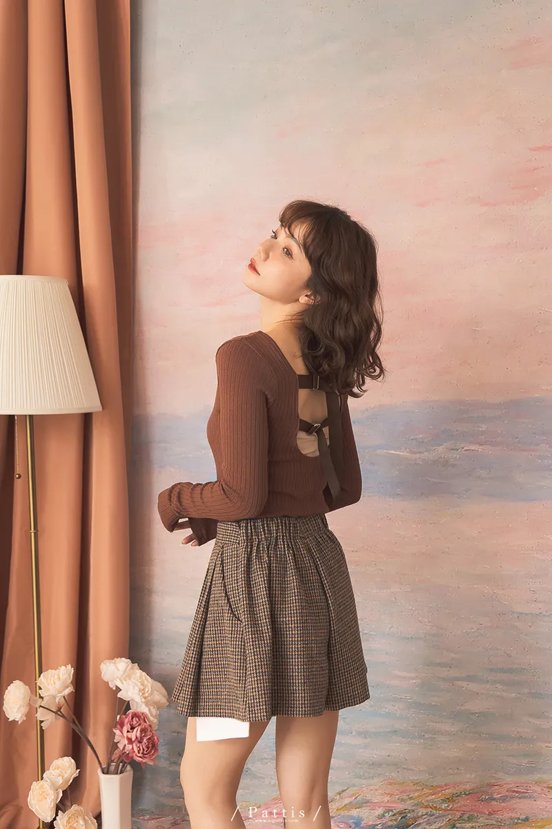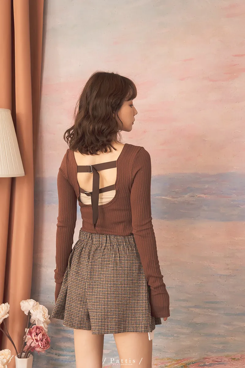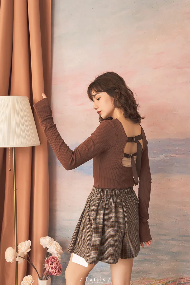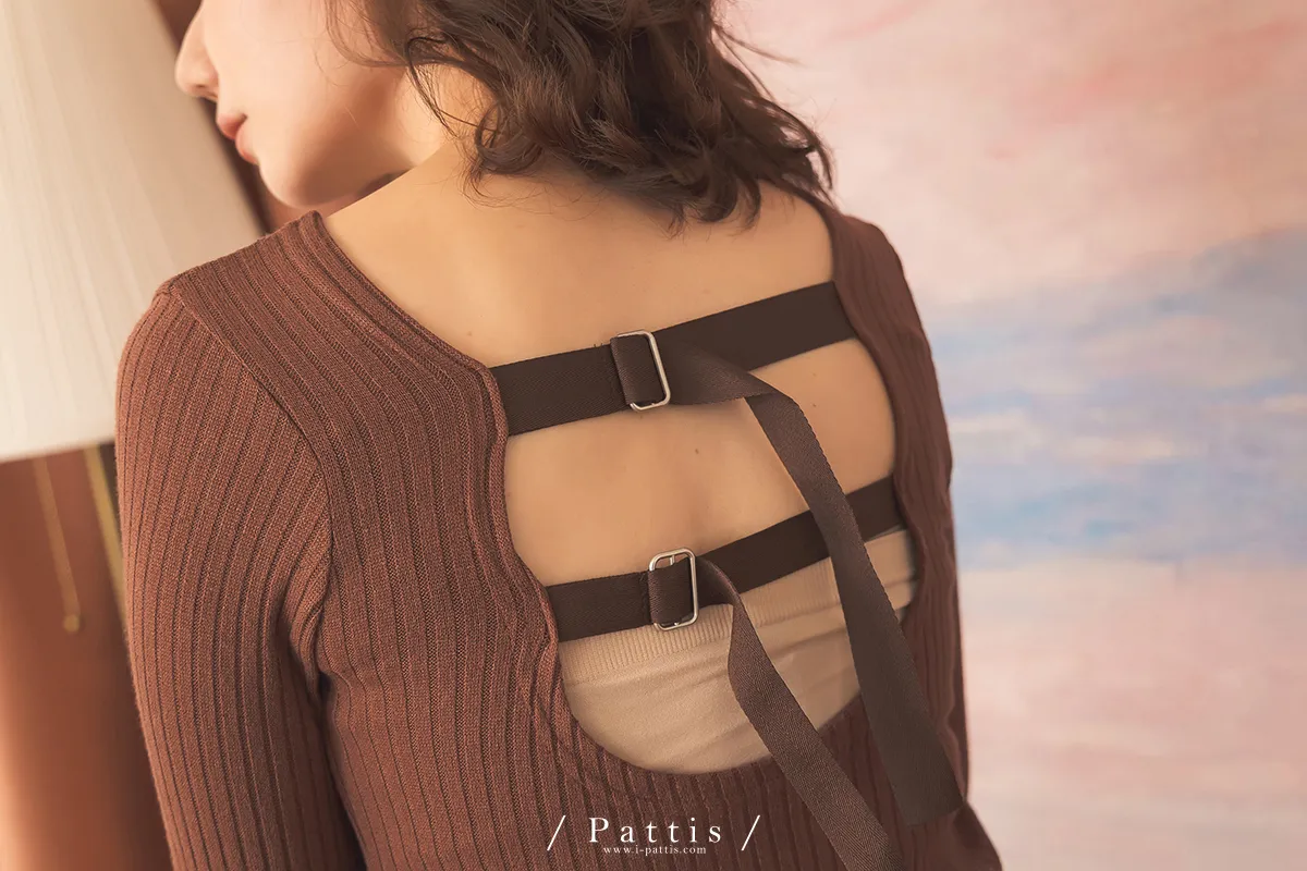 如果是一場美夢 | 大U美背雙繫帶薄料針織上衣(棕)