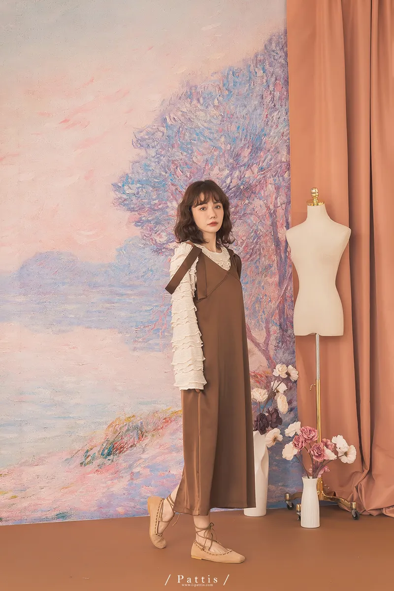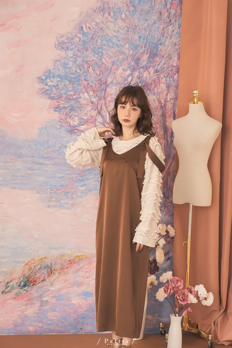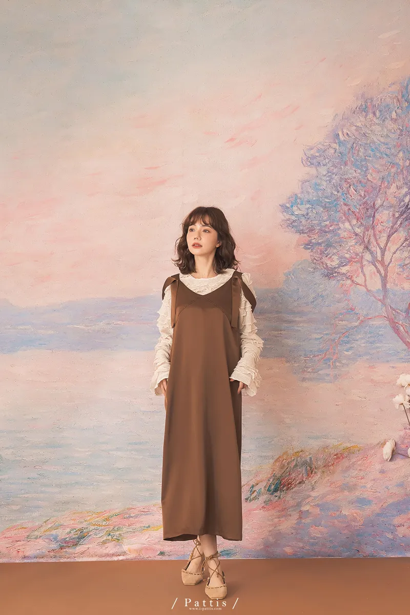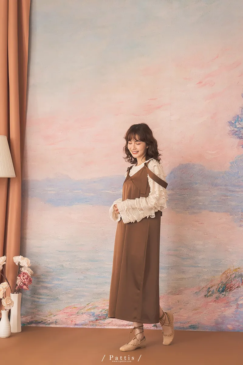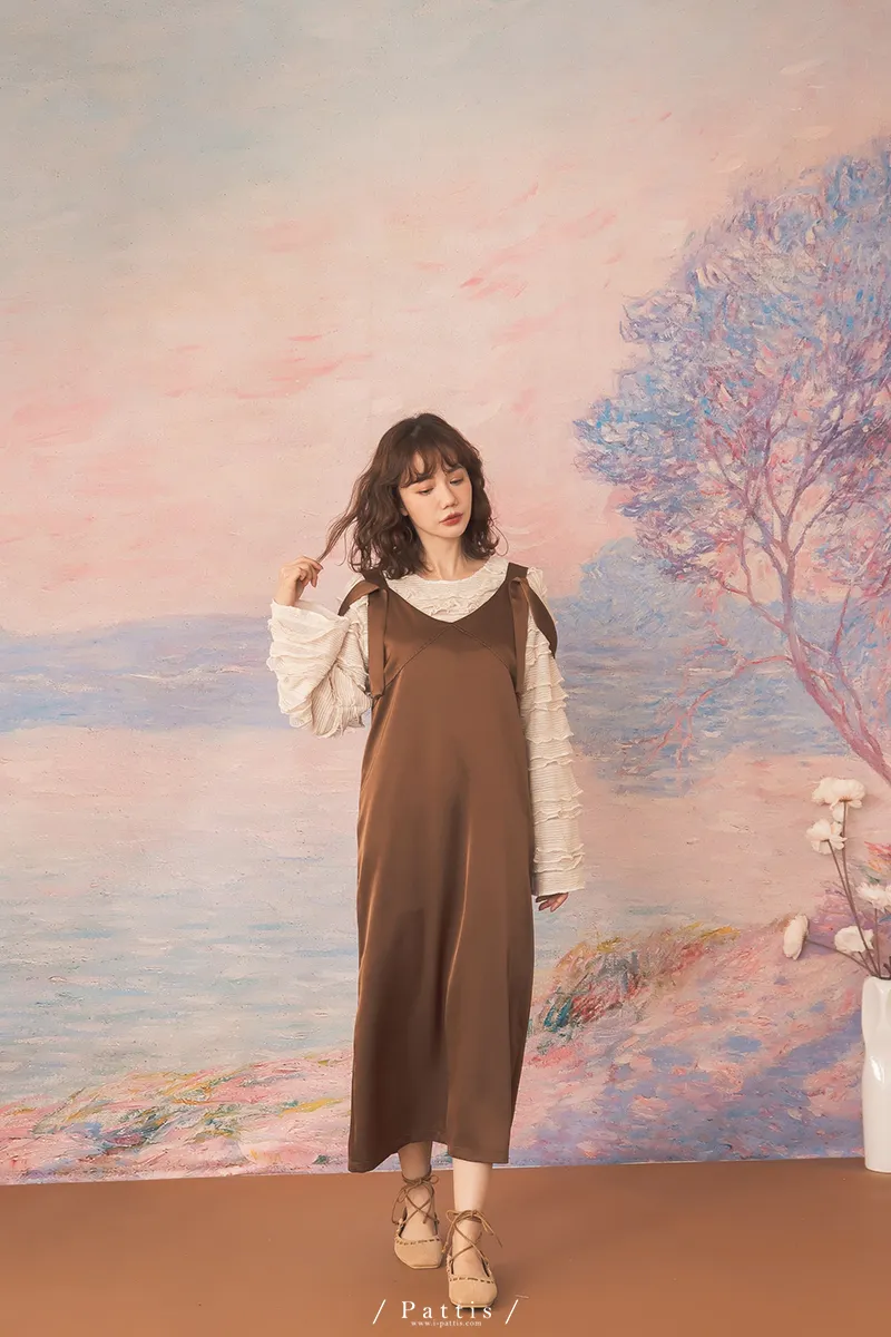晚沉咖啡早晨酒 | V領緞面多way繫帶背心洋裝(咖啡)