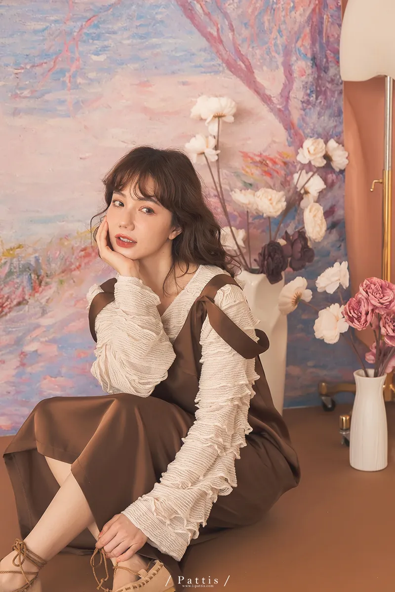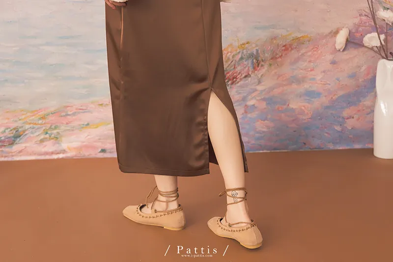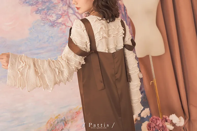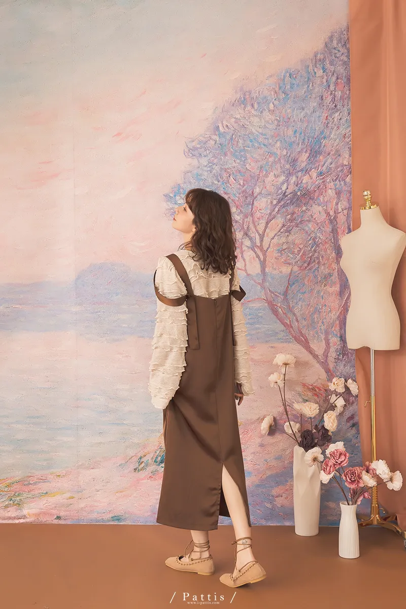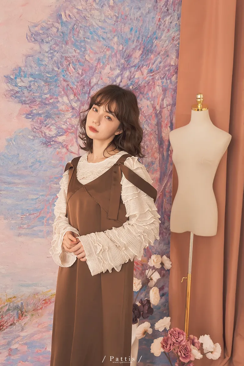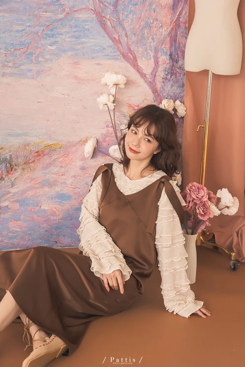 晚沉咖啡早晨酒 | V領緞面多way繫帶背心洋裝(咖啡)