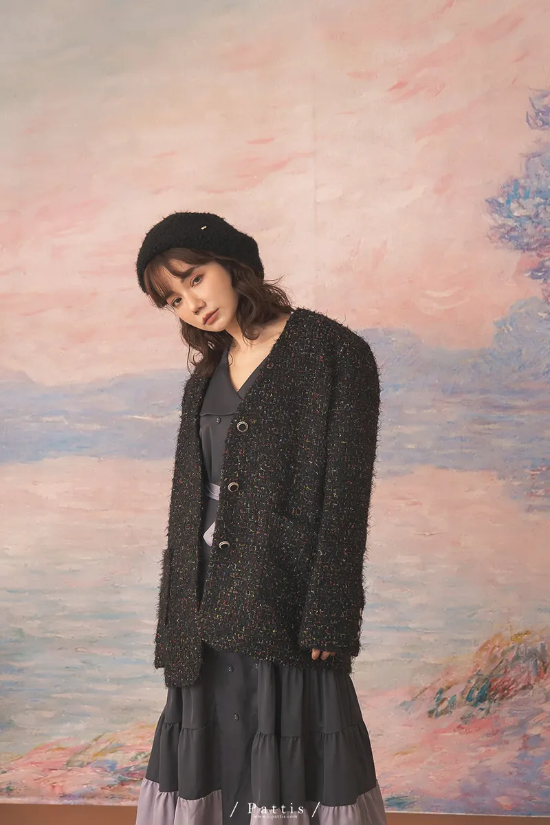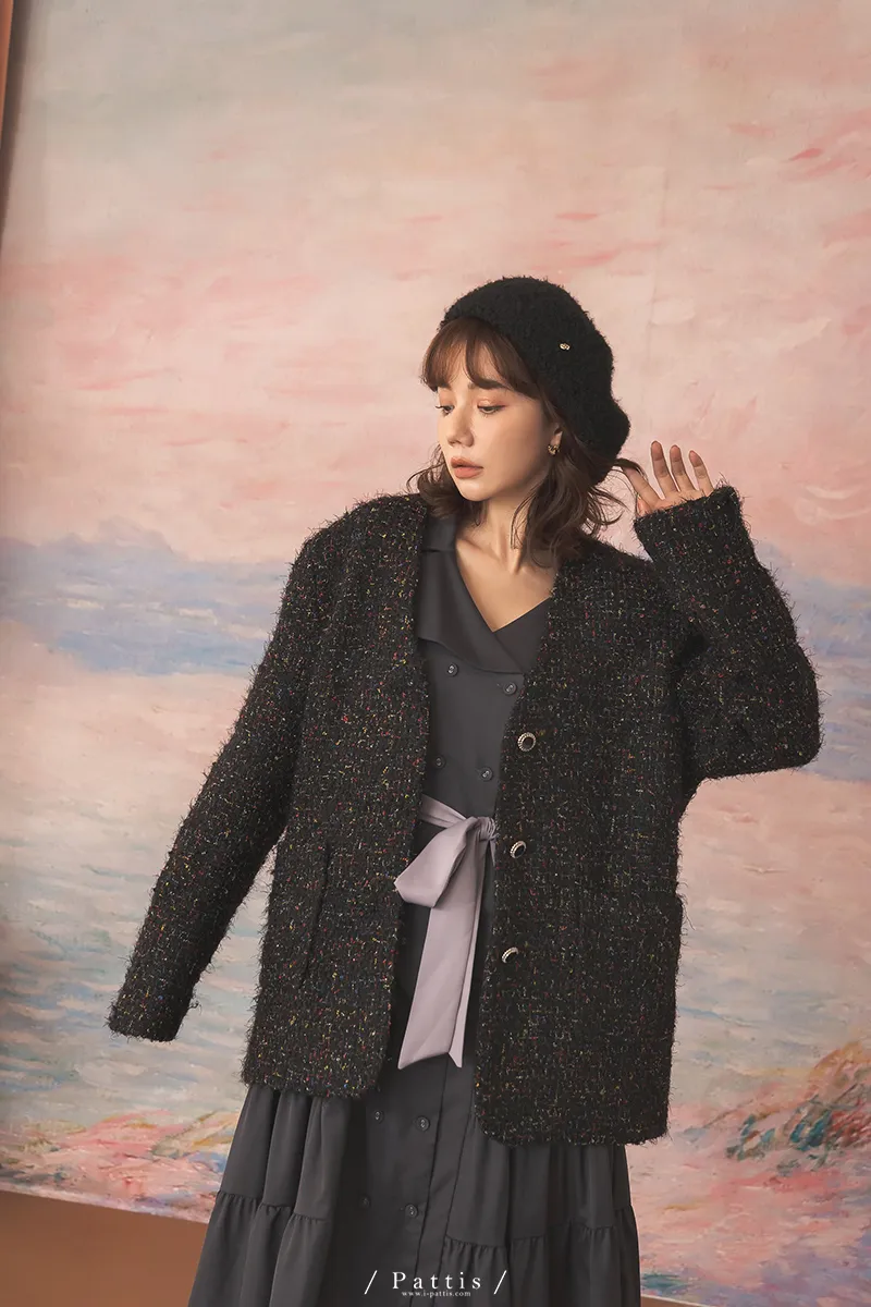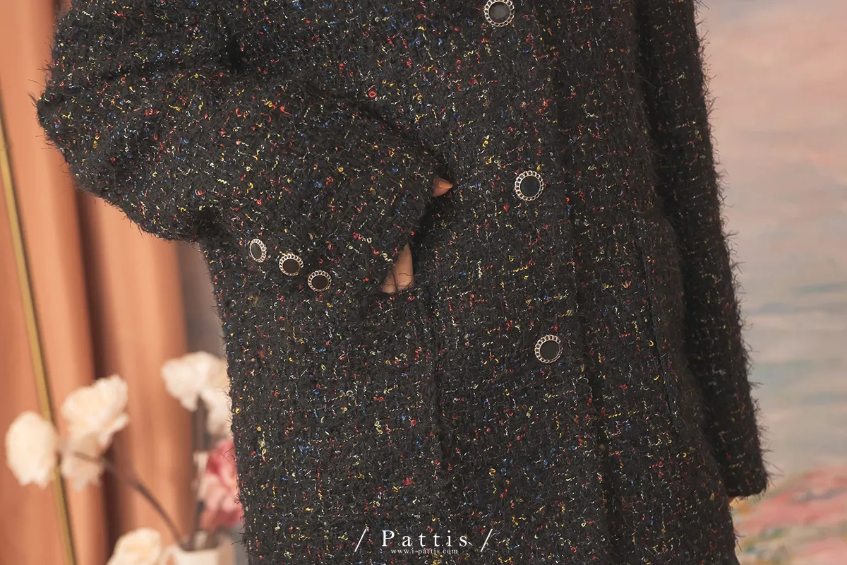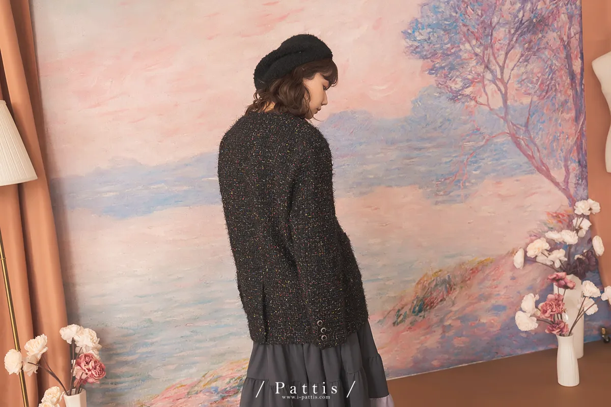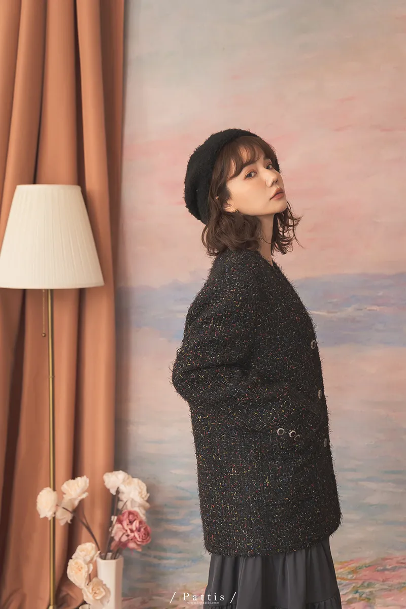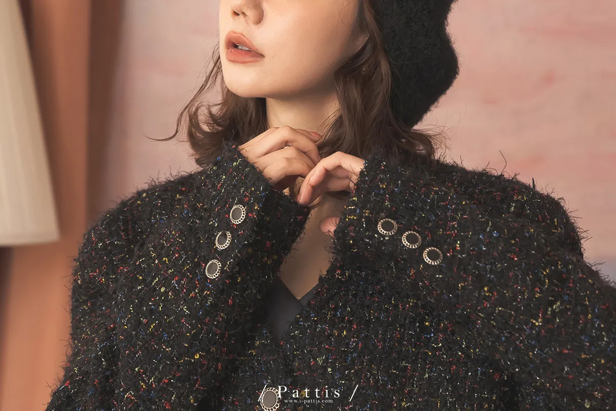 慶祝日的小冒險 | 鋪棉鈕扣彩色毛呢小香外套(黑)