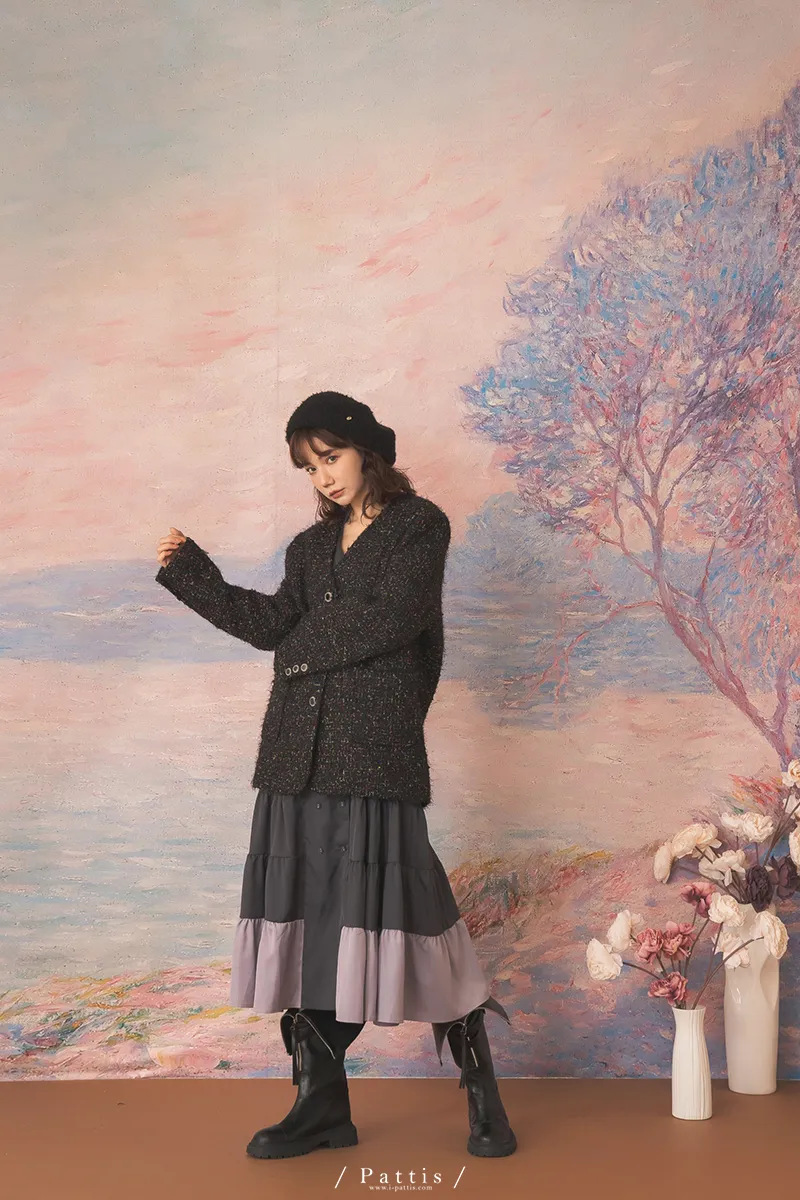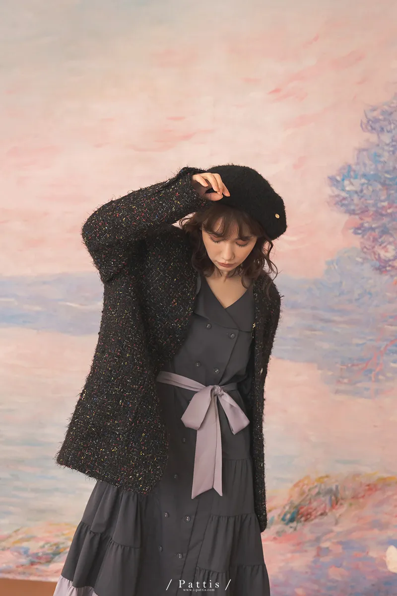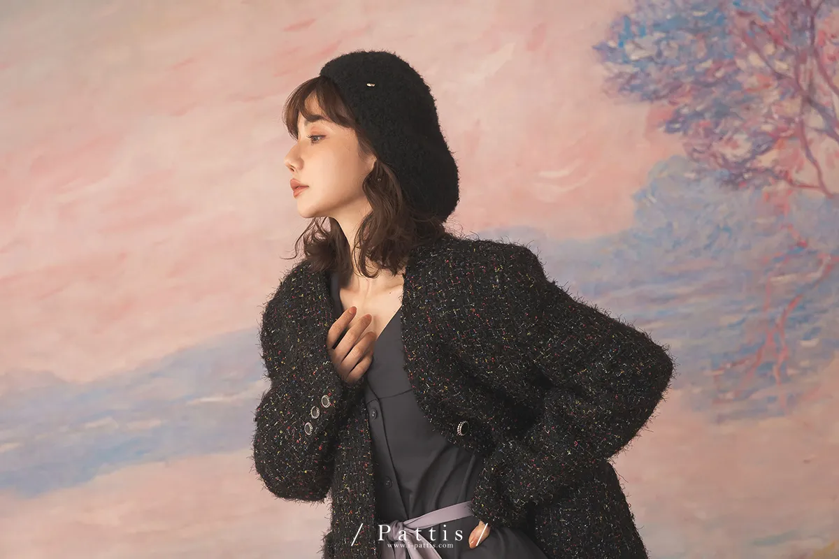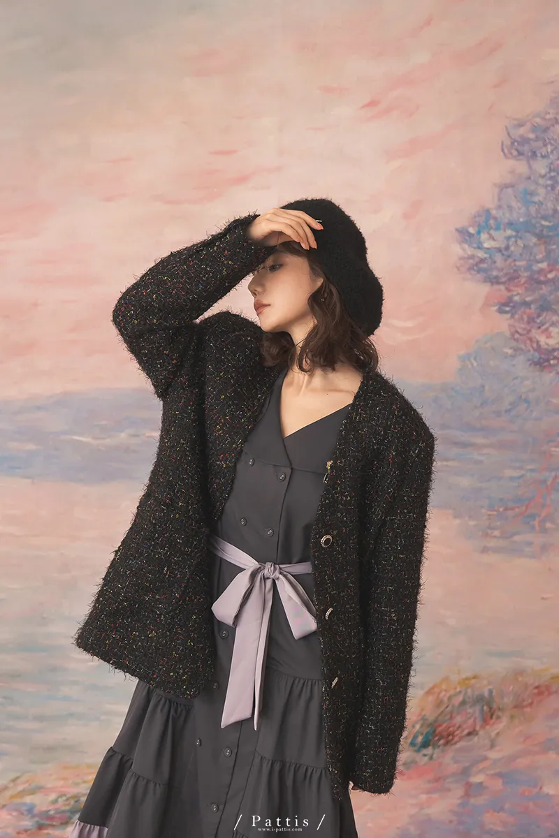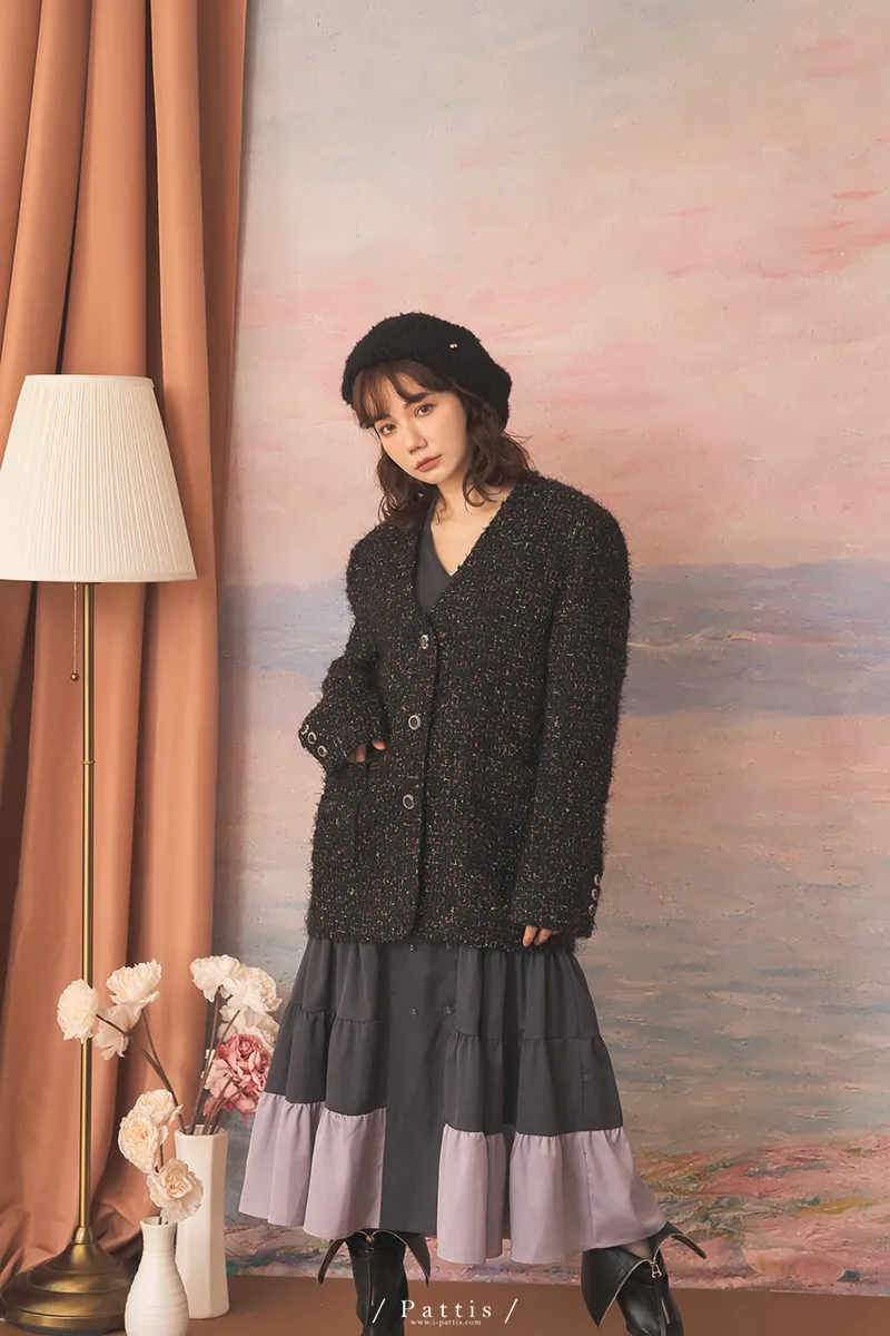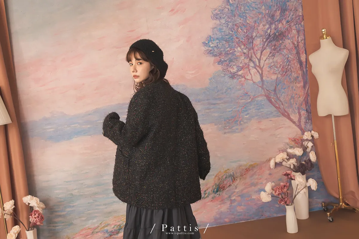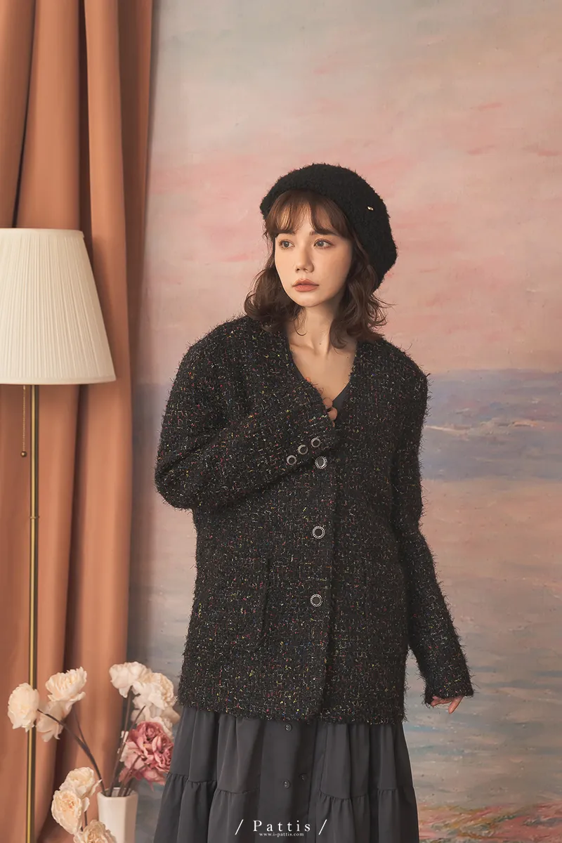 慶祝日的小冒險 | 鋪棉鈕扣彩色毛呢小香外套(黑)
