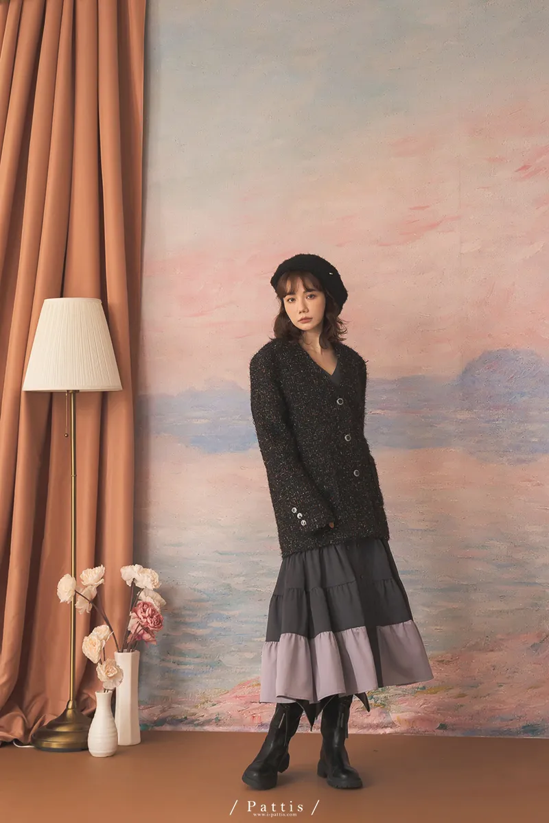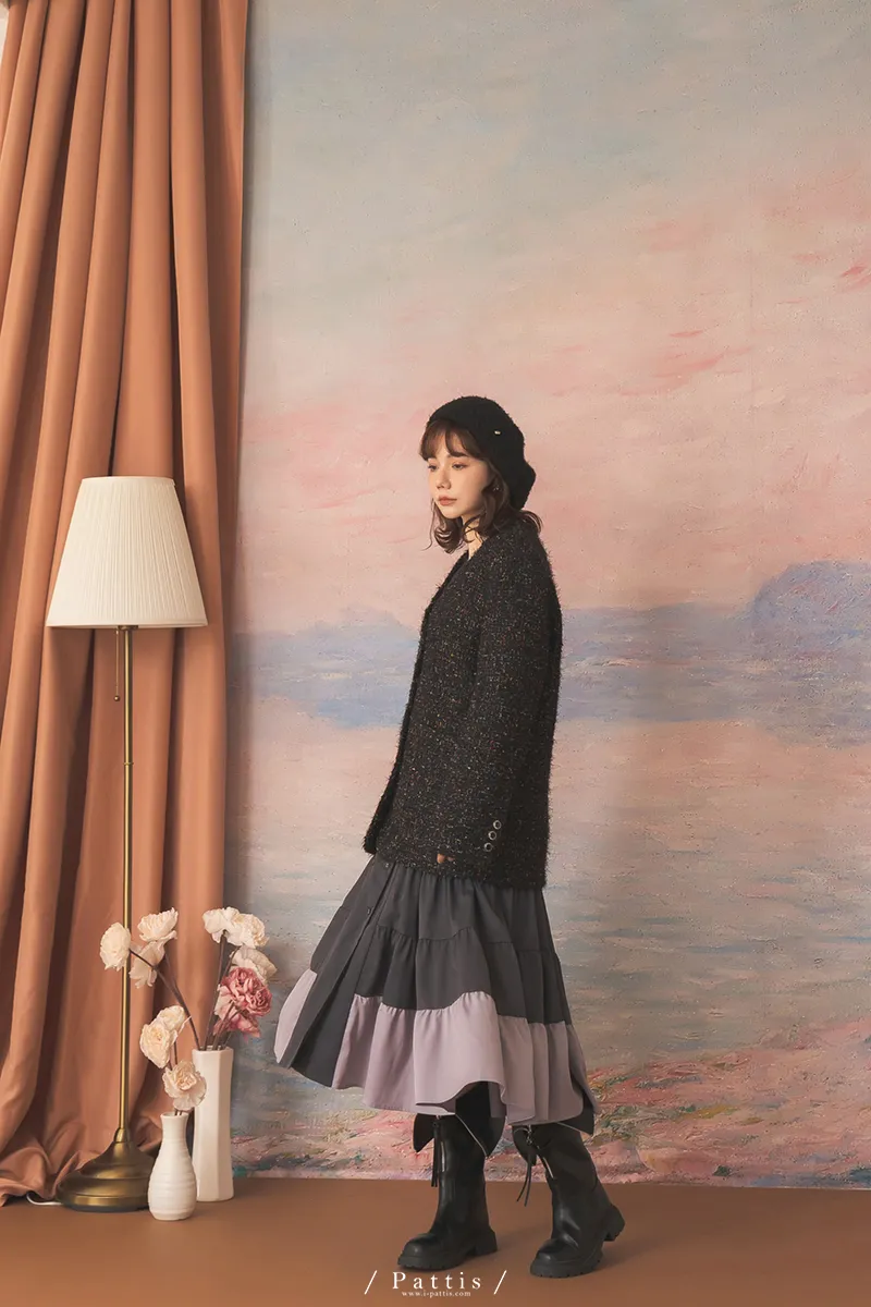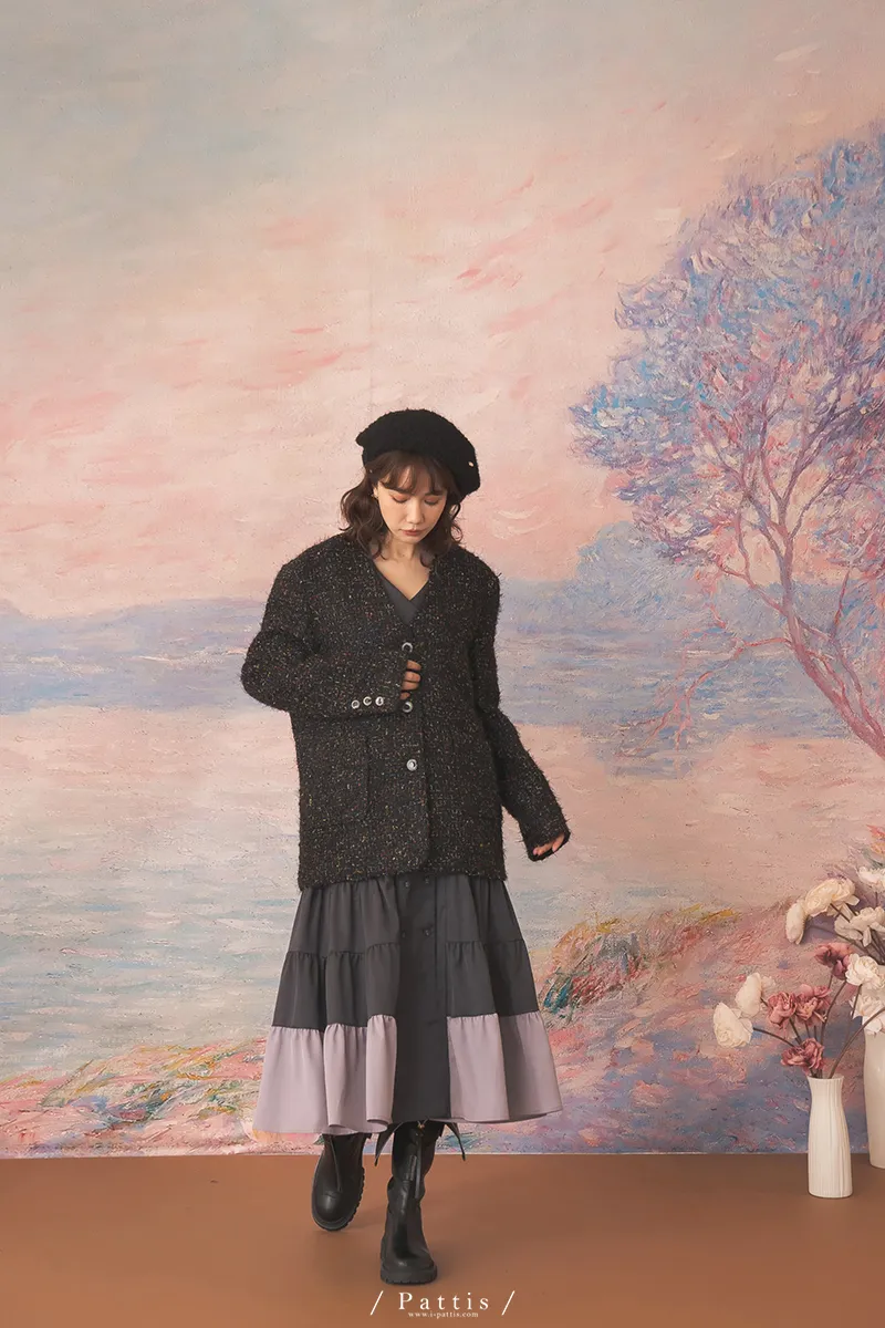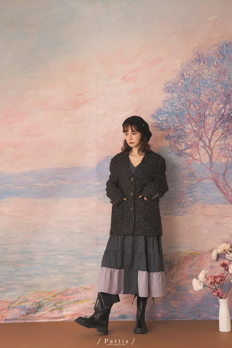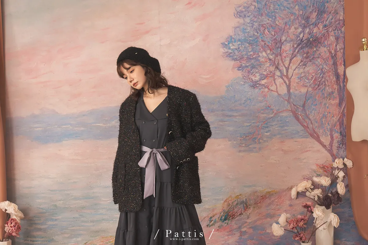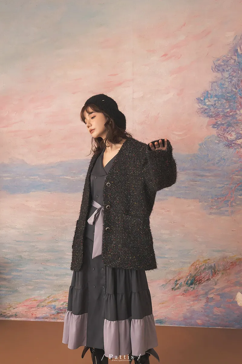 慶祝日的小冒險 | 鋪棉鈕扣彩色毛呢小香外套(黑)