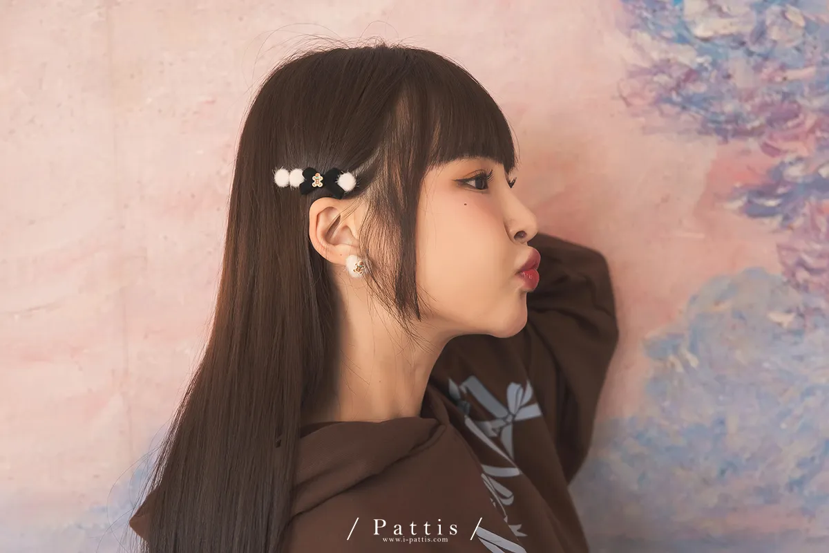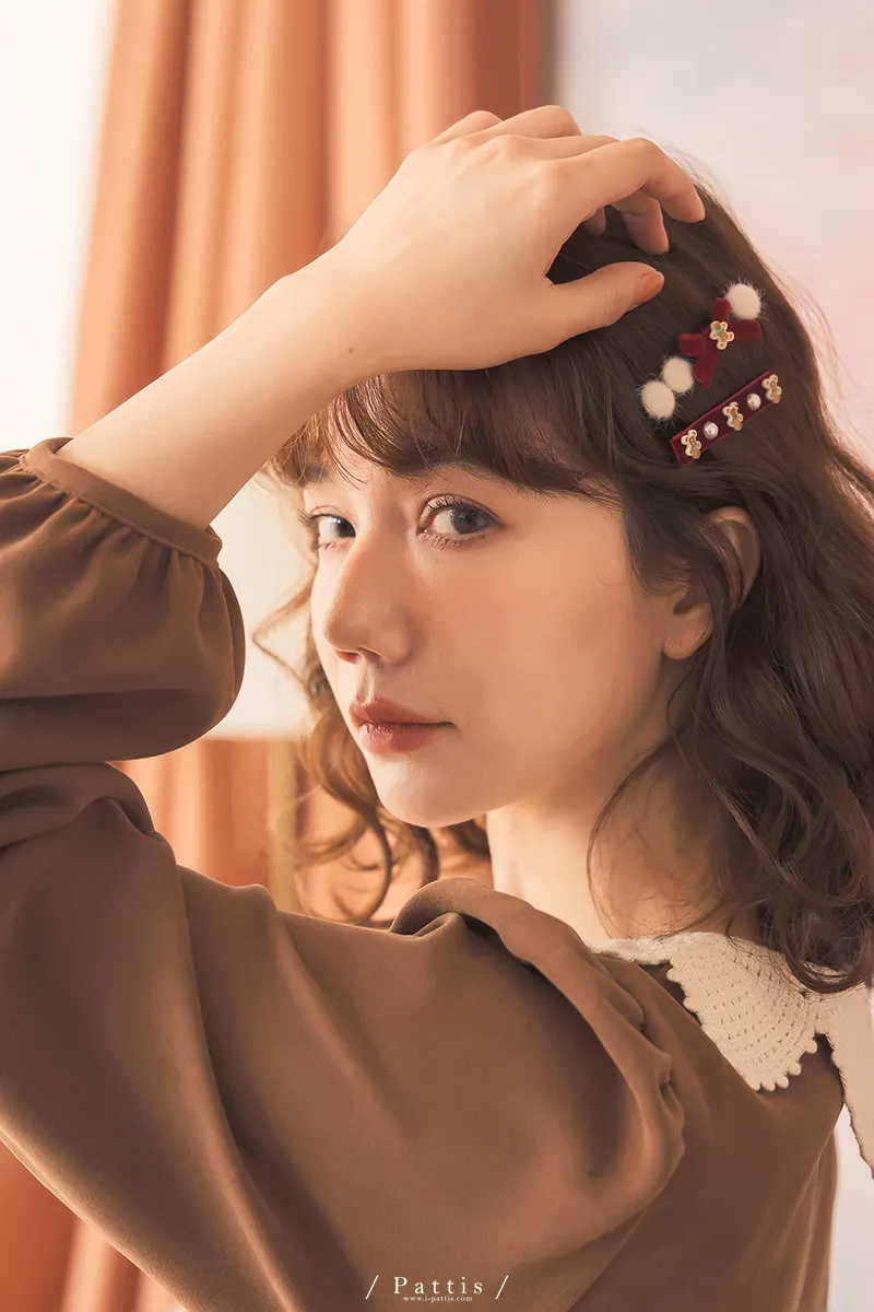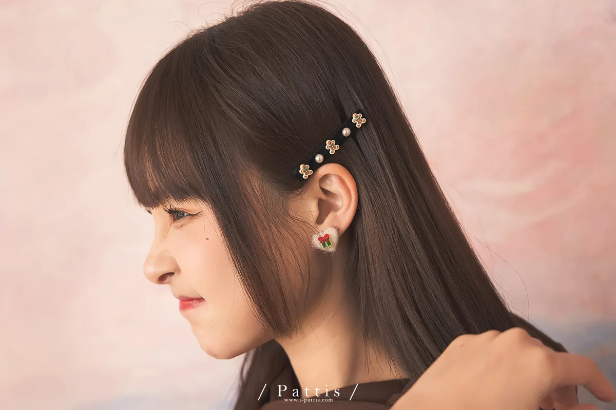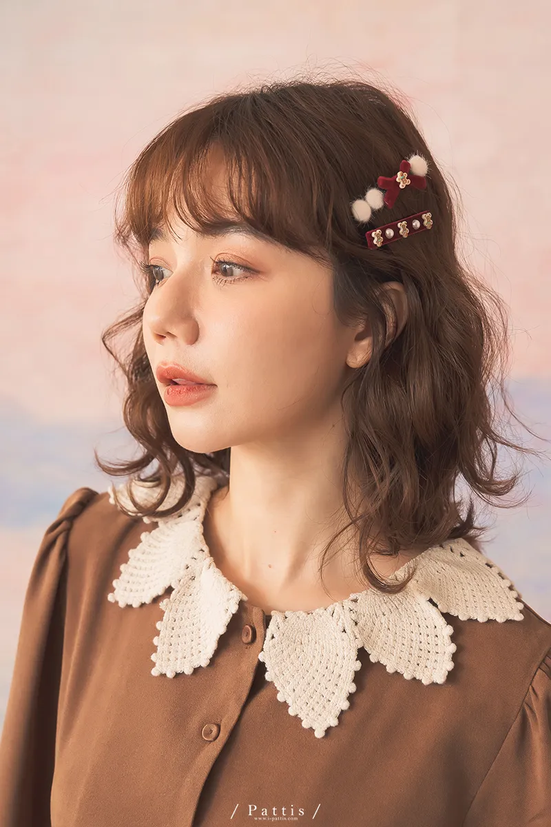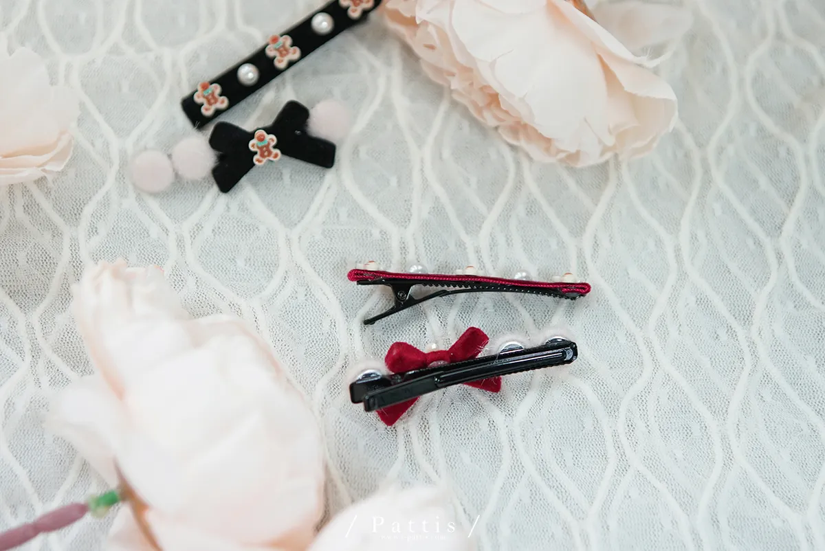 薑餅人綴珍珠毛球天鵝絨髮夾set組(酒紅/黑)