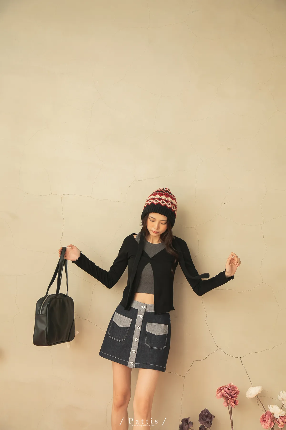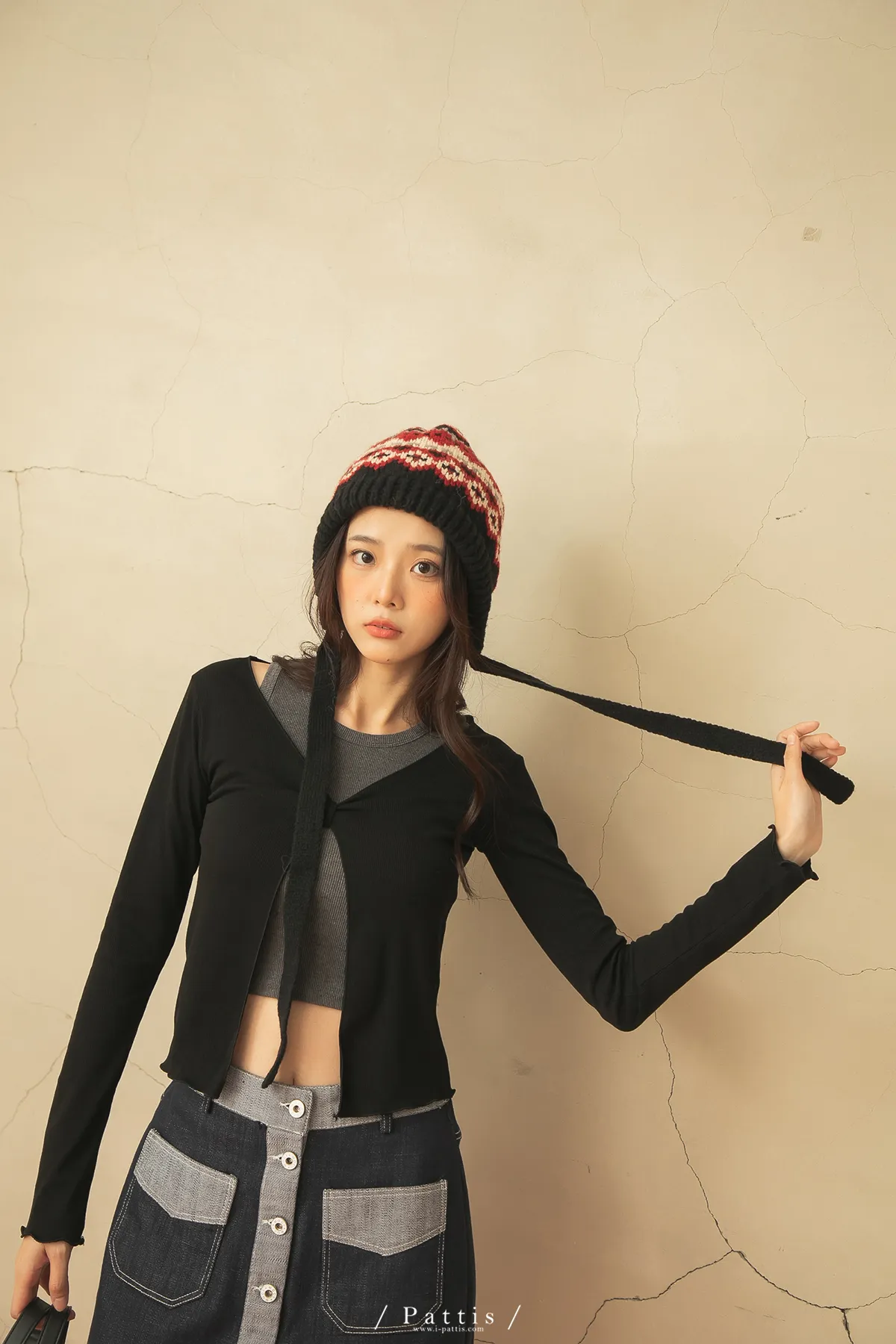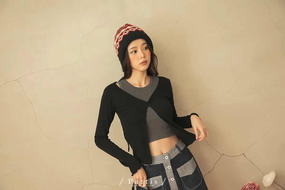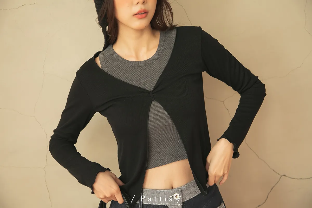 溫柔簽證章 | 正反兩穿開叉上衣+圓領背心set(灰黑)