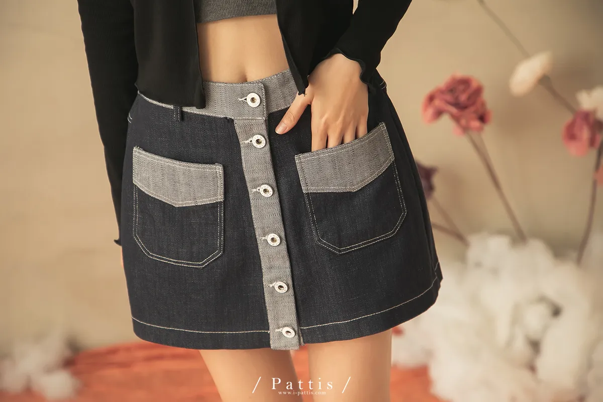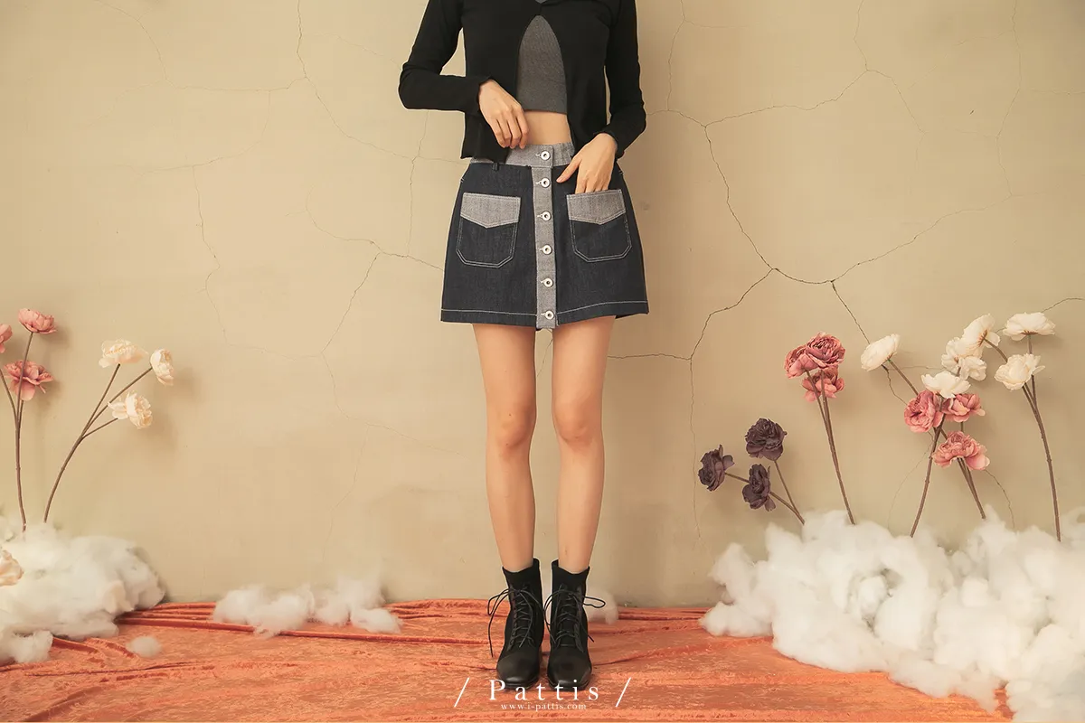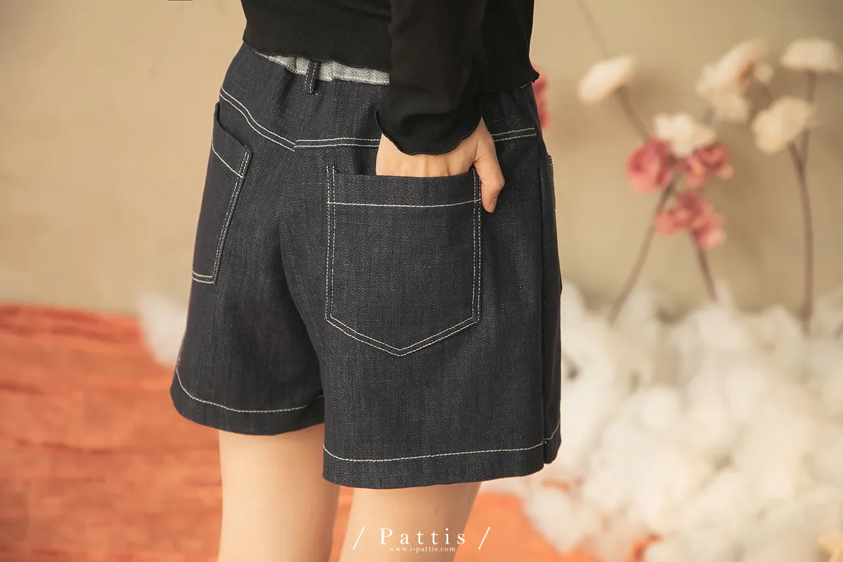 青澀日記 | 雙色配布鈕扣口袋短褲裙(單一色)