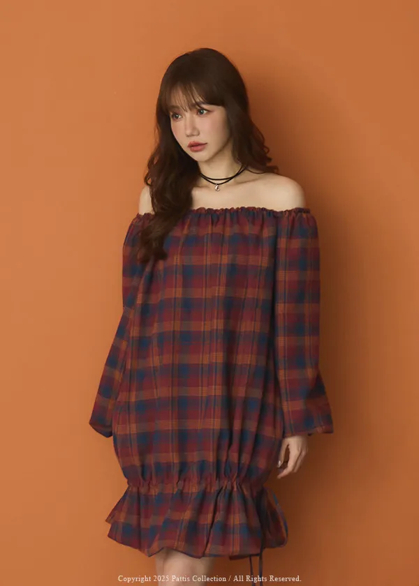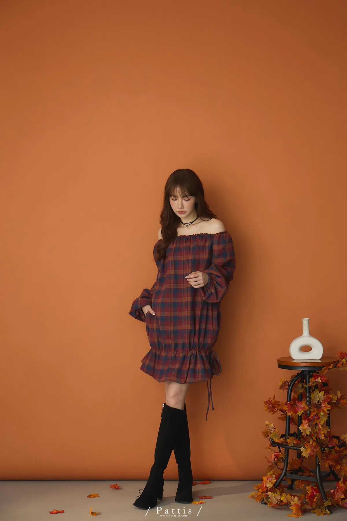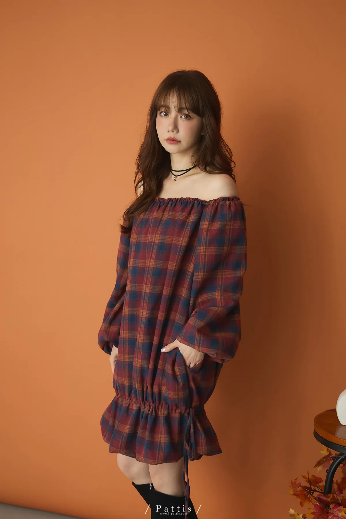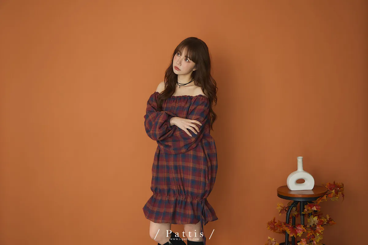 我在等的那個節日 | 鬆緊一字領泡泡蓬袖2way洋裝(紅)