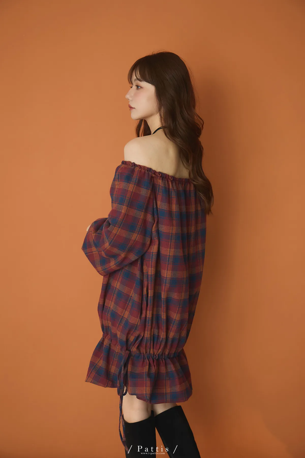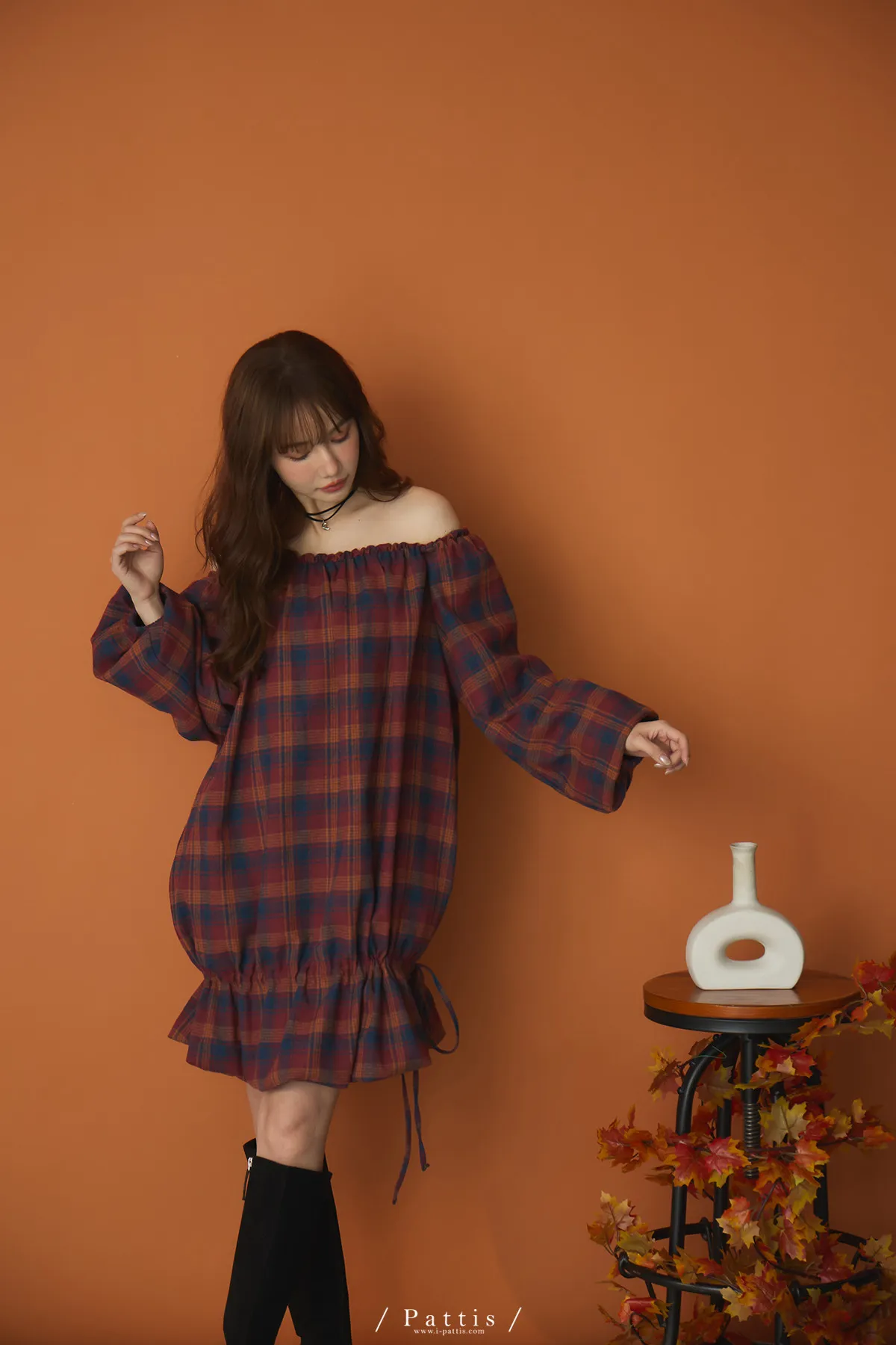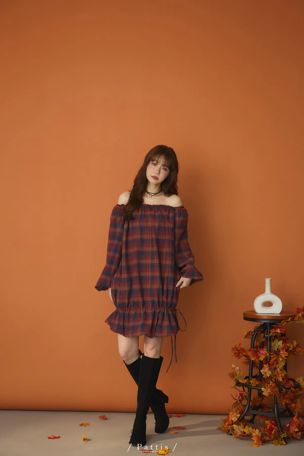 我在等的那個節日 | 鬆緊一字領泡泡蓬袖2way洋裝(紅)