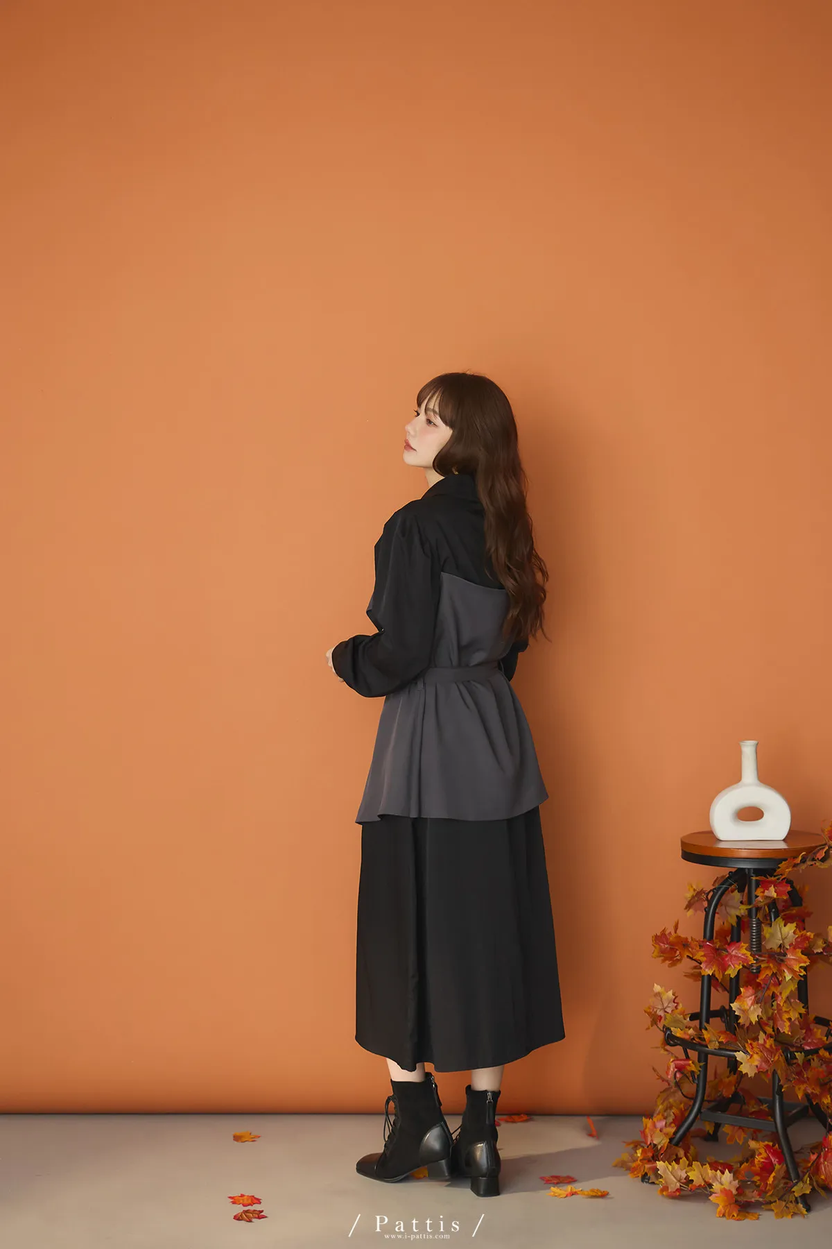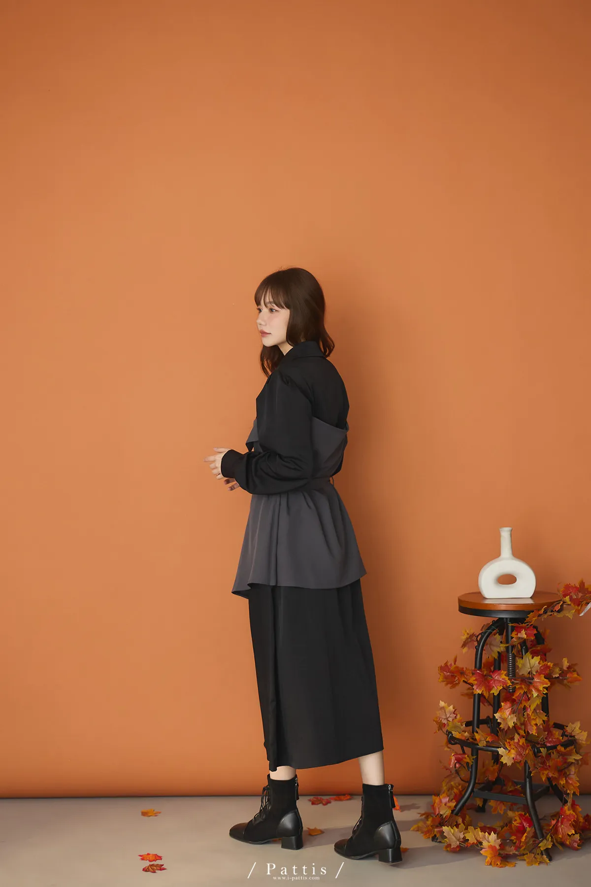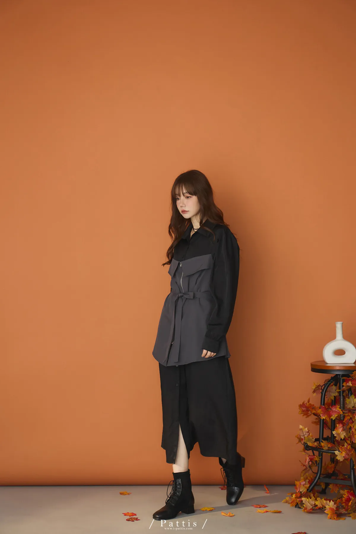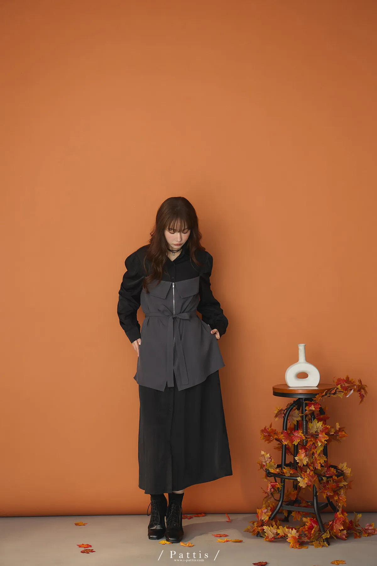 打包那些眷戀給你 | 假兩件翻摺背心繫帶襯衫洋裝(灰黑)