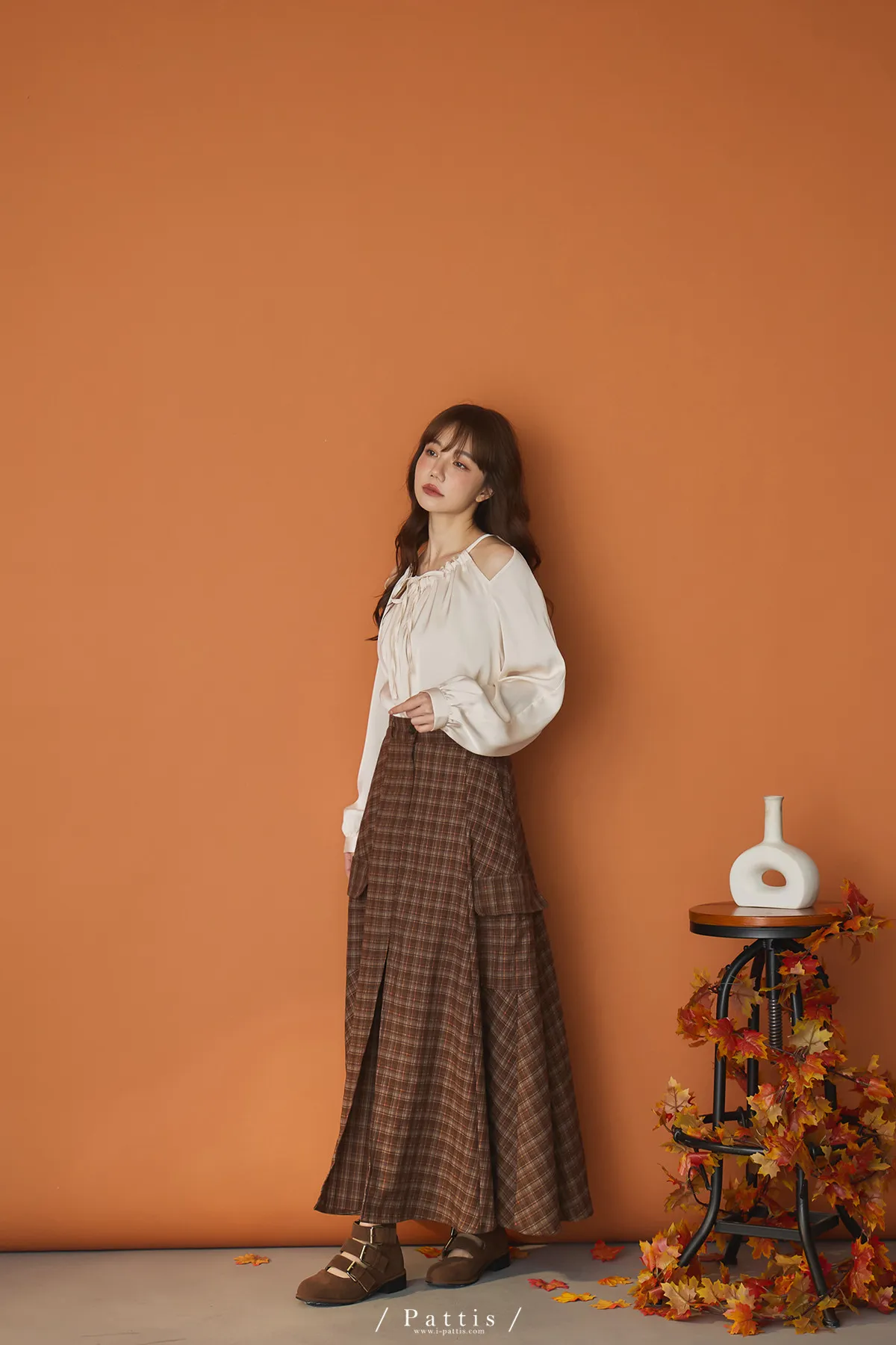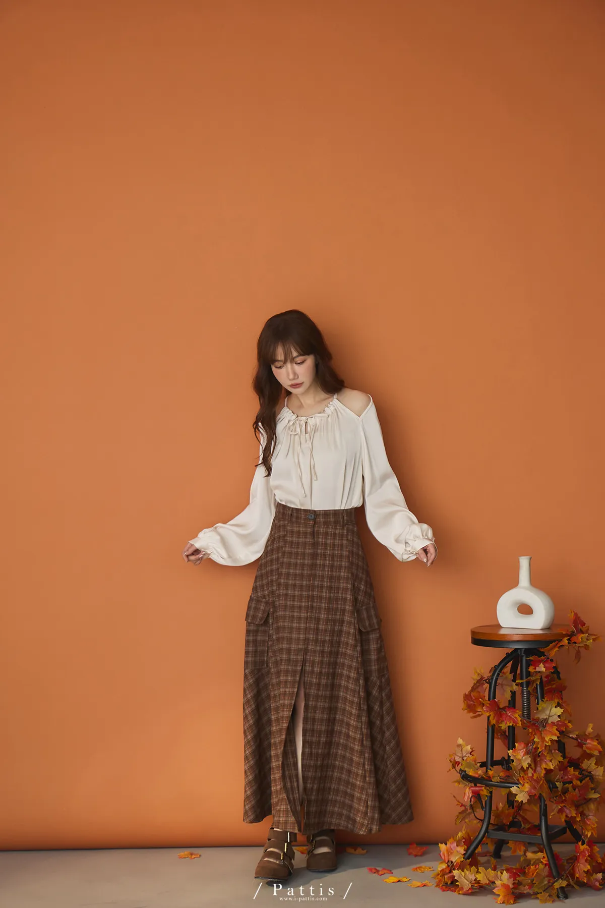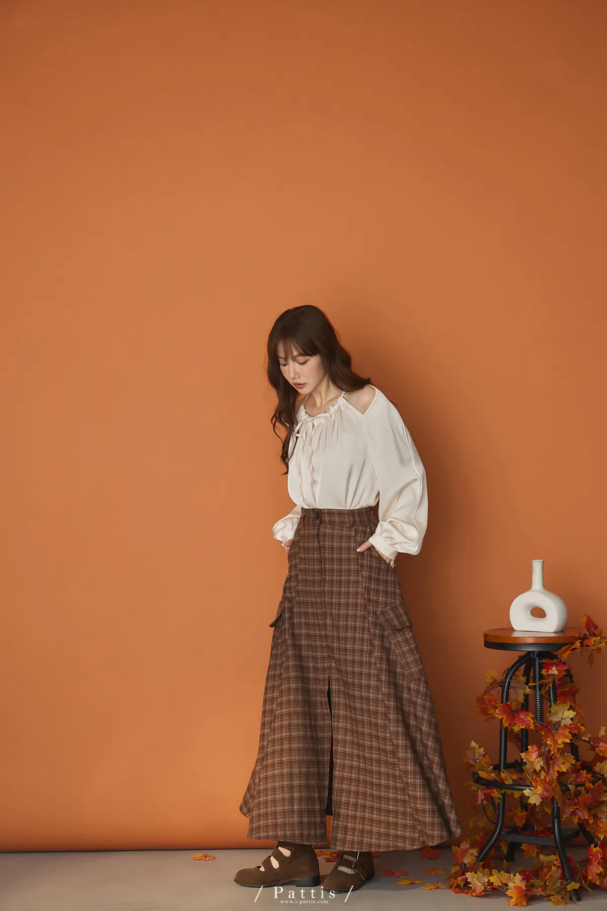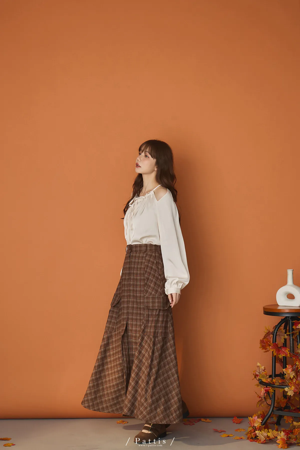 (現貨)自由是靈魂氧氣 | 開叉口袋造型格紋傘裙(咖啡)