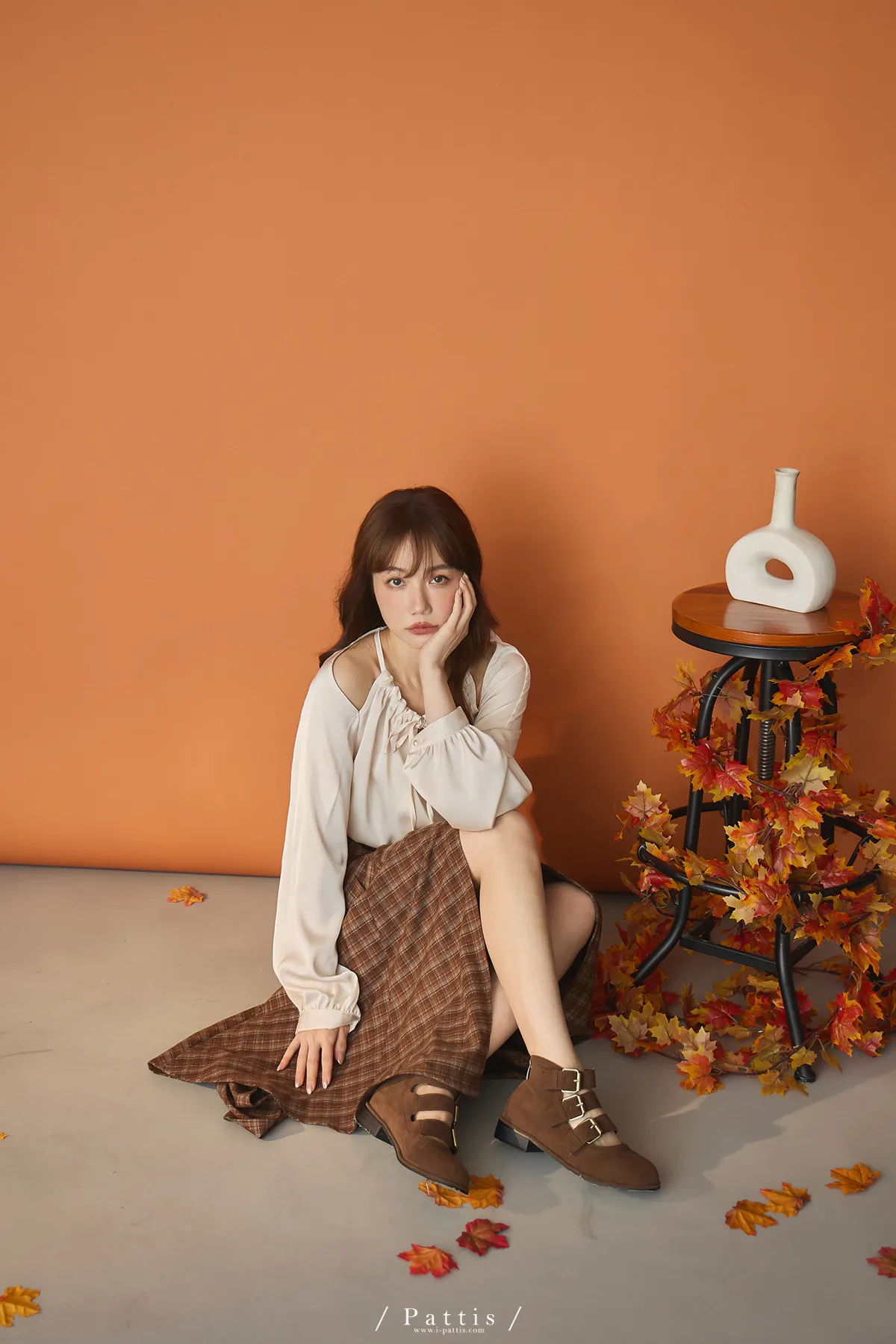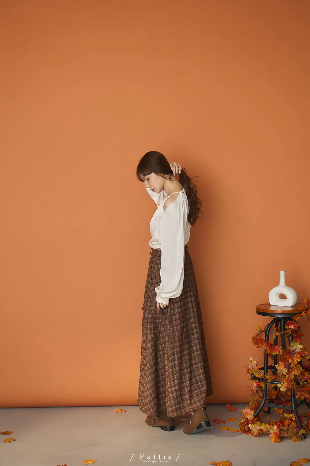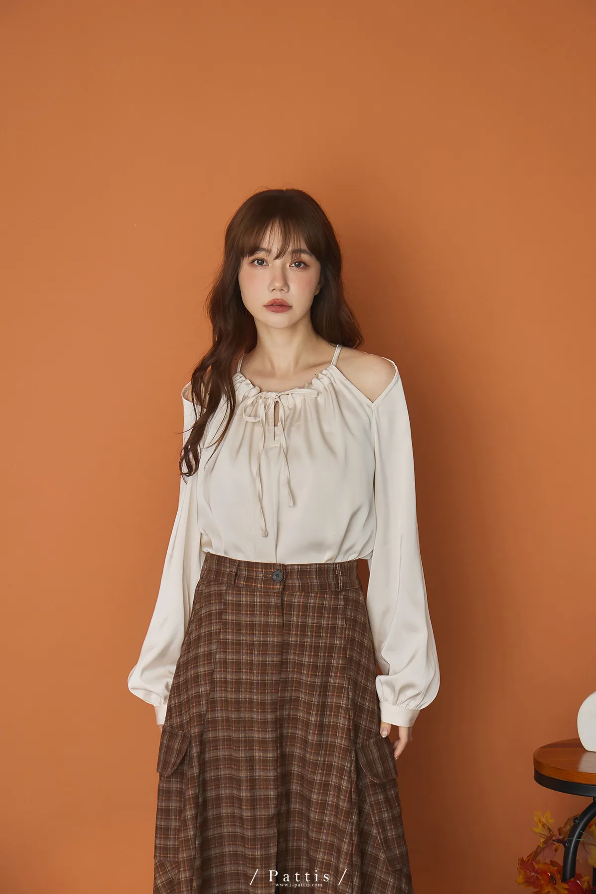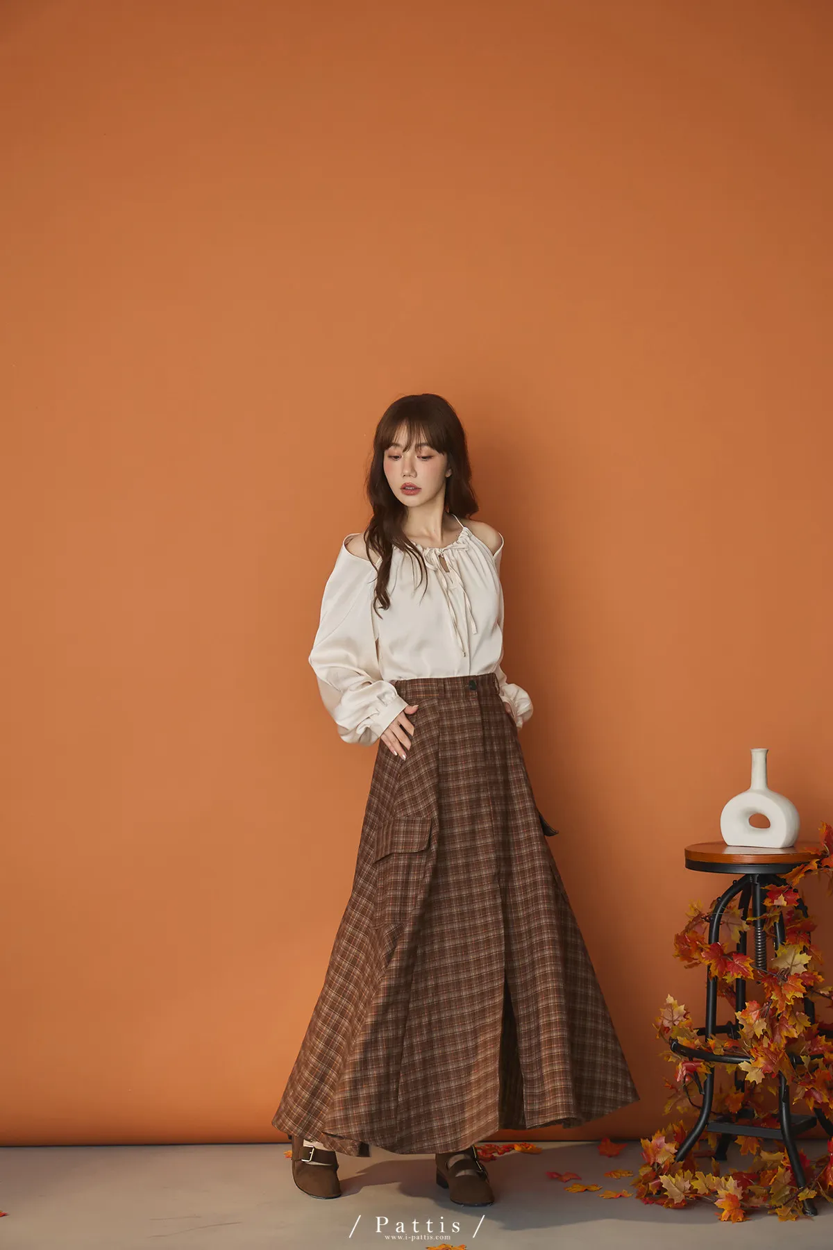 (現貨)自由是靈魂氧氣 | 開叉口袋造型格紋傘裙(咖啡)
