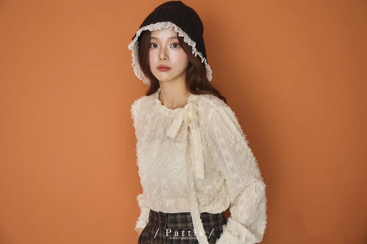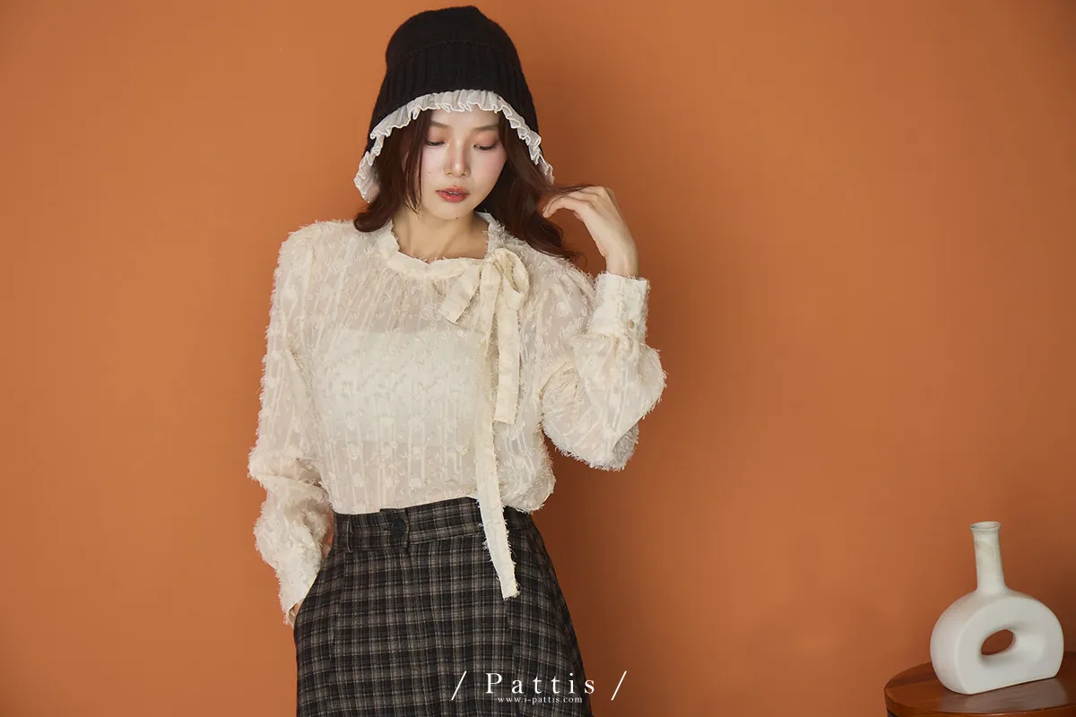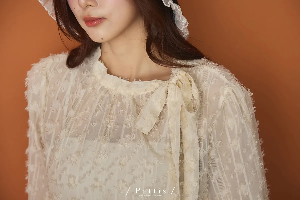 陽光曬透的翅膀 | 立體浮雕網紗蝴蝶結上衣(米杏)