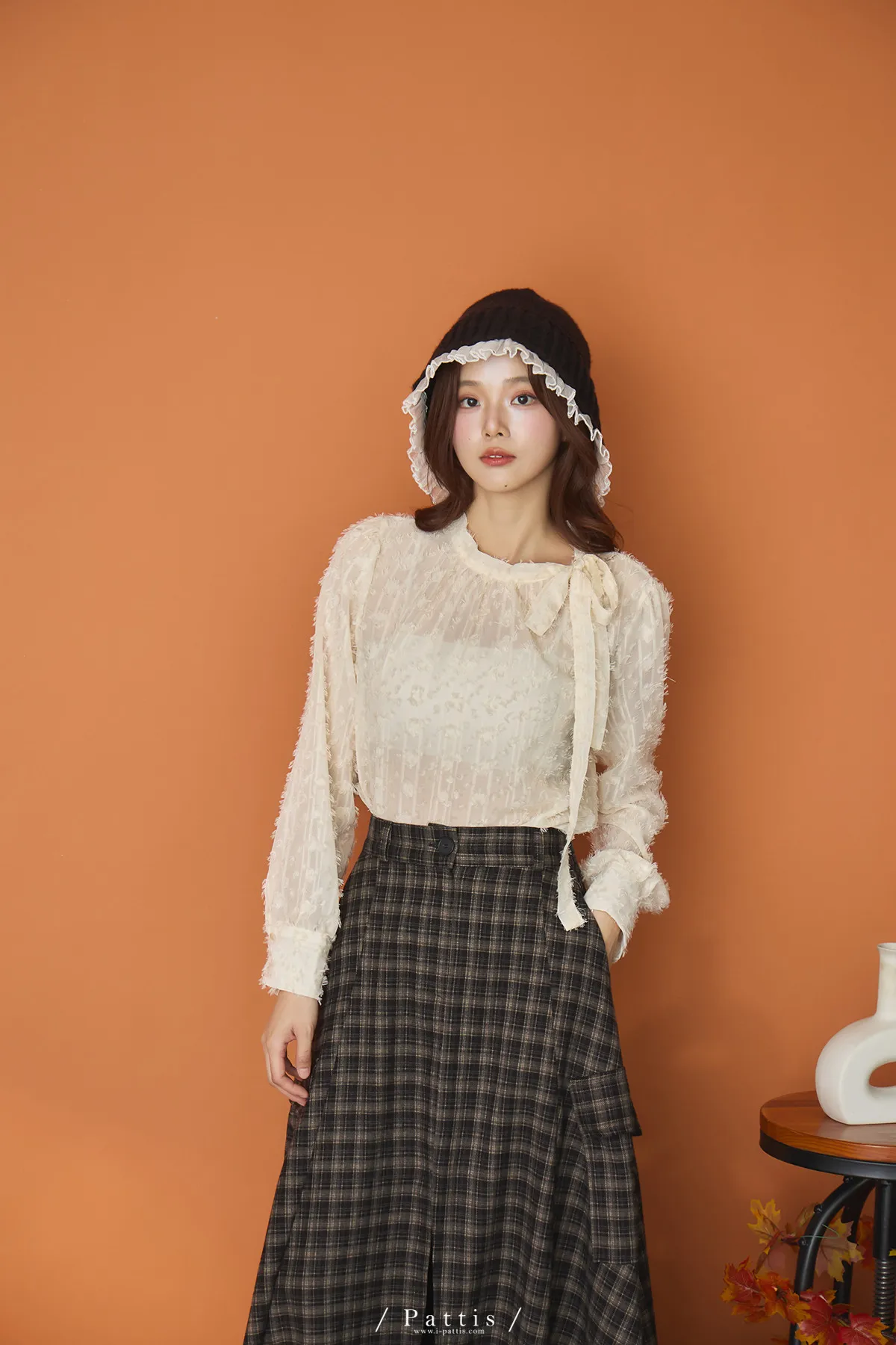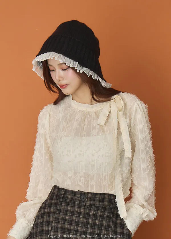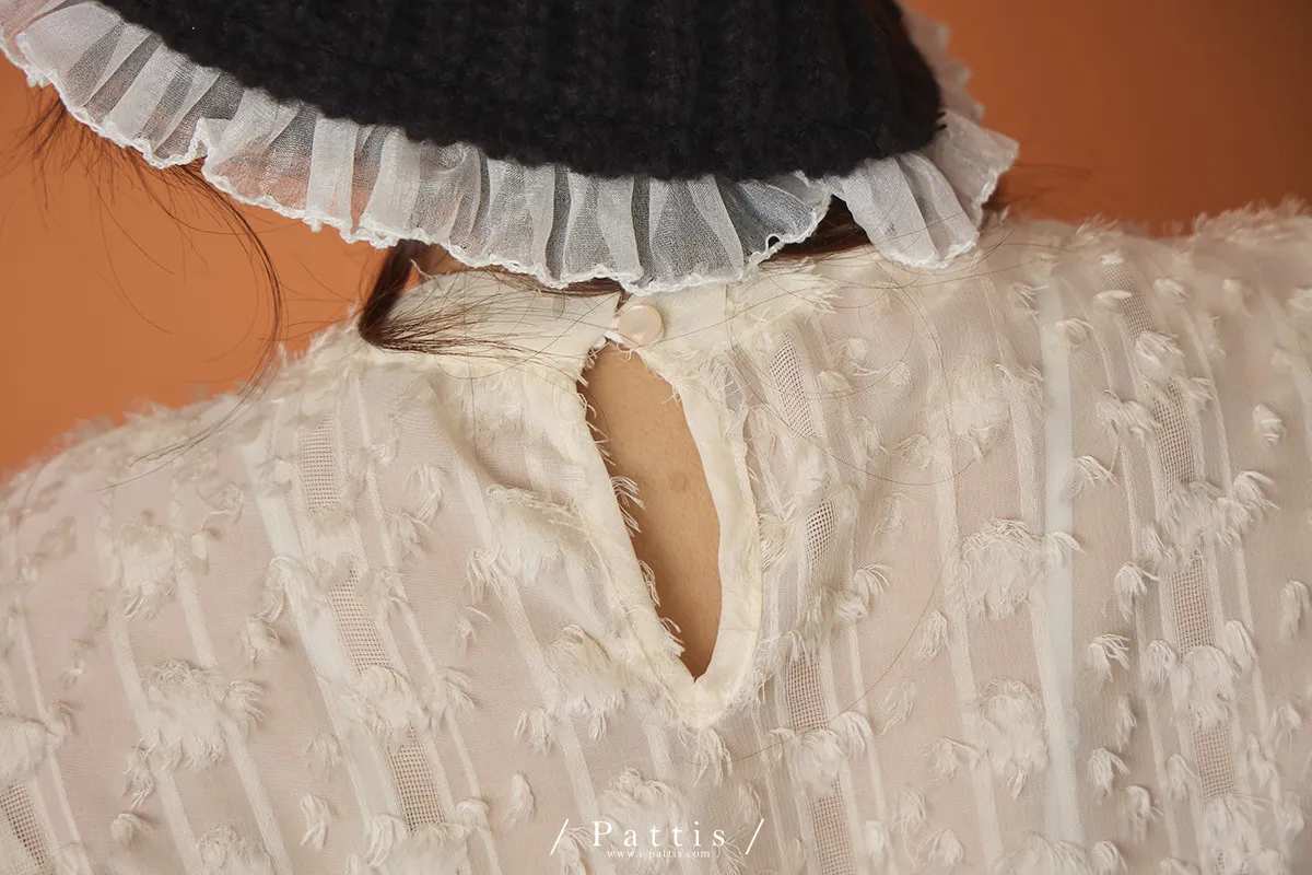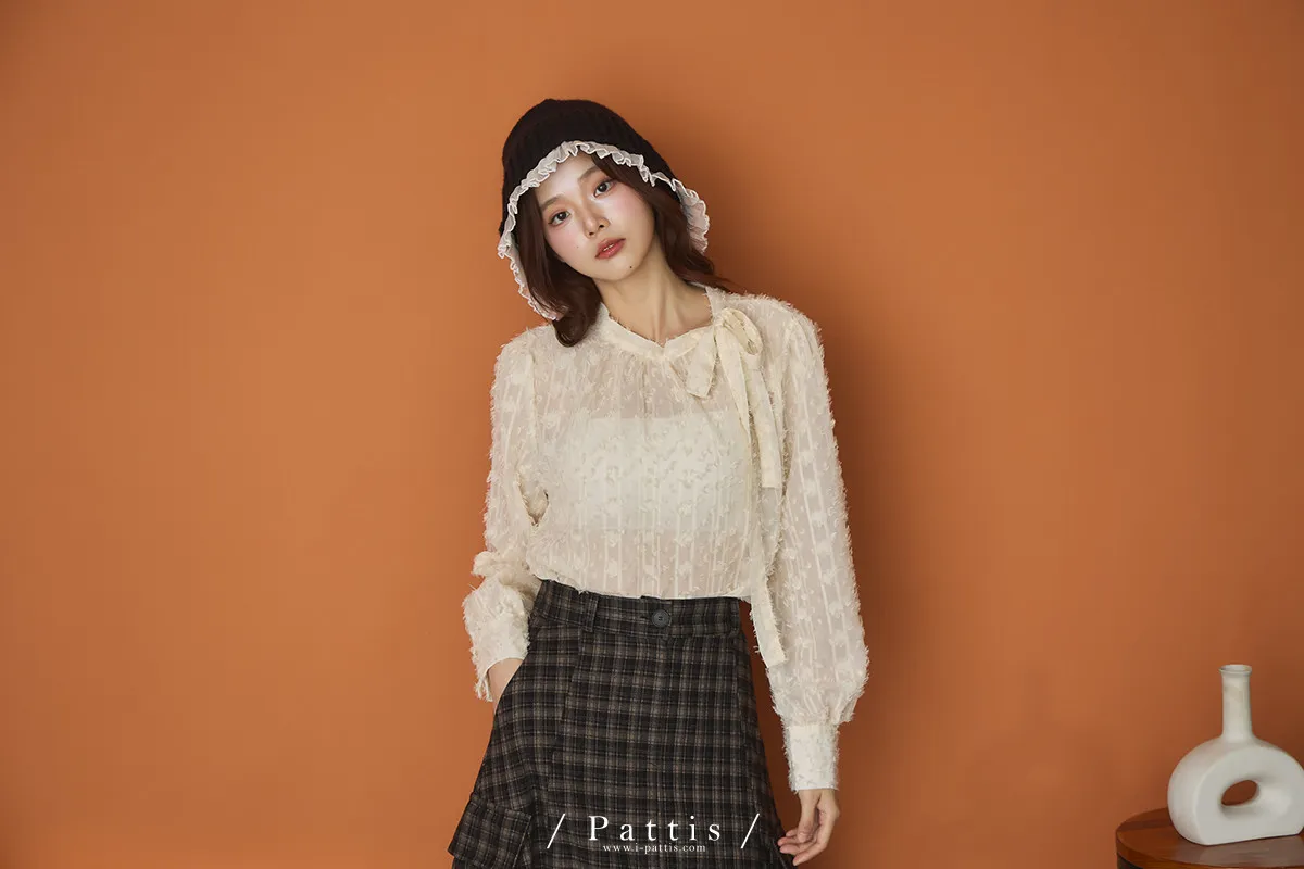 陽光曬透的翅膀 | 立體浮雕網紗蝴蝶結上衣(米杏)