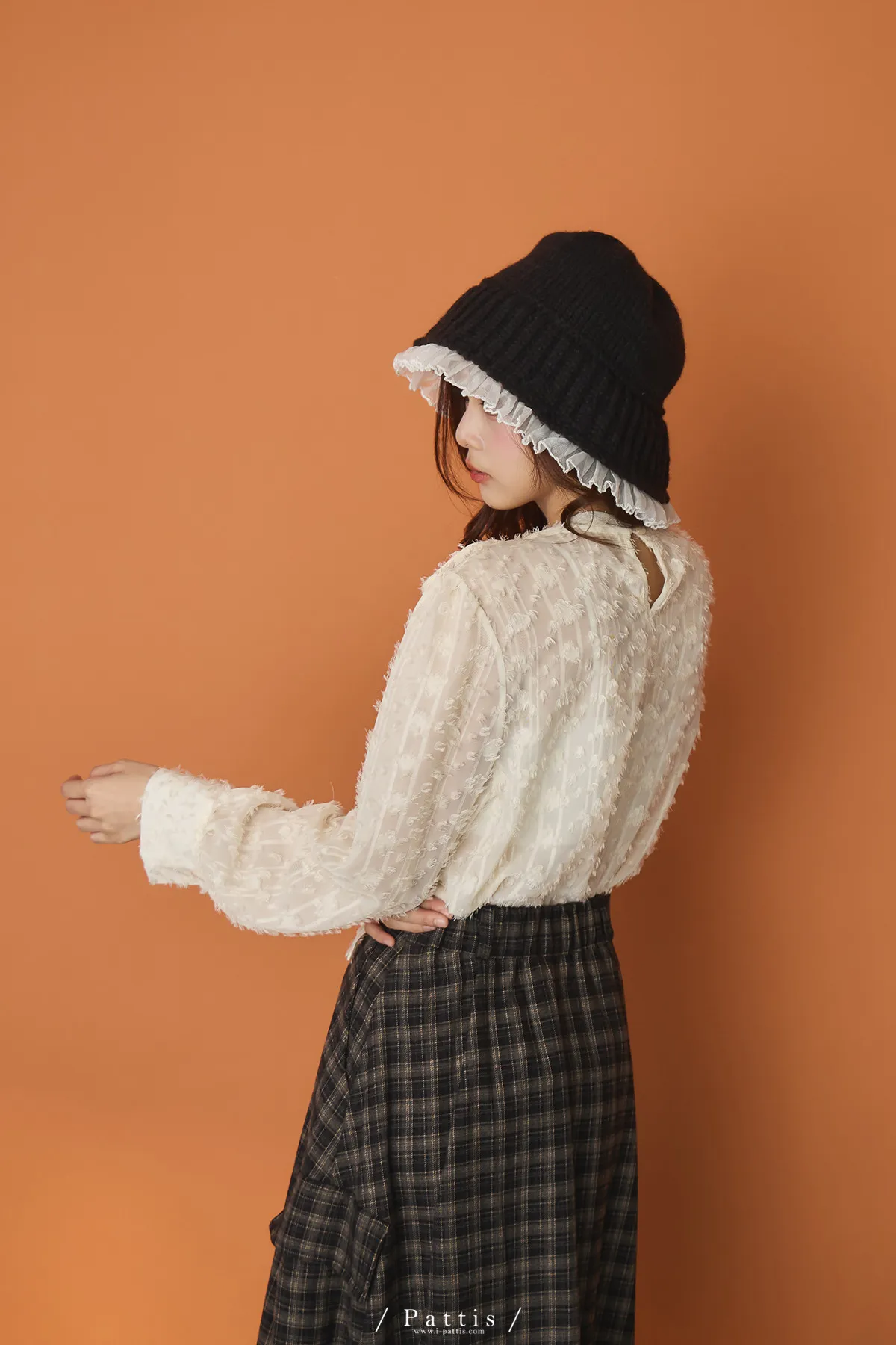 | F | 61 | 34 | 52 | 50 | 60 | 9(有袖釦) | 17 | 24 | 雪紡 | X | 後鈕釦+領口綁帶穿套 |