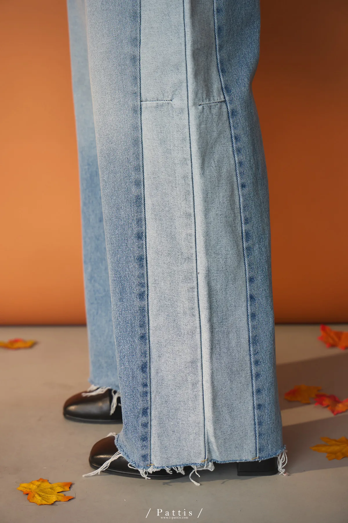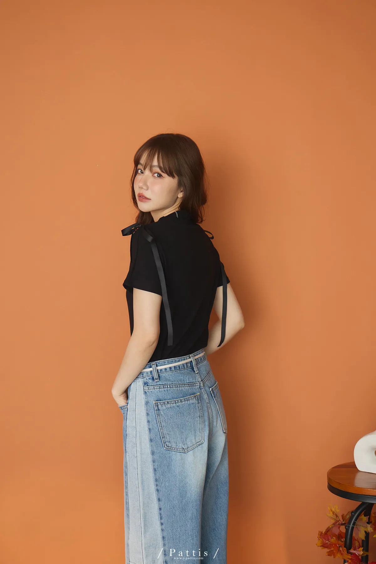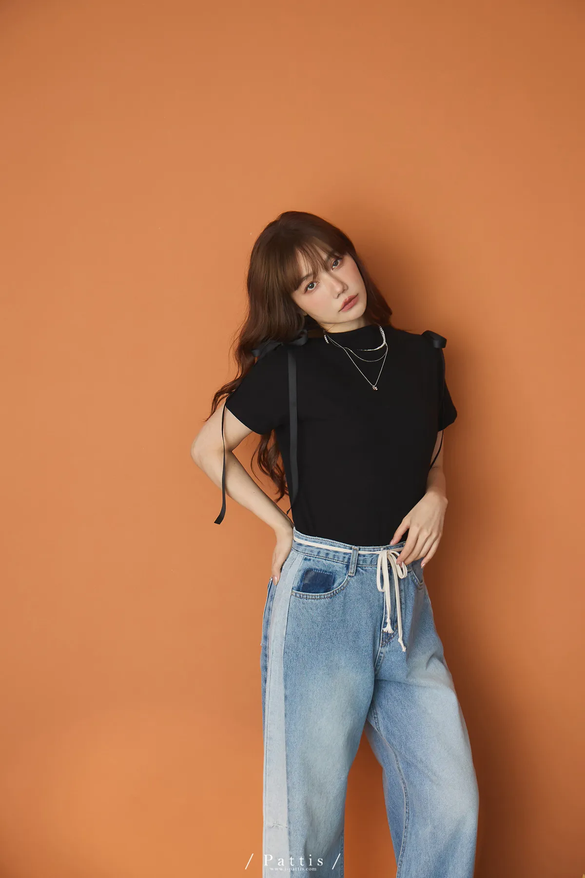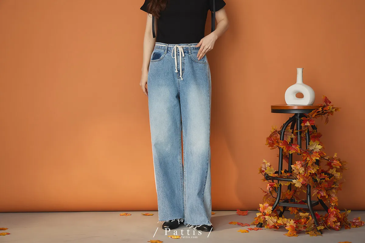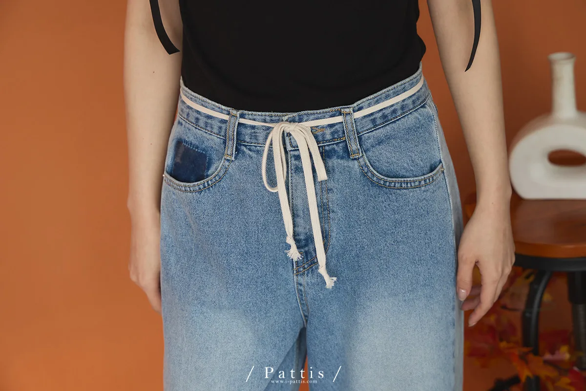 高原效應 | 拼接雙色顯瘦綁帶丹寧寬褲(單一色)