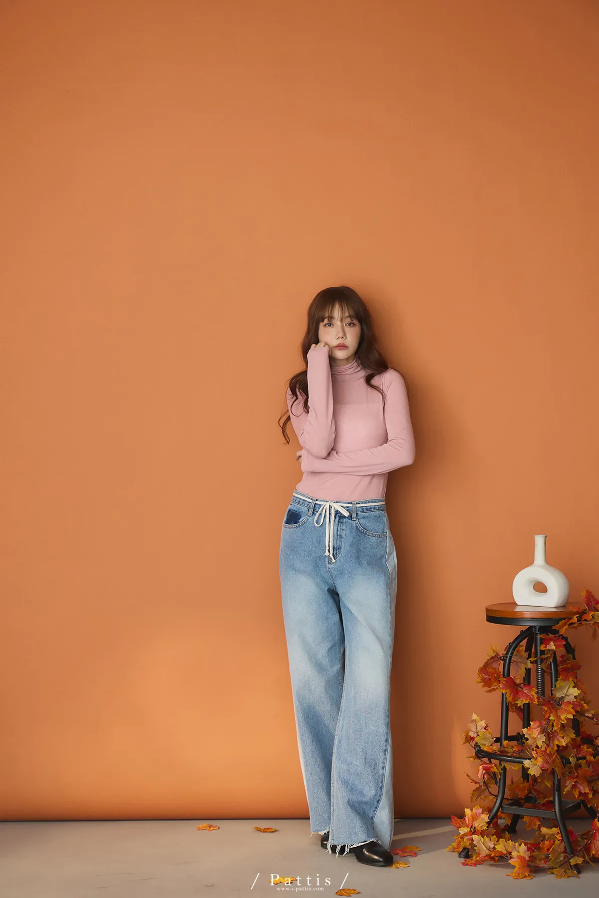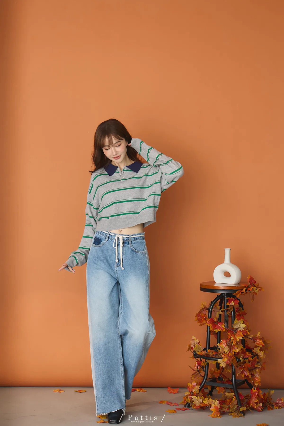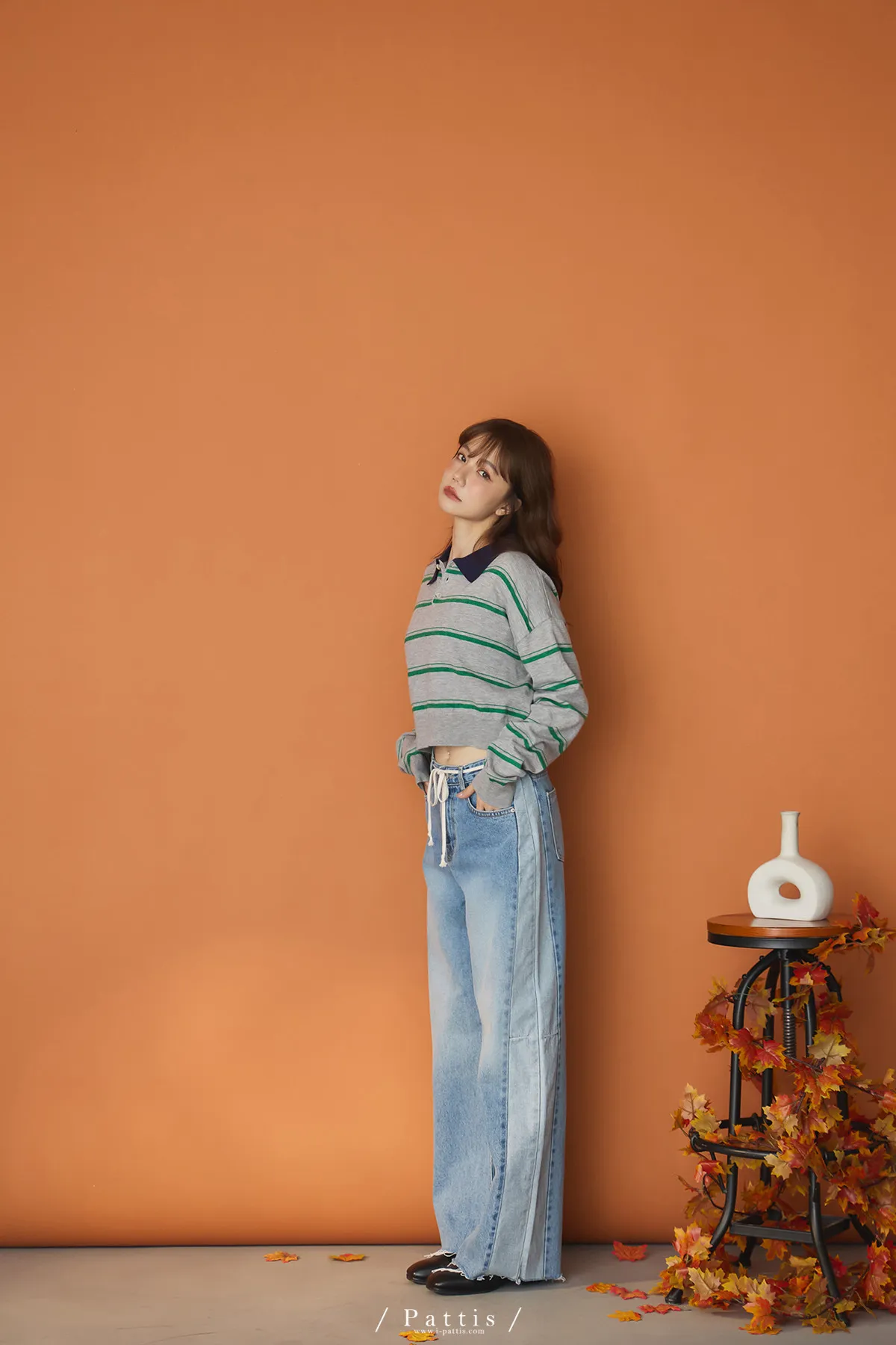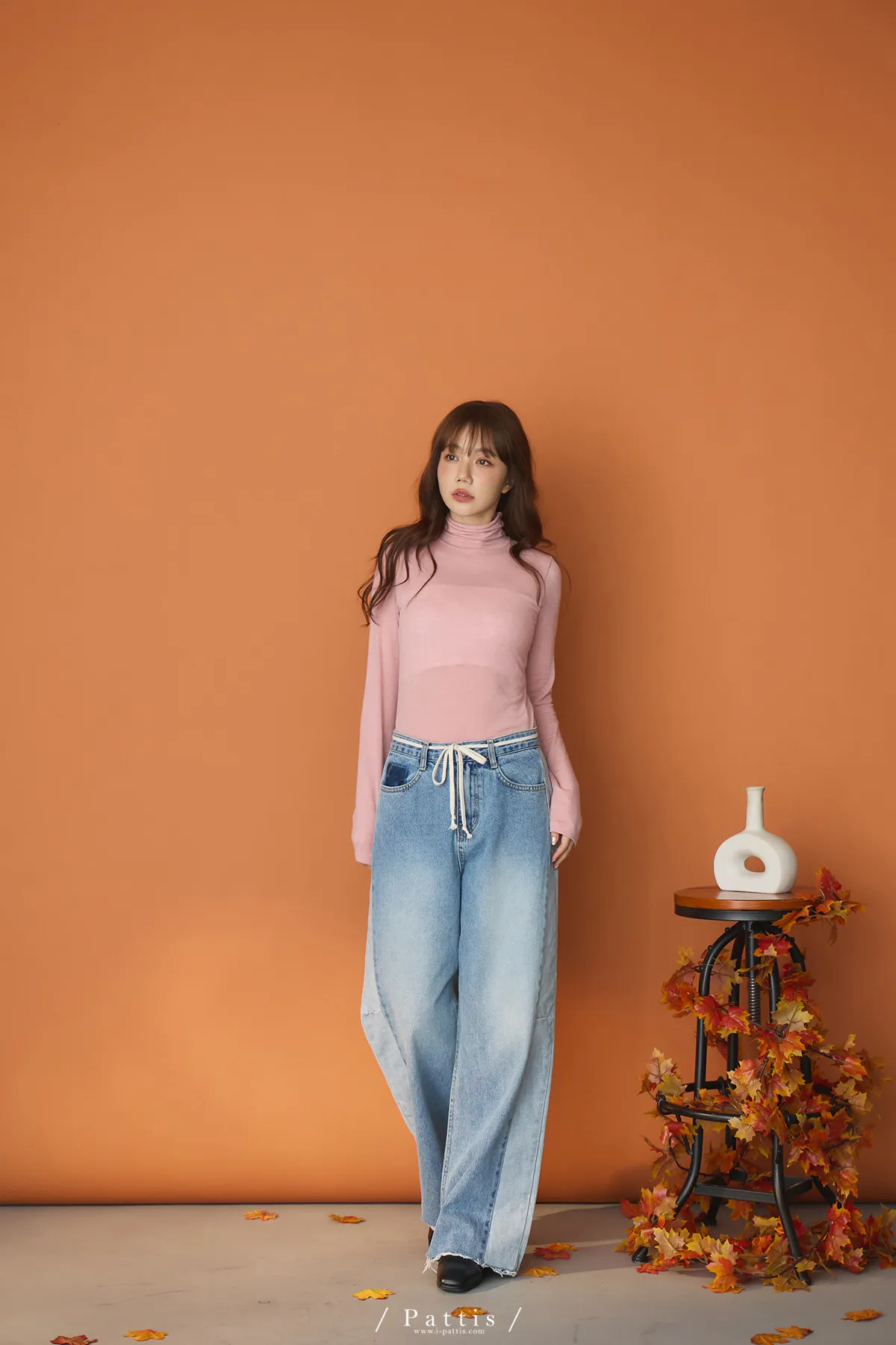 高原效應 | 拼接雙色顯瘦綁帶丹寧寬褲(單一色)
