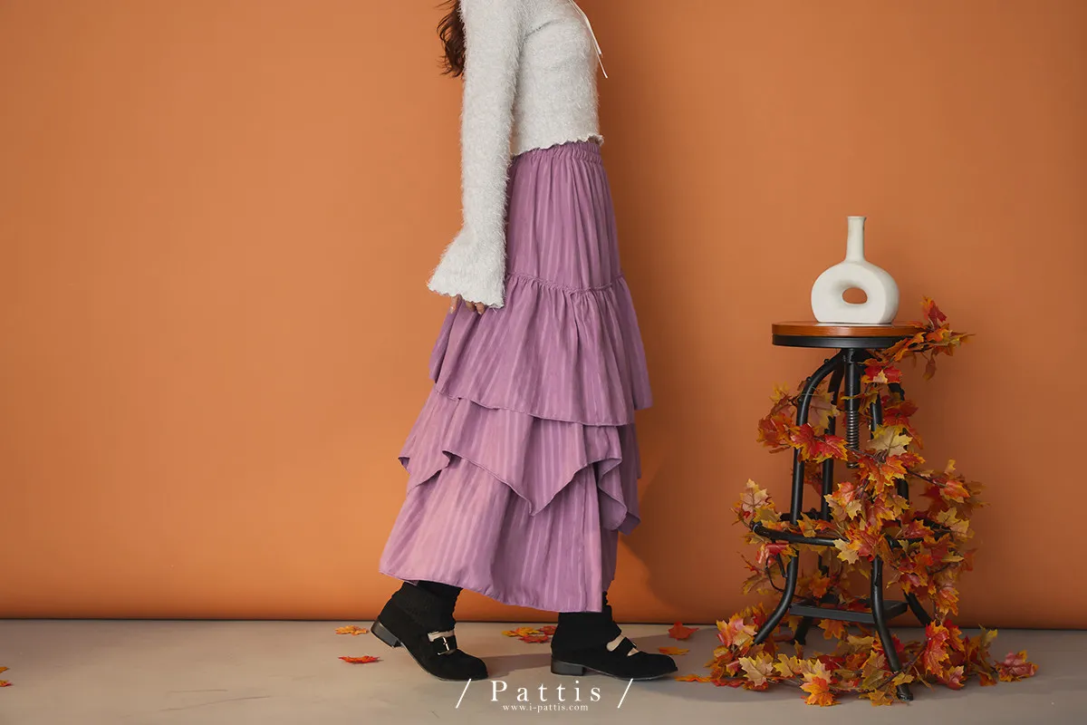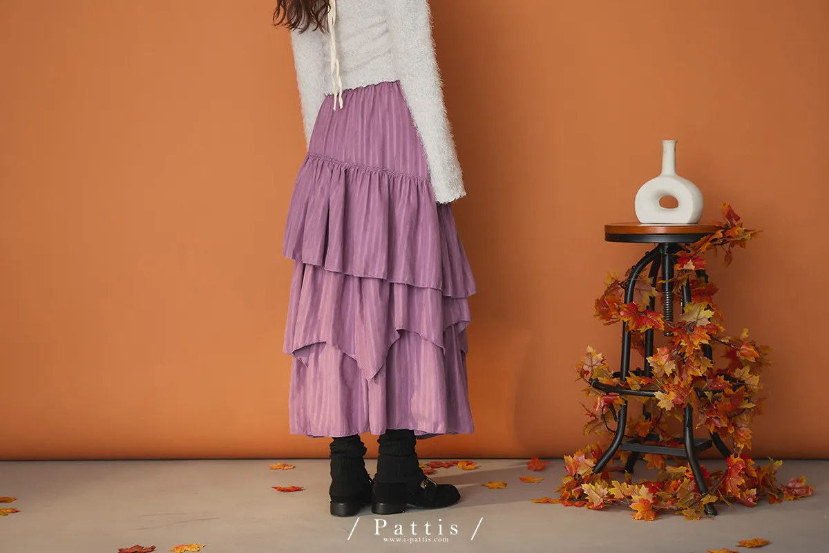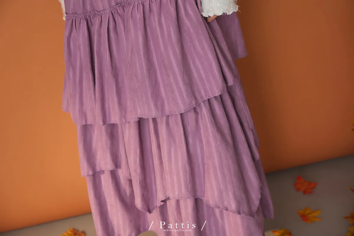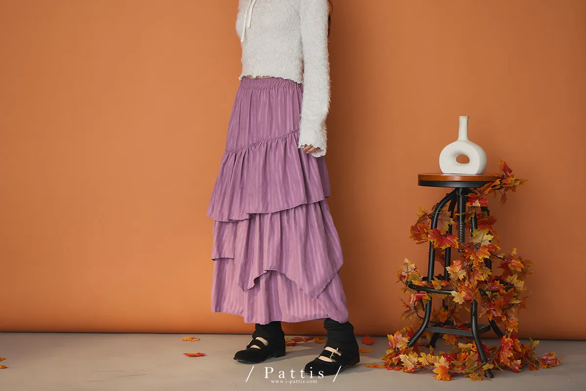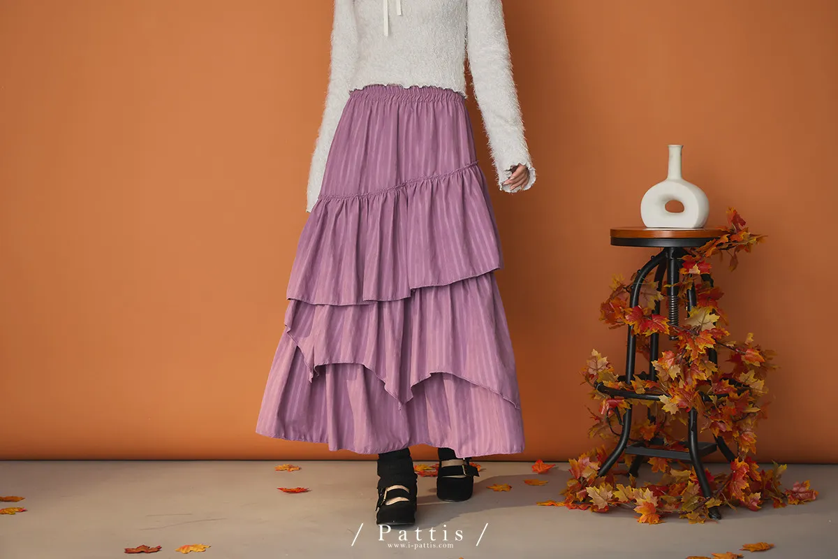 餵我烤餅乾 | 條紋斜邊拼接蛋糕裙(粉紫)