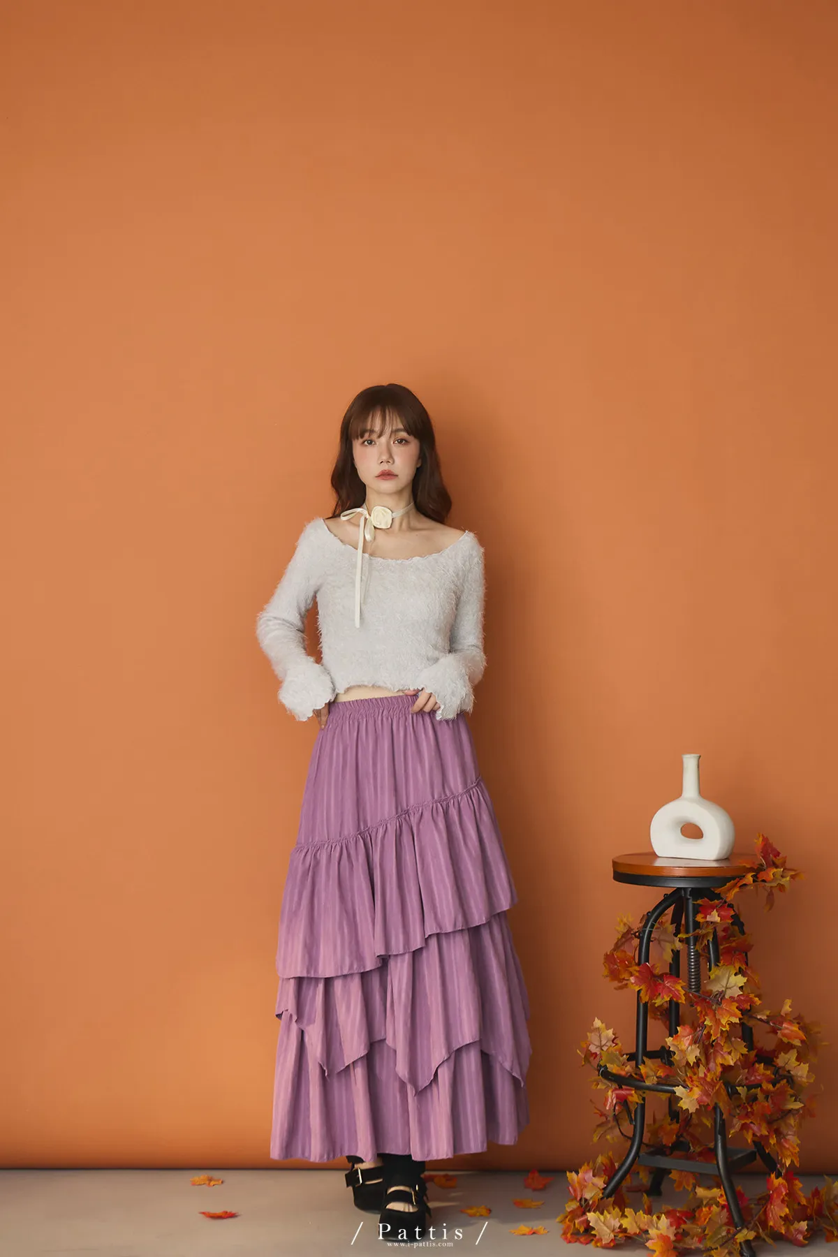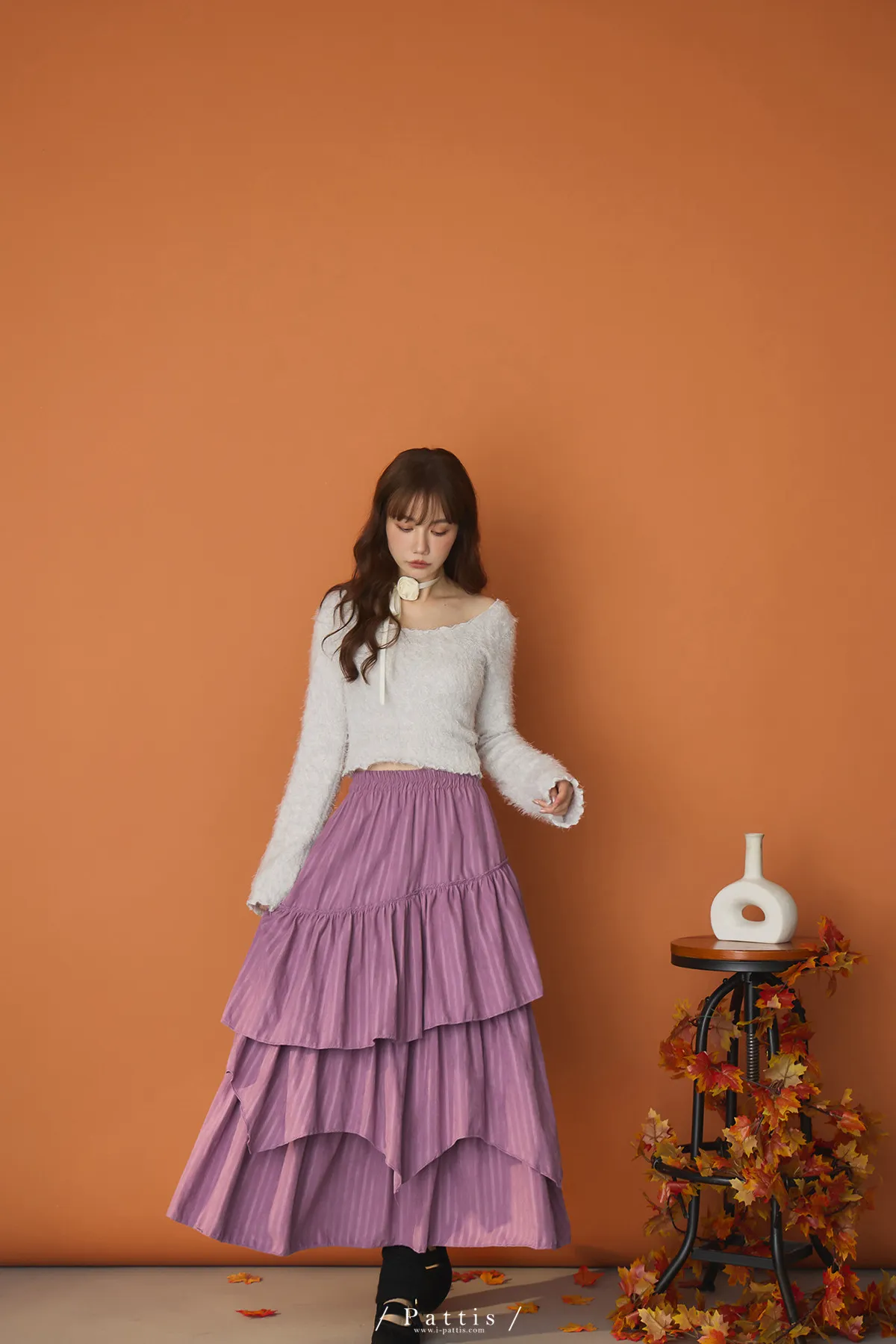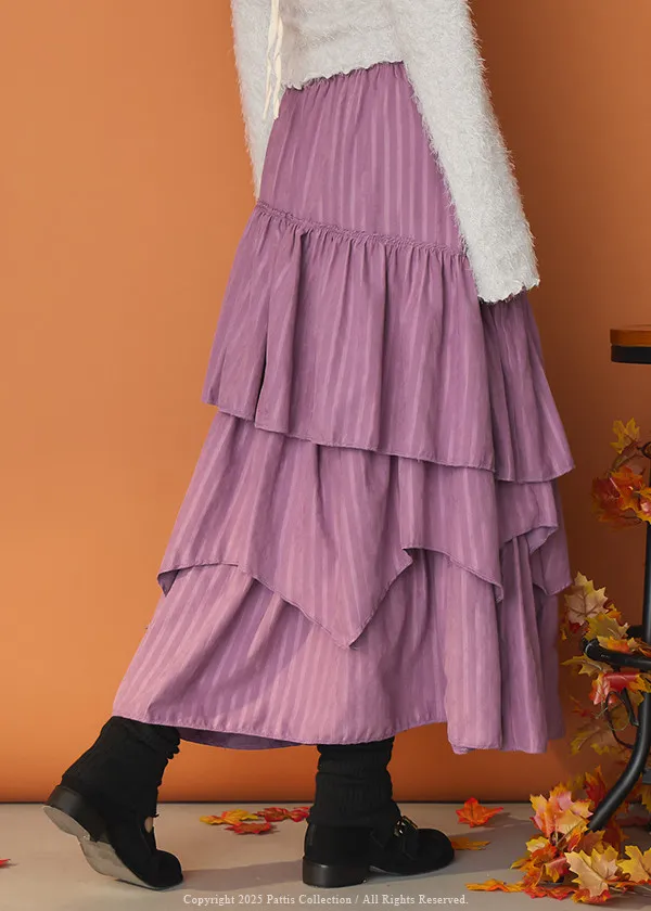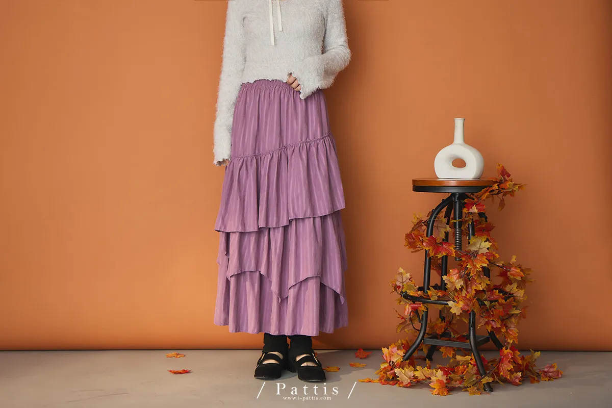 餵我烤餅乾 | 條紋斜邊拼接蛋糕裙(粉紫)