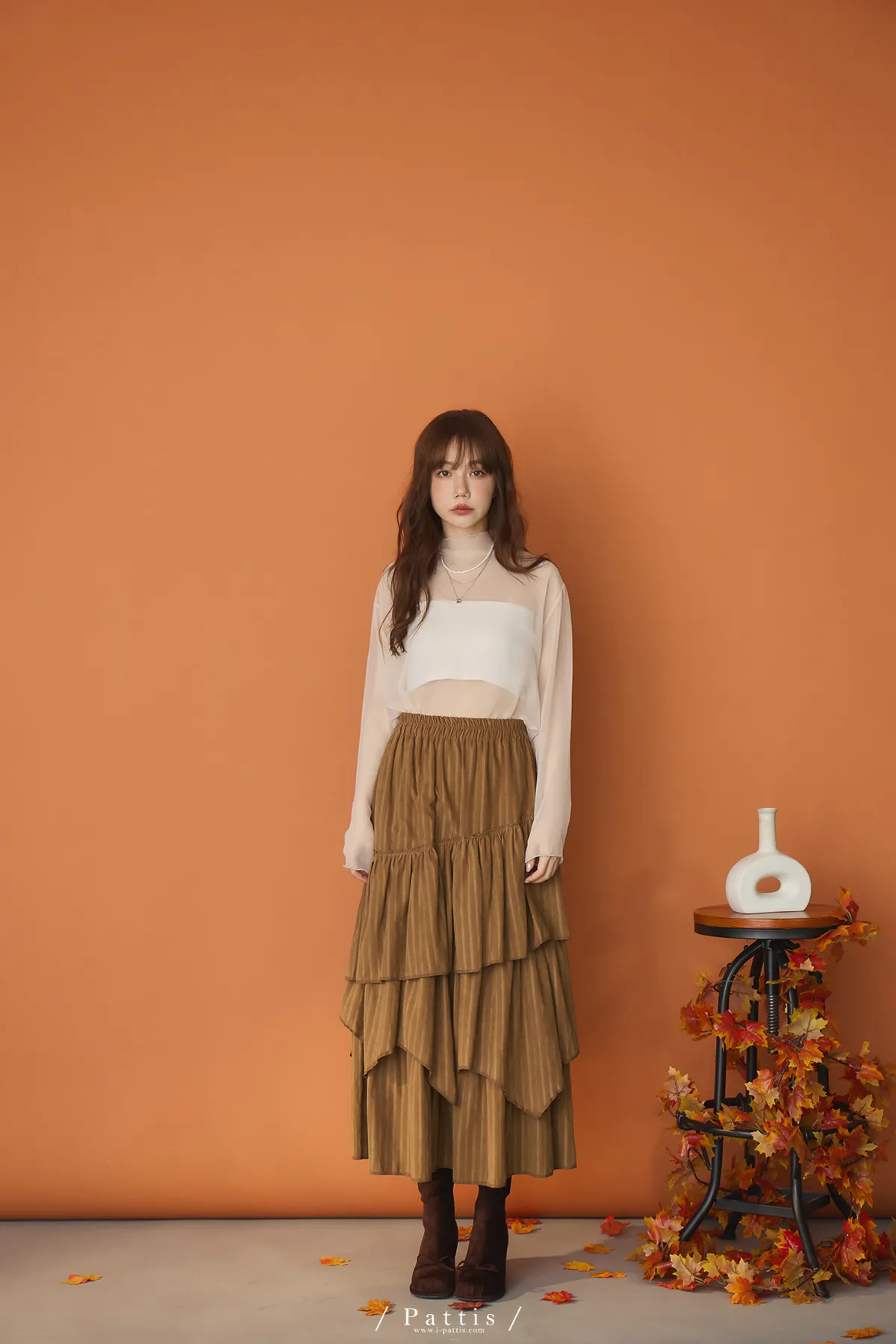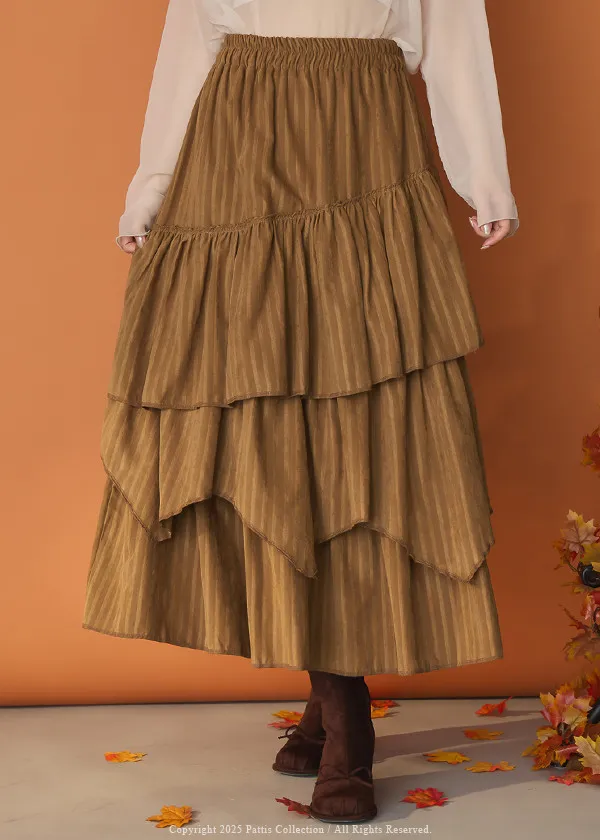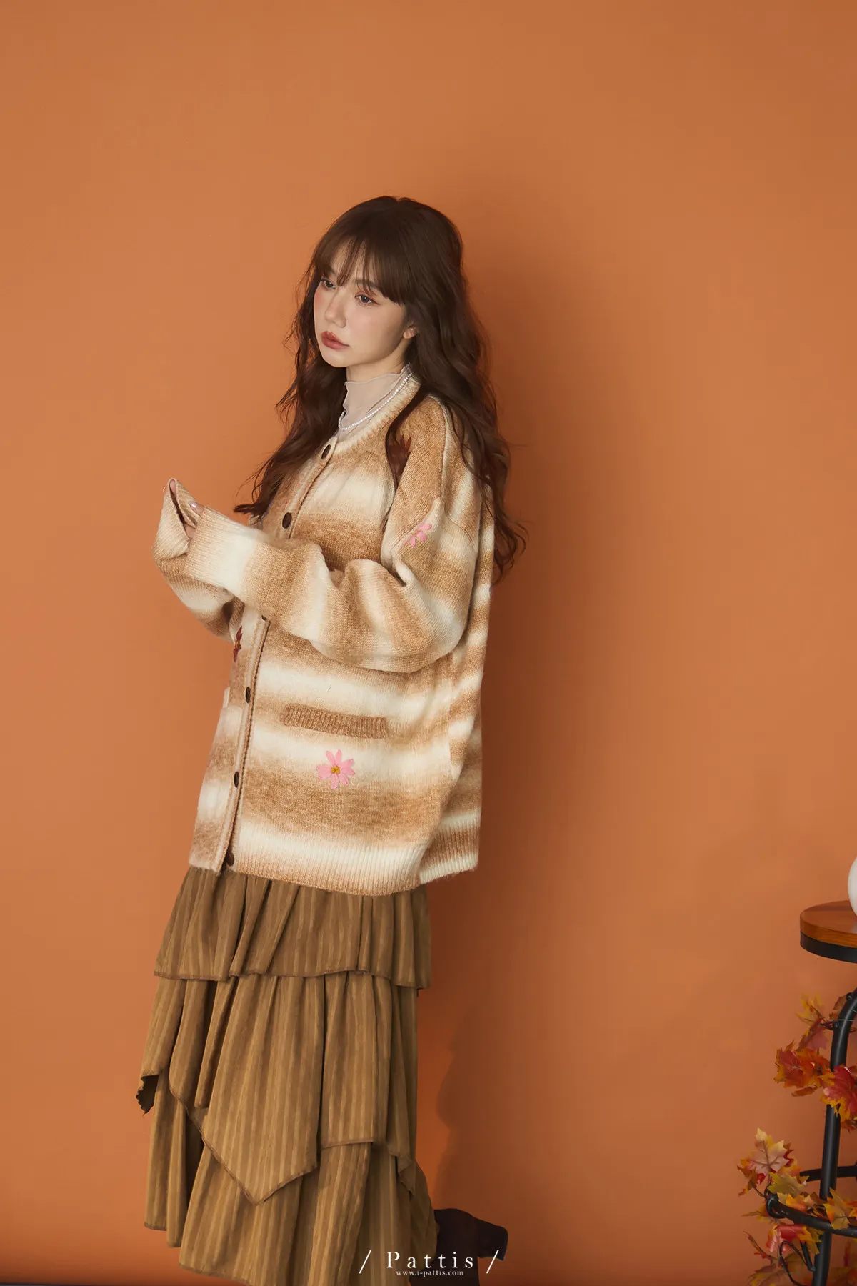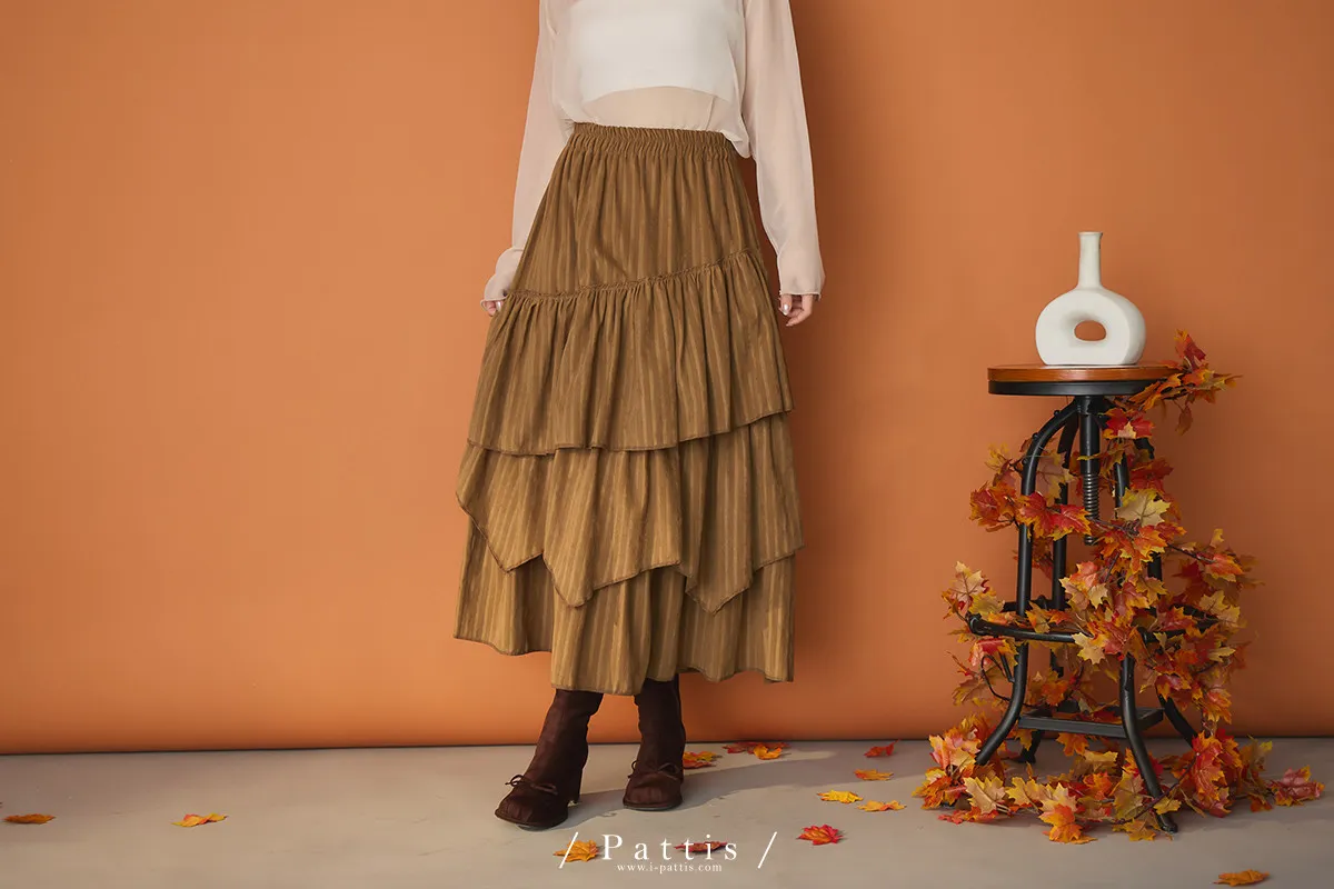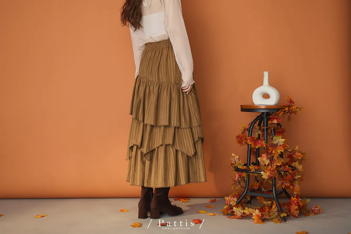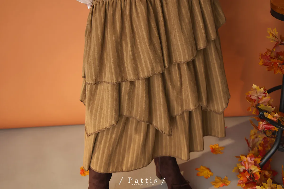 餵我烤餅乾 | 條紋斜邊拼接蛋糕裙(駝棕)