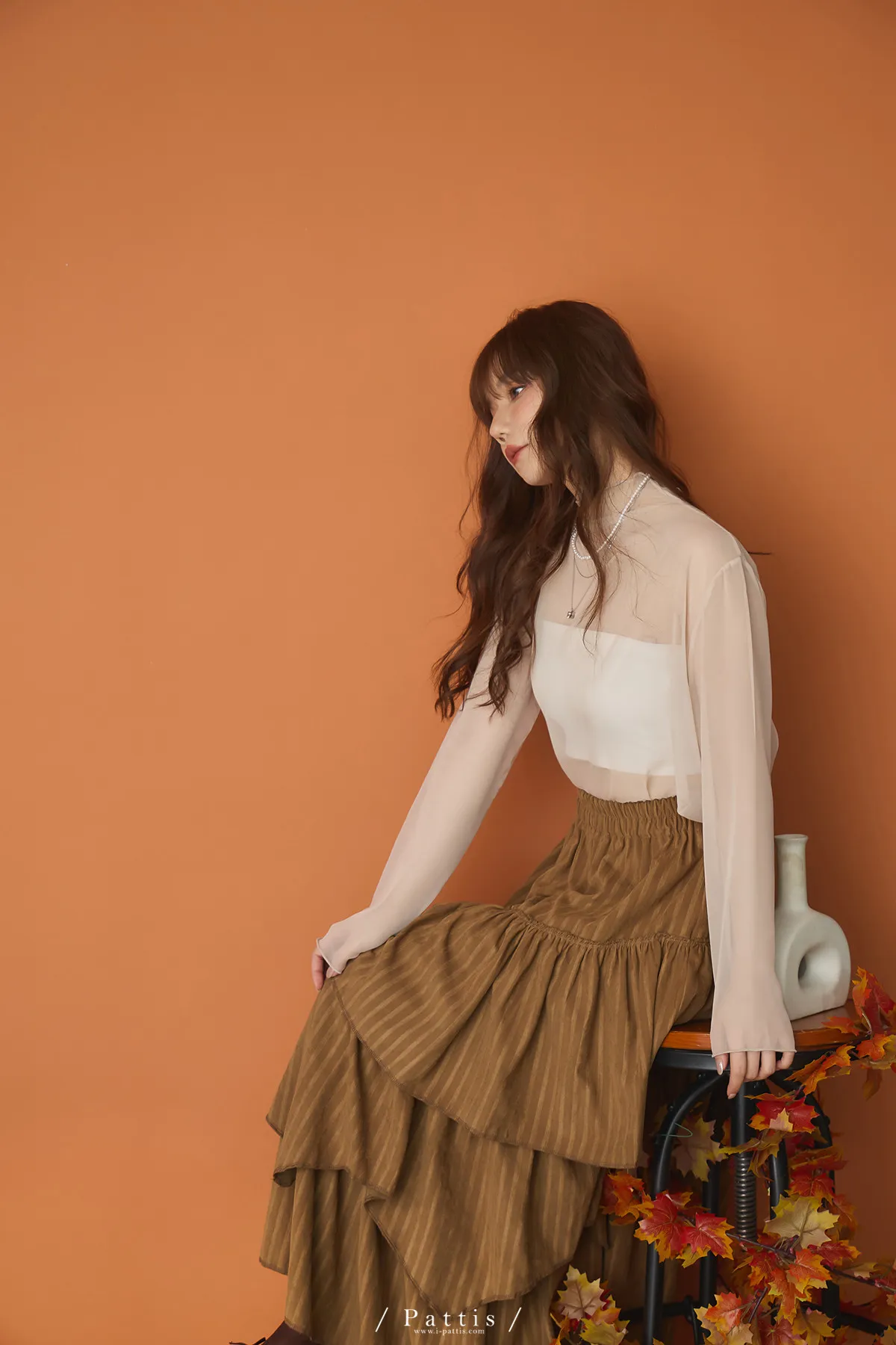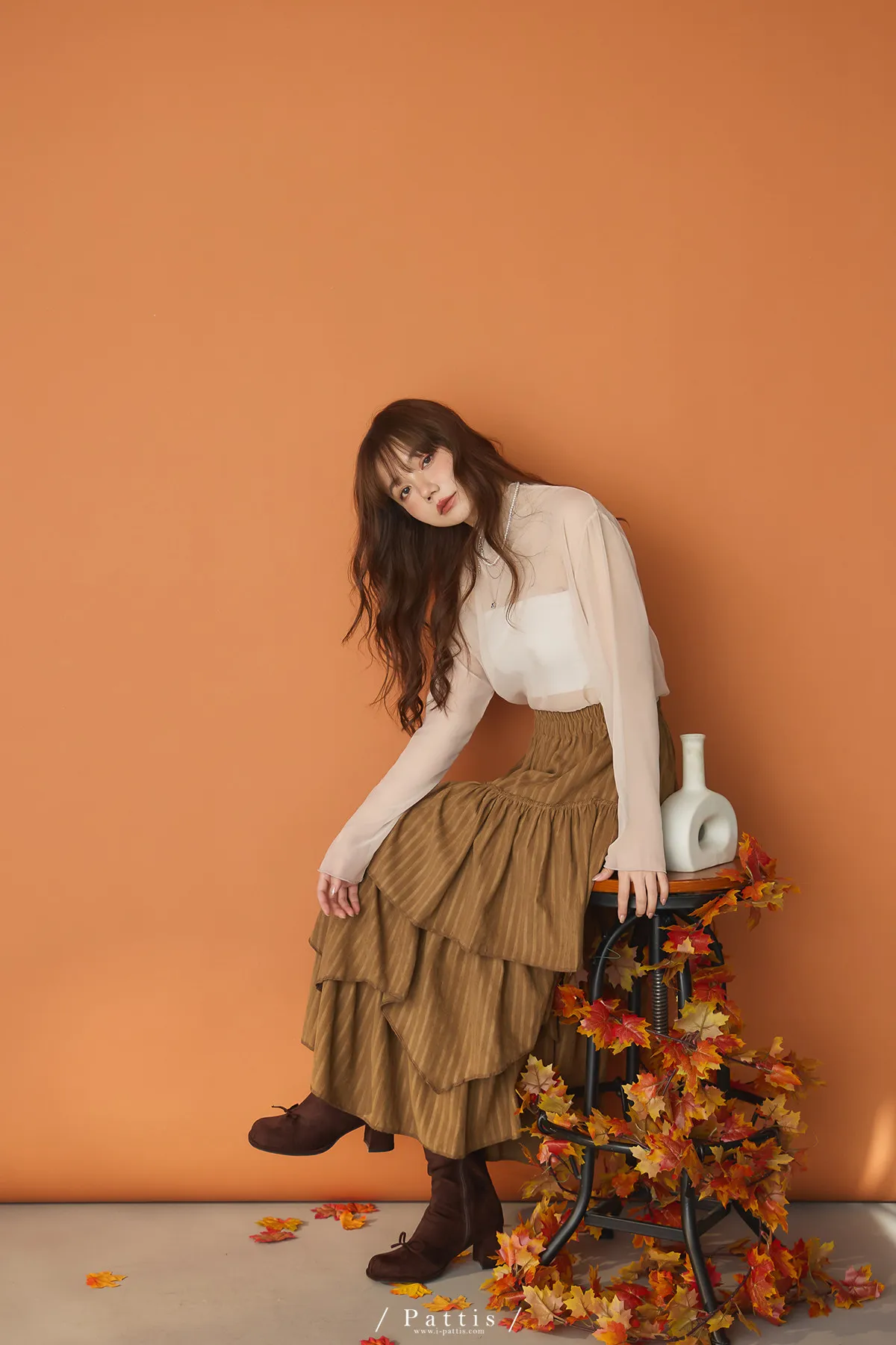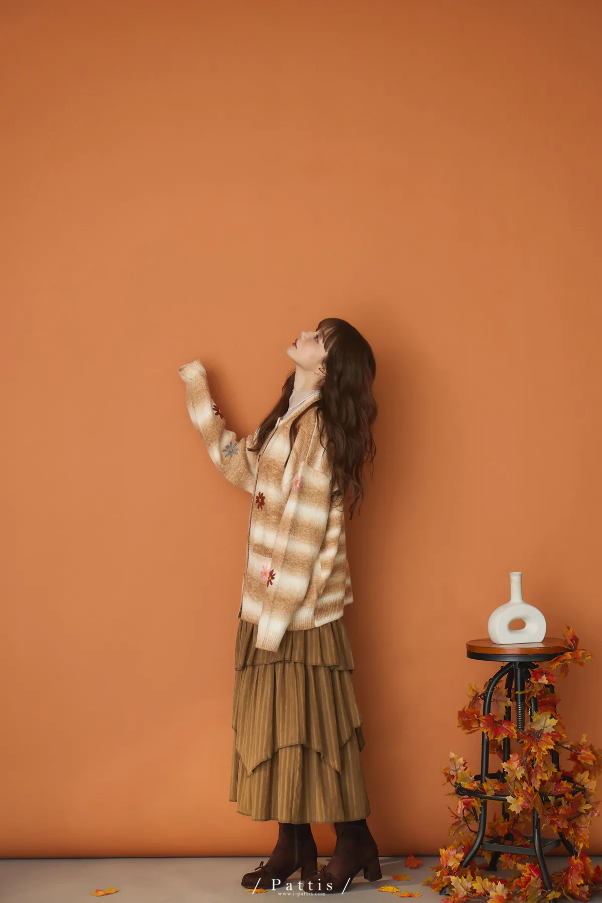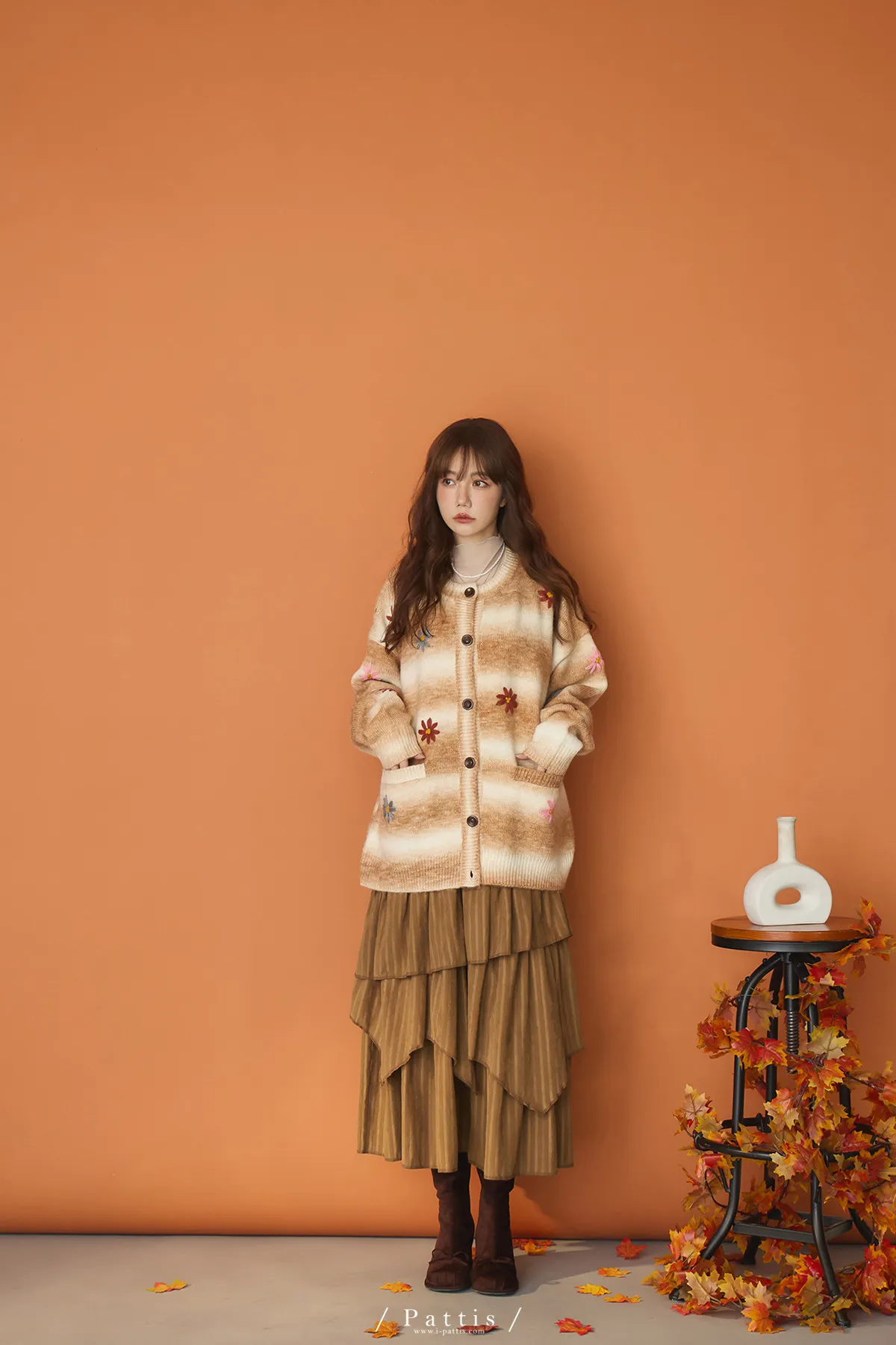 餵我烤餅乾 | 條紋斜邊拼接蛋糕裙(駝棕)