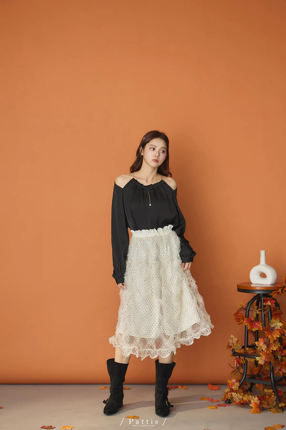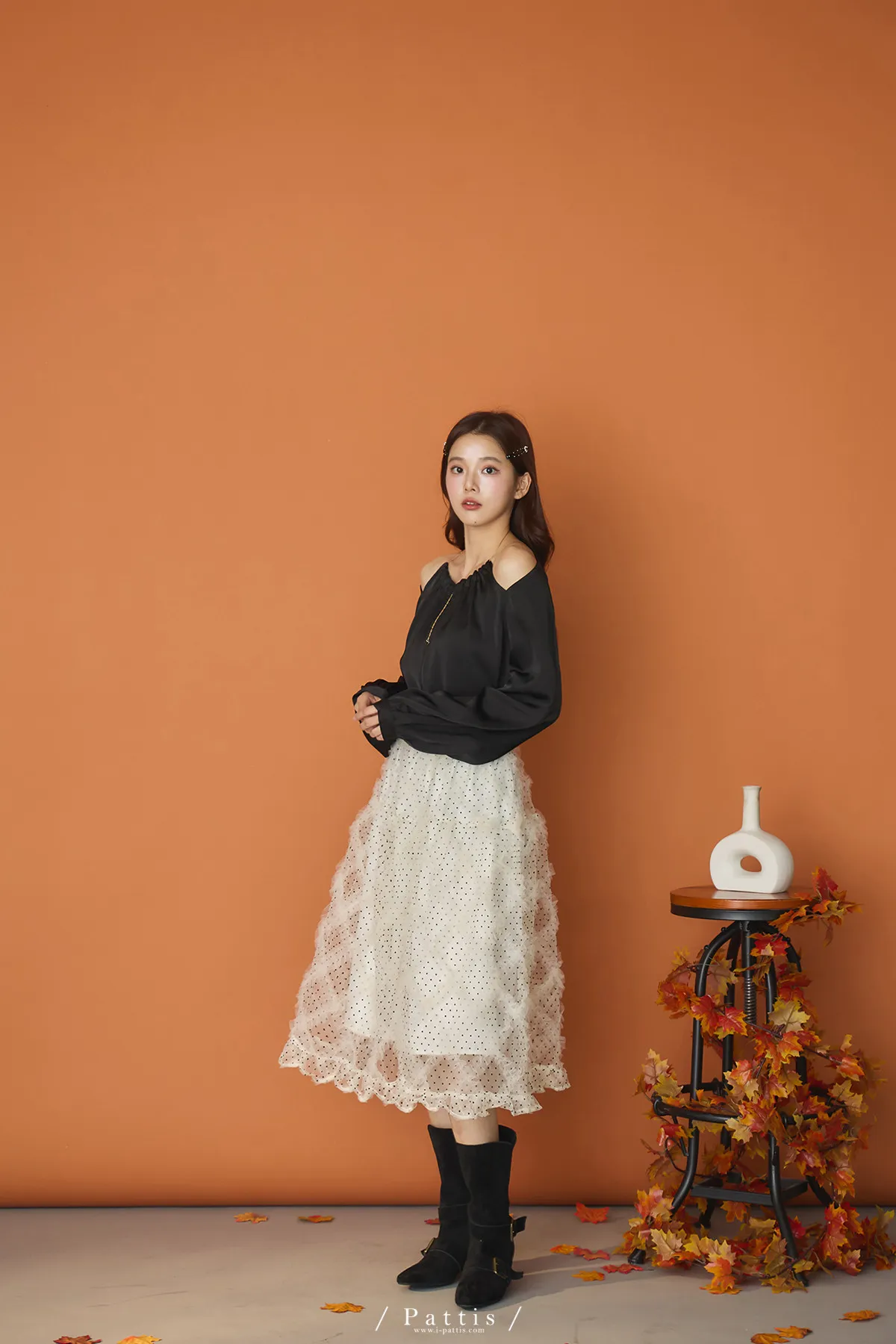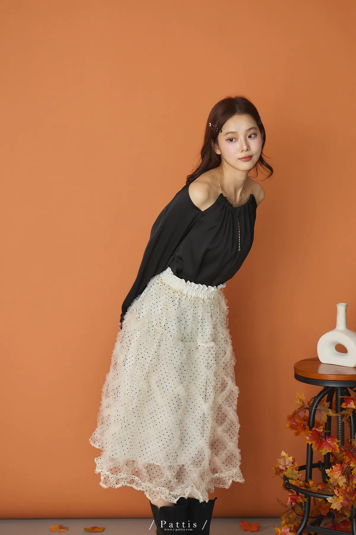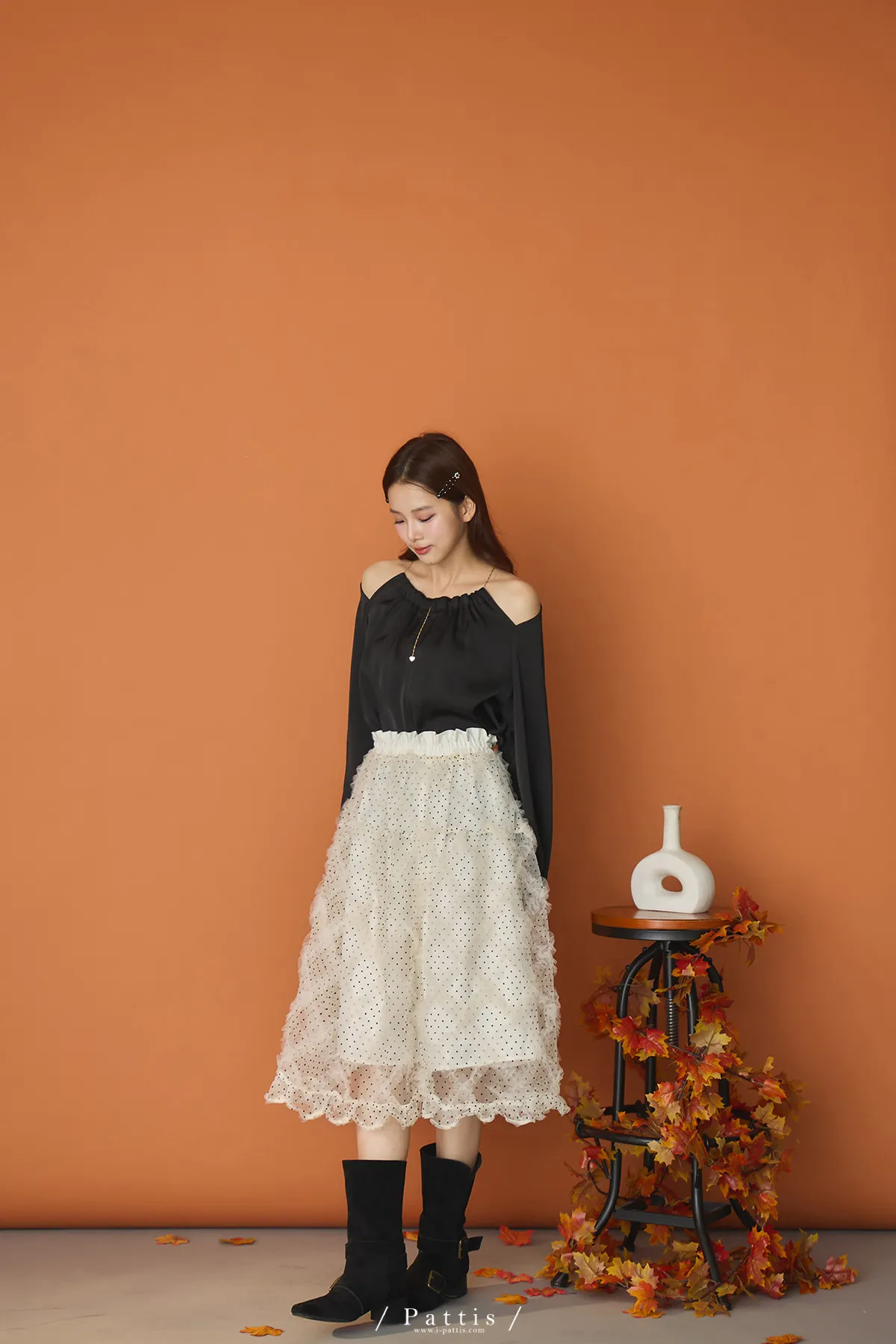 無從收斂的感性 | 附鍊條抽繩2way挖肩光澤上衣(黑)