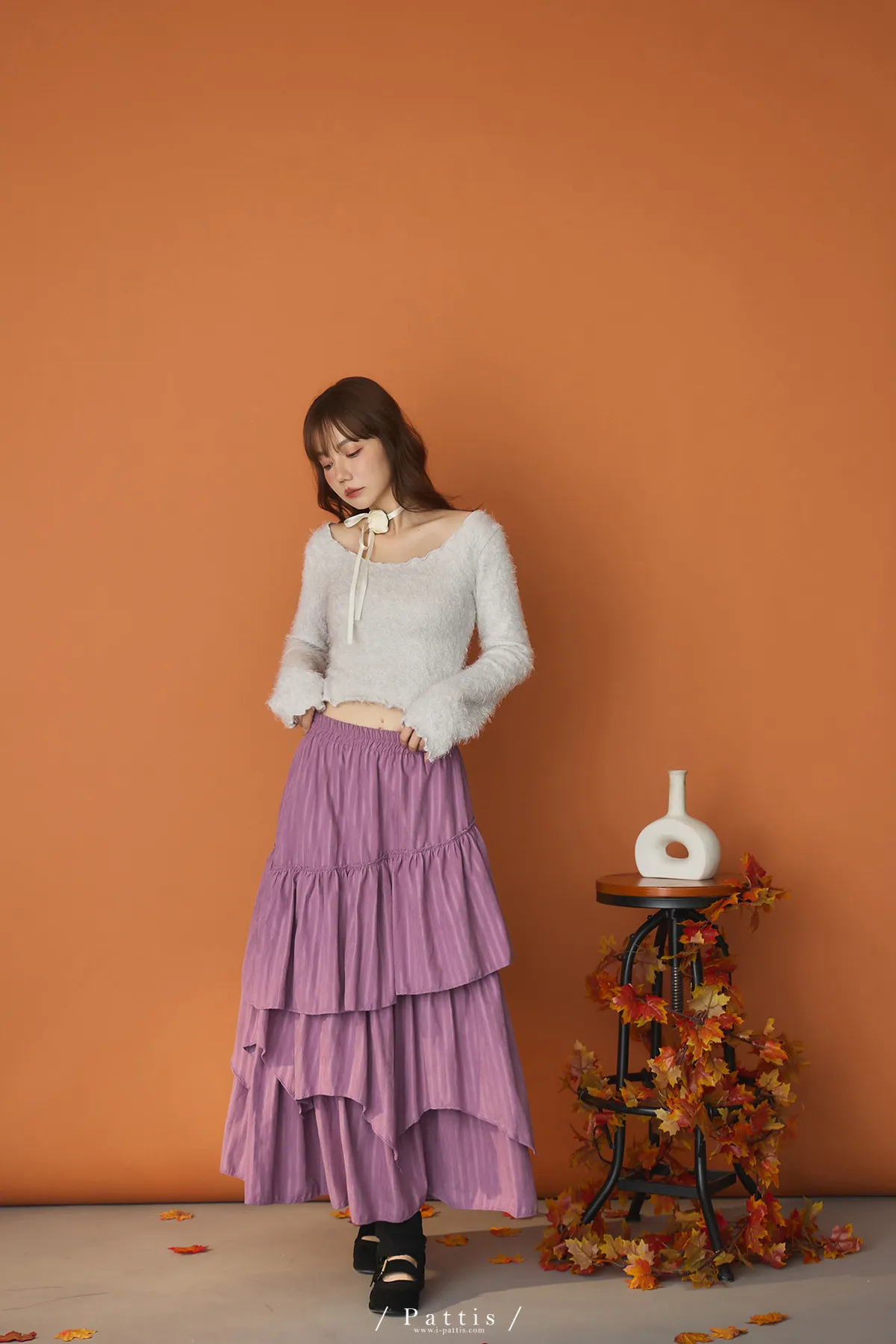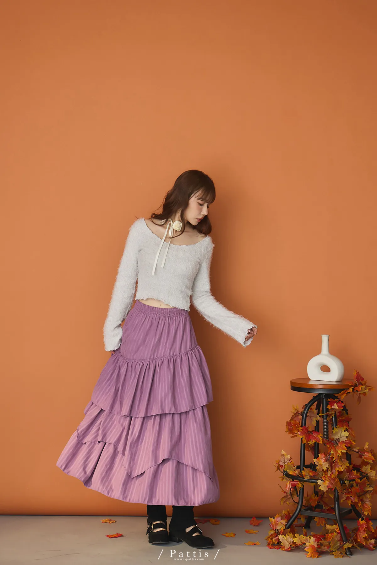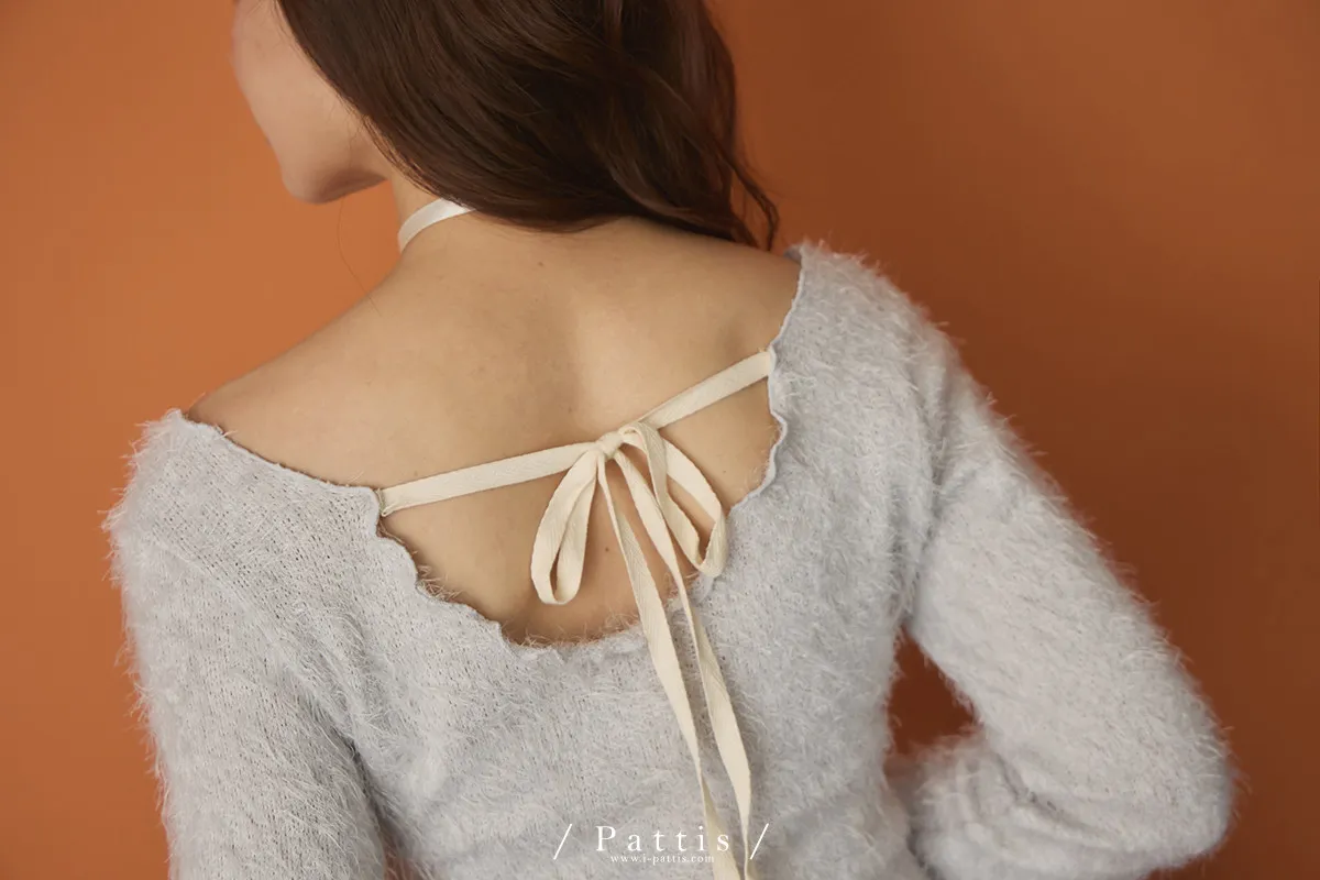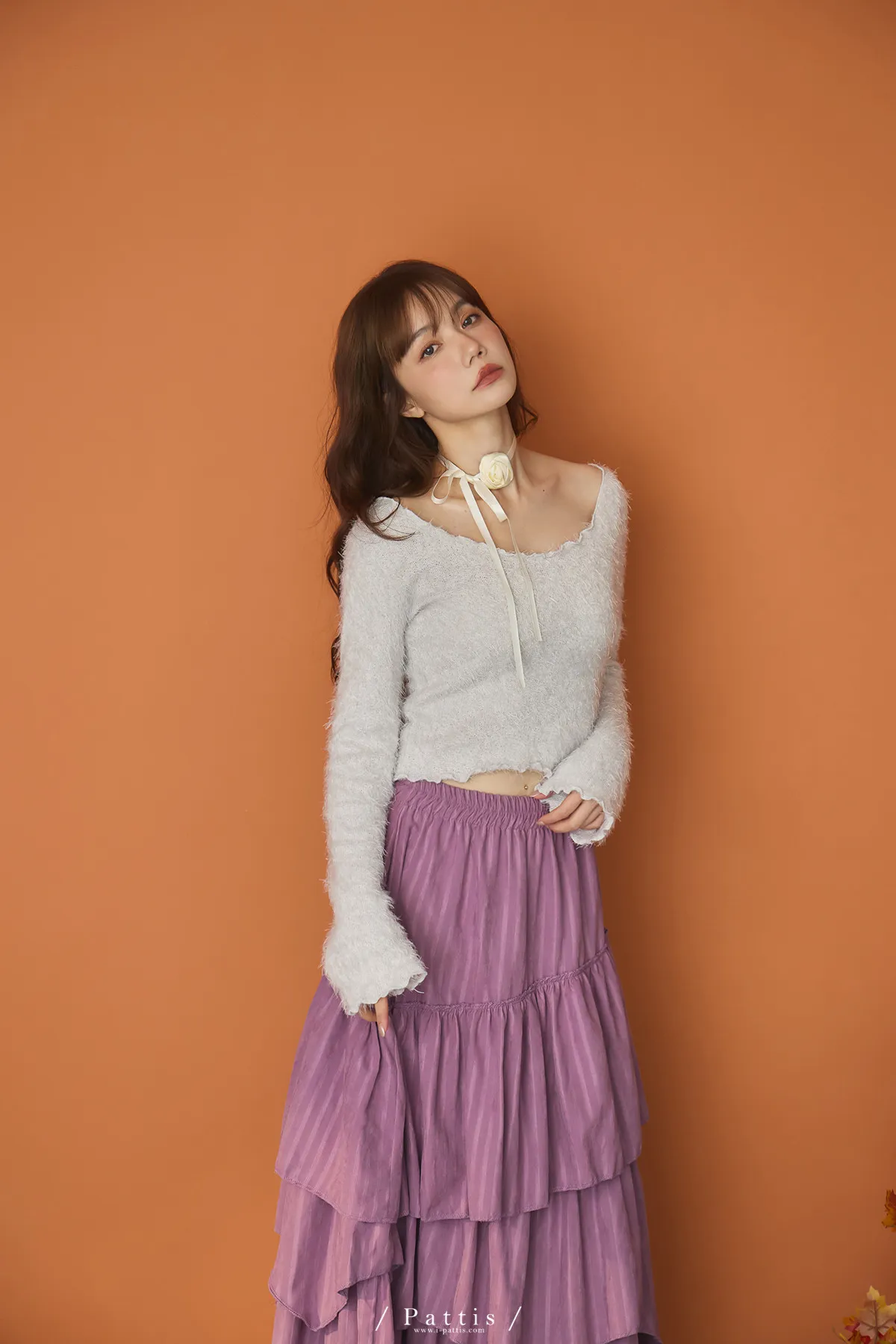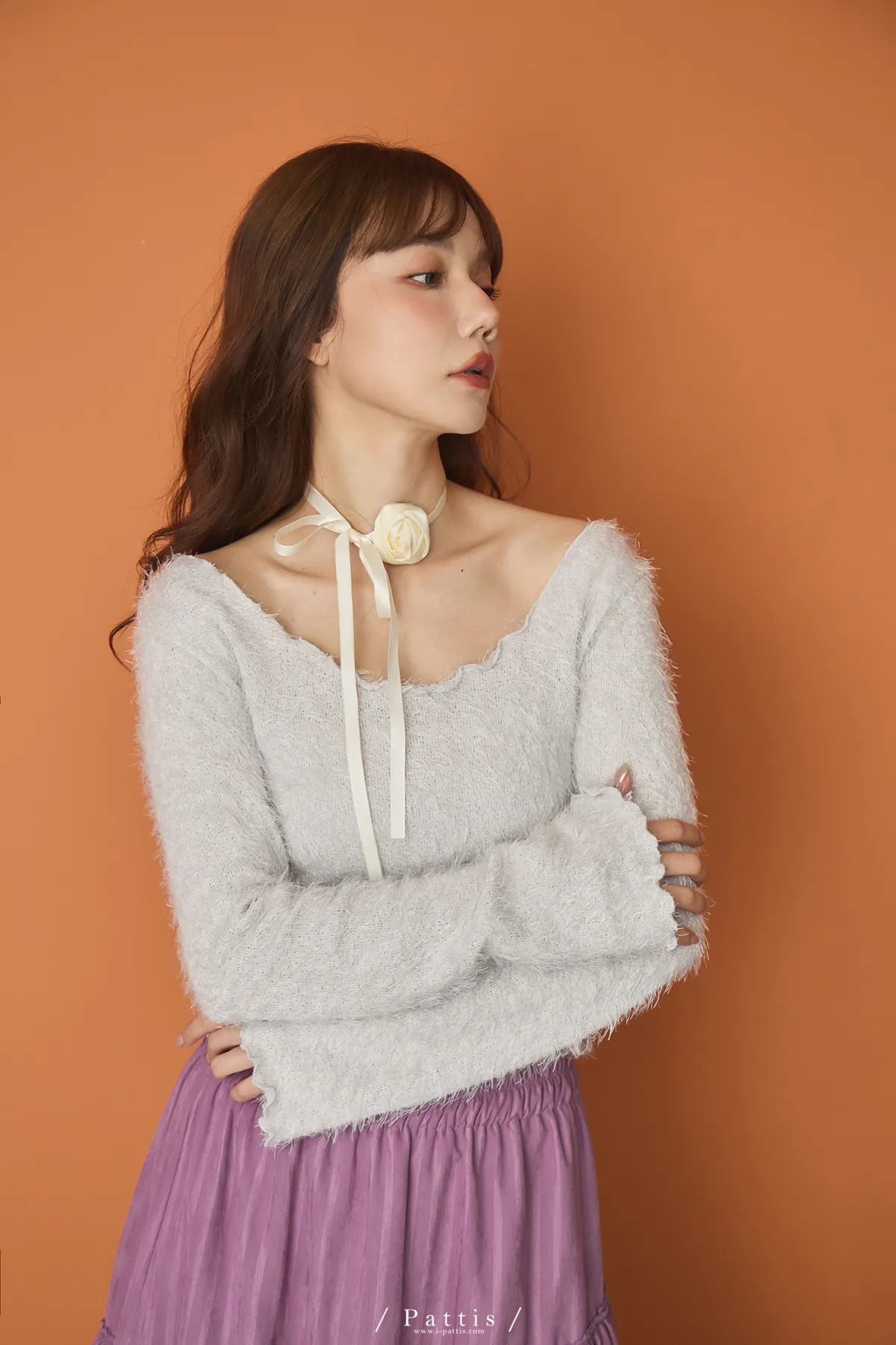 溫柔著煮每一杯茶 | 柔軟毛絨捲邊綁帶短版上衣(淺灰紫)