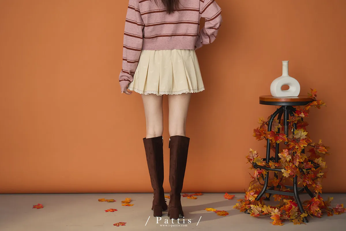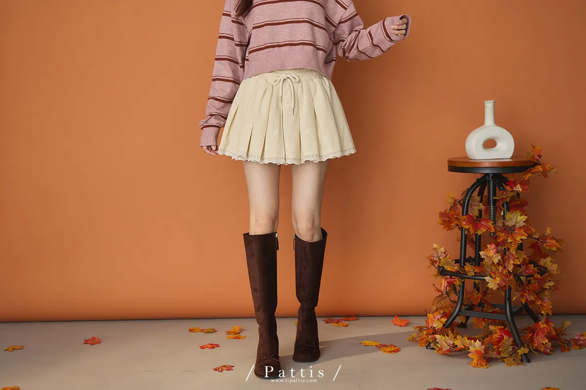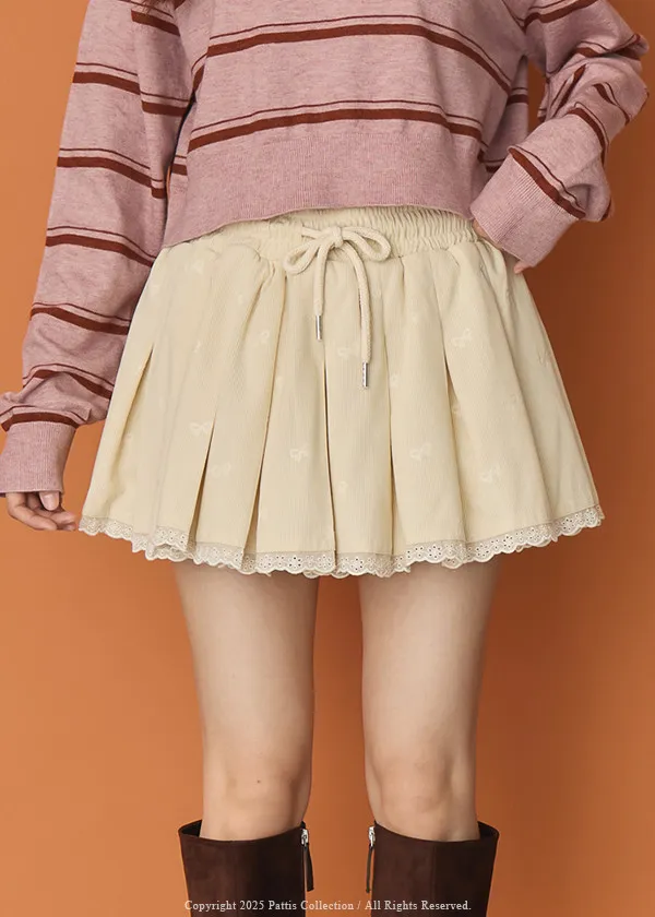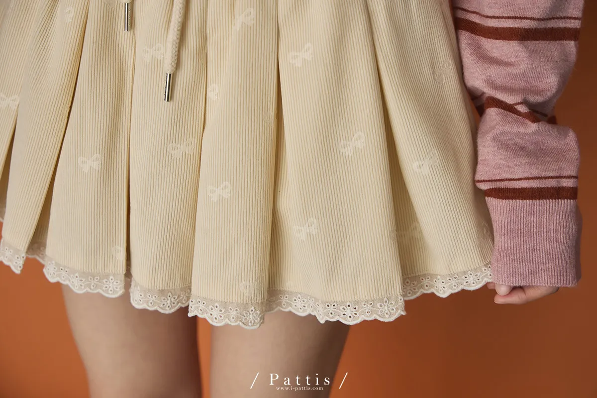 今天的美好正是初章 | 蝴蝶結壓紋抽繩荷葉內襯褲裙(米杏)