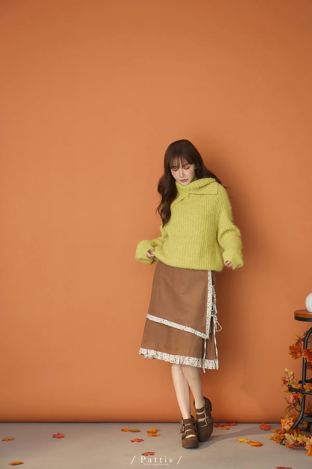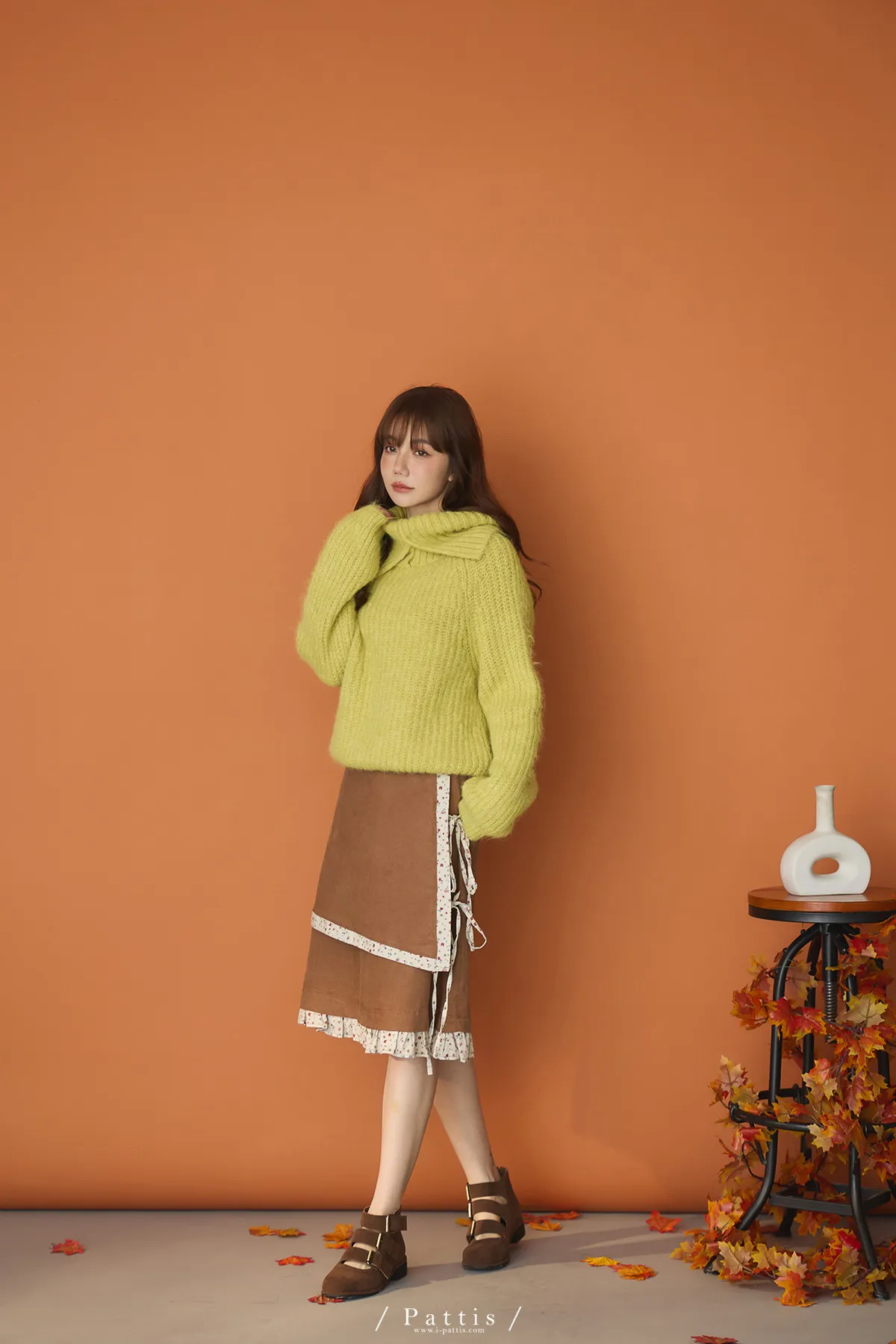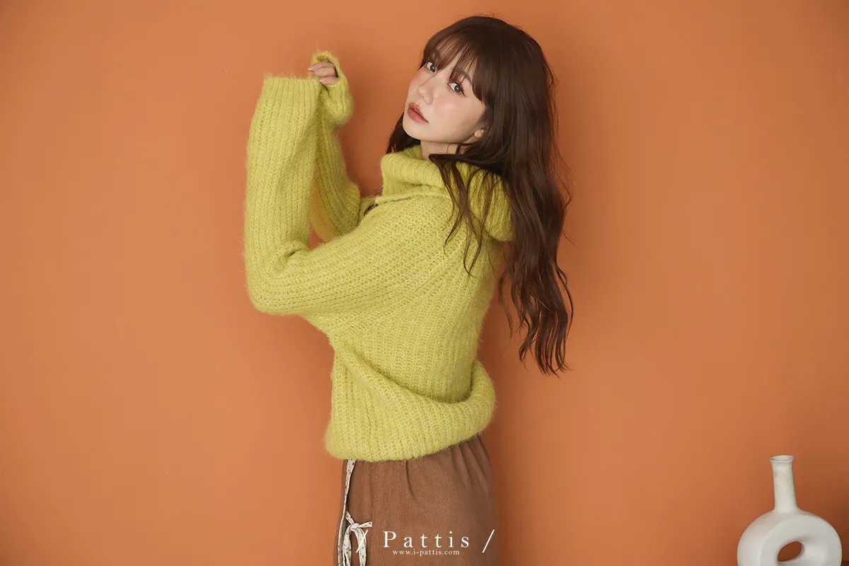 糖衣包裹 | 大翻領鈕扣不刺癢毛衣(檸檬黃綠)