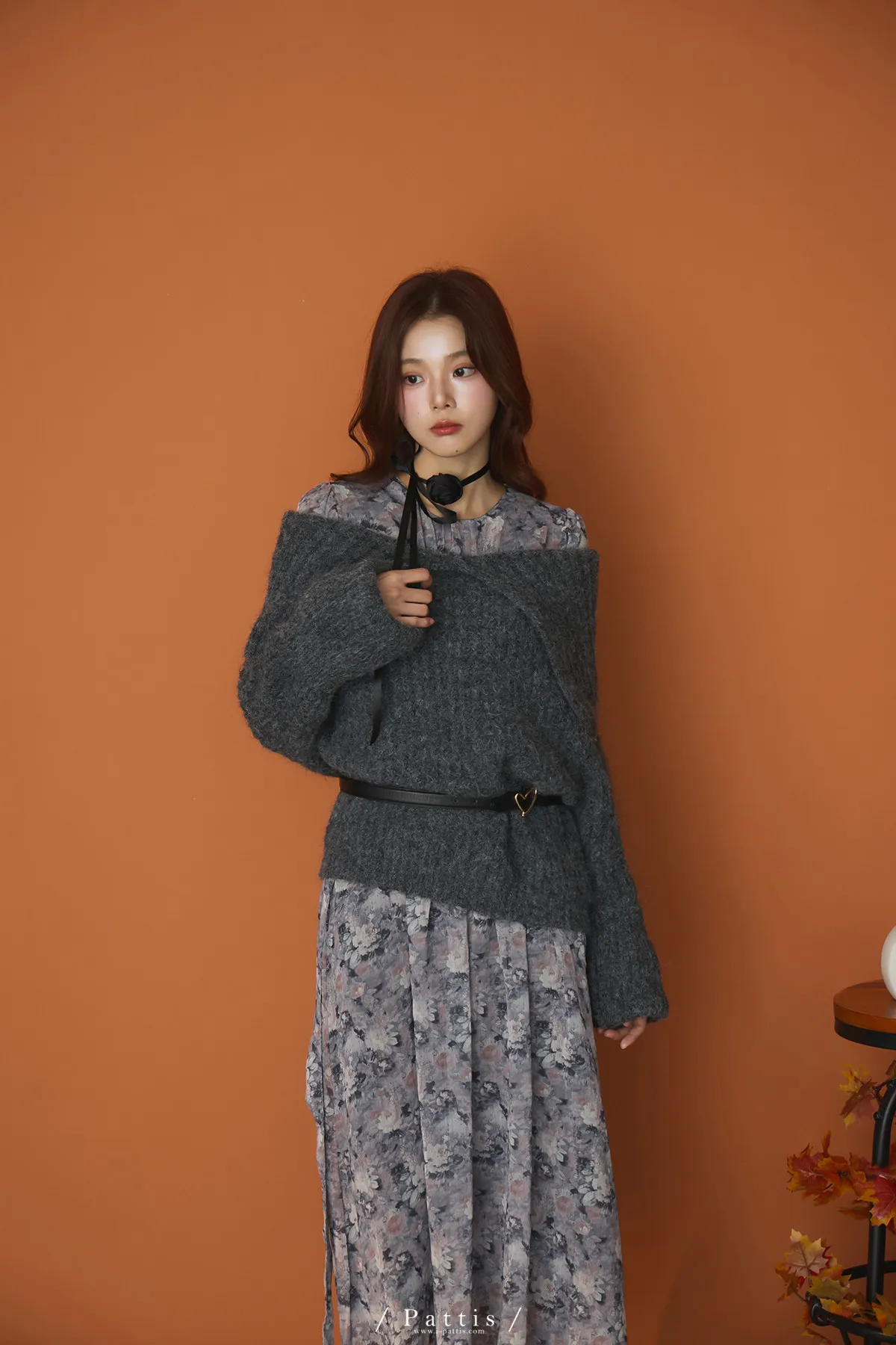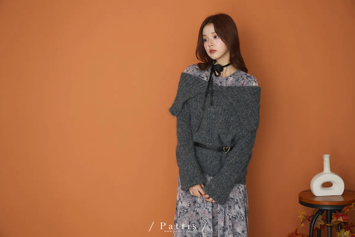 糖衣包裹 | 大翻領鈕扣不刺癢毛衣(麻花灰)