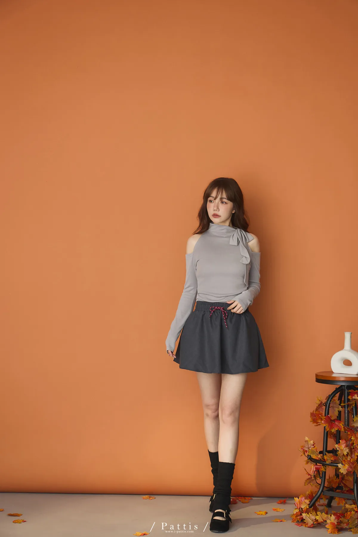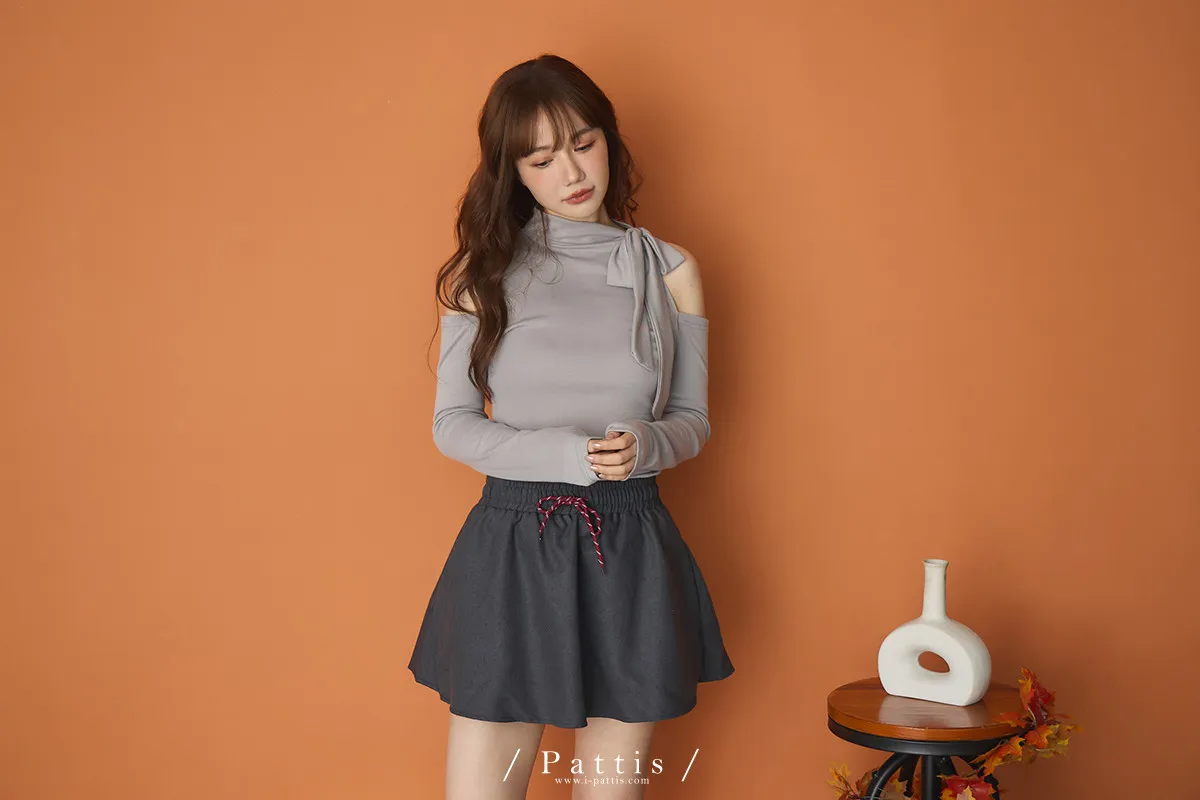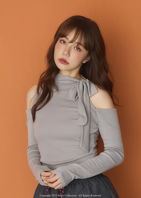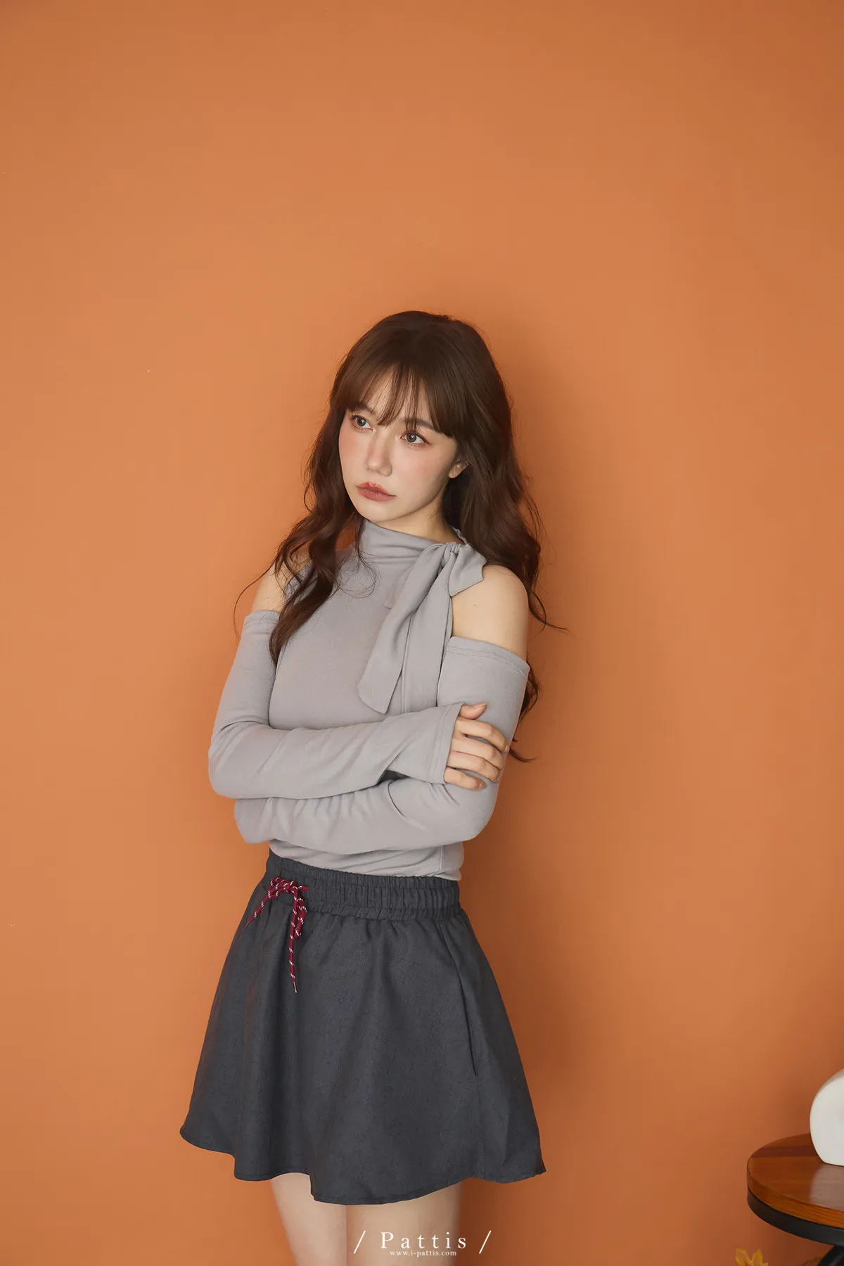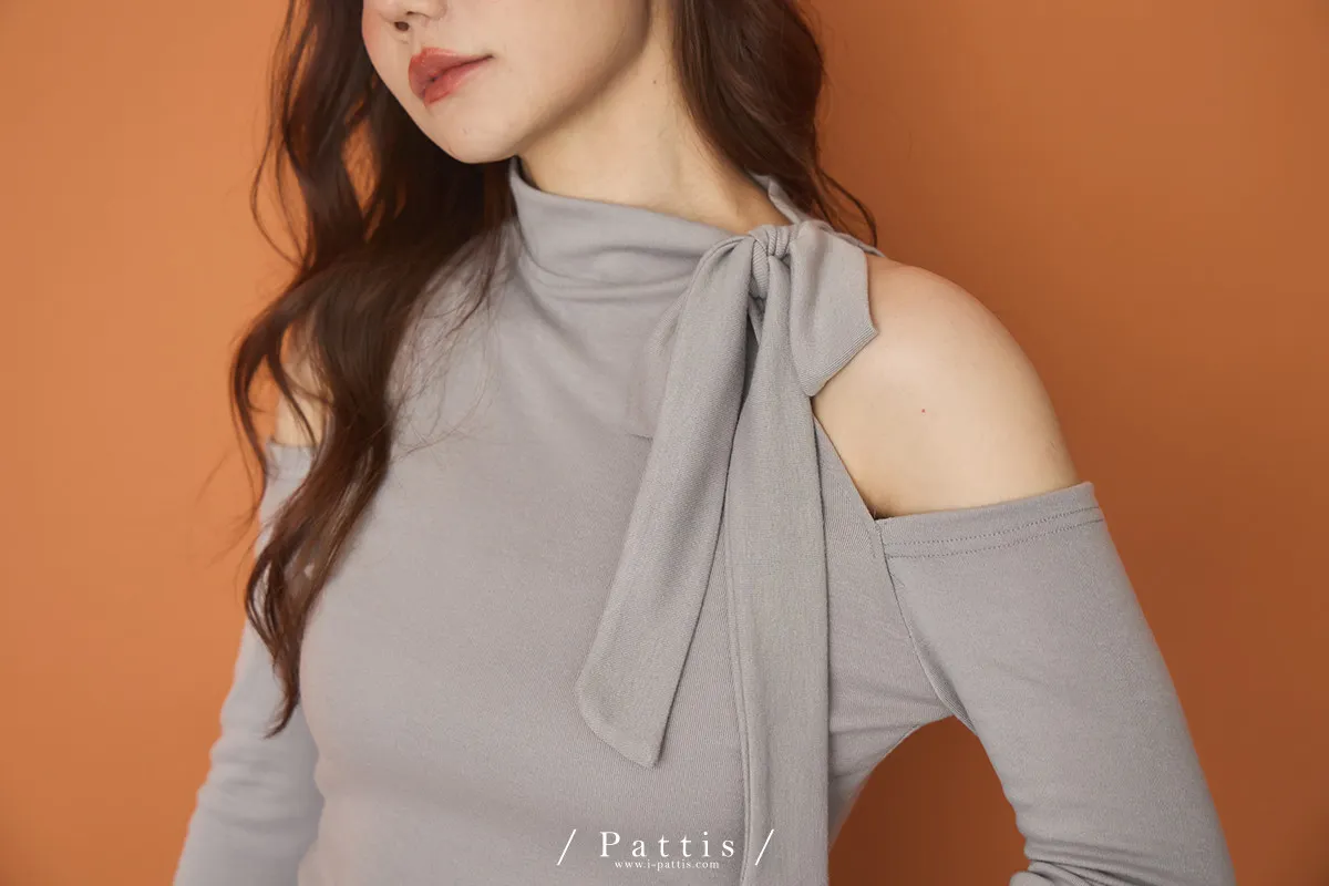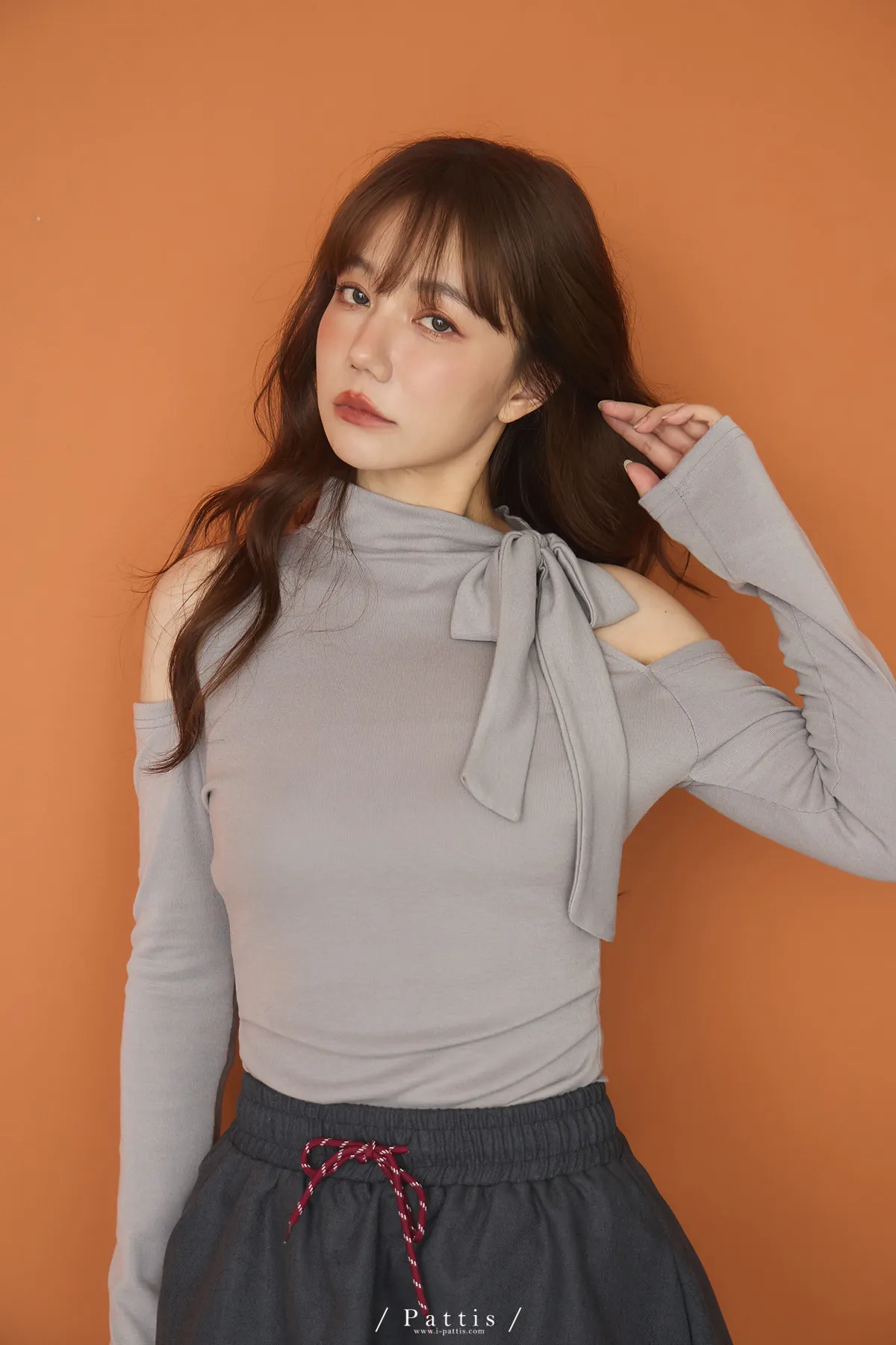 隱藏劇本 | 領口側綁結彈性挖肩上衣(灰紫)