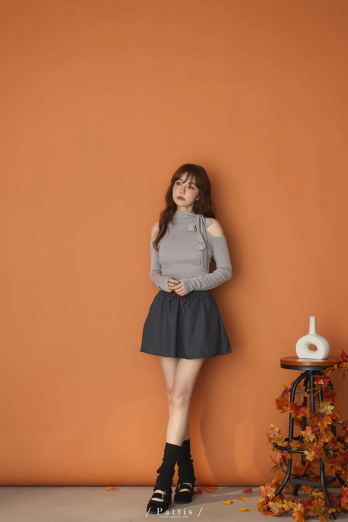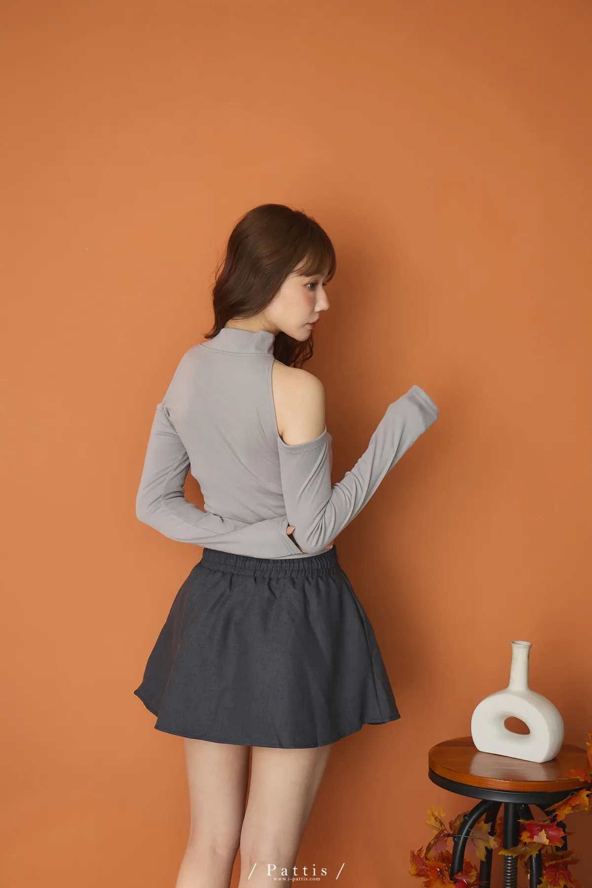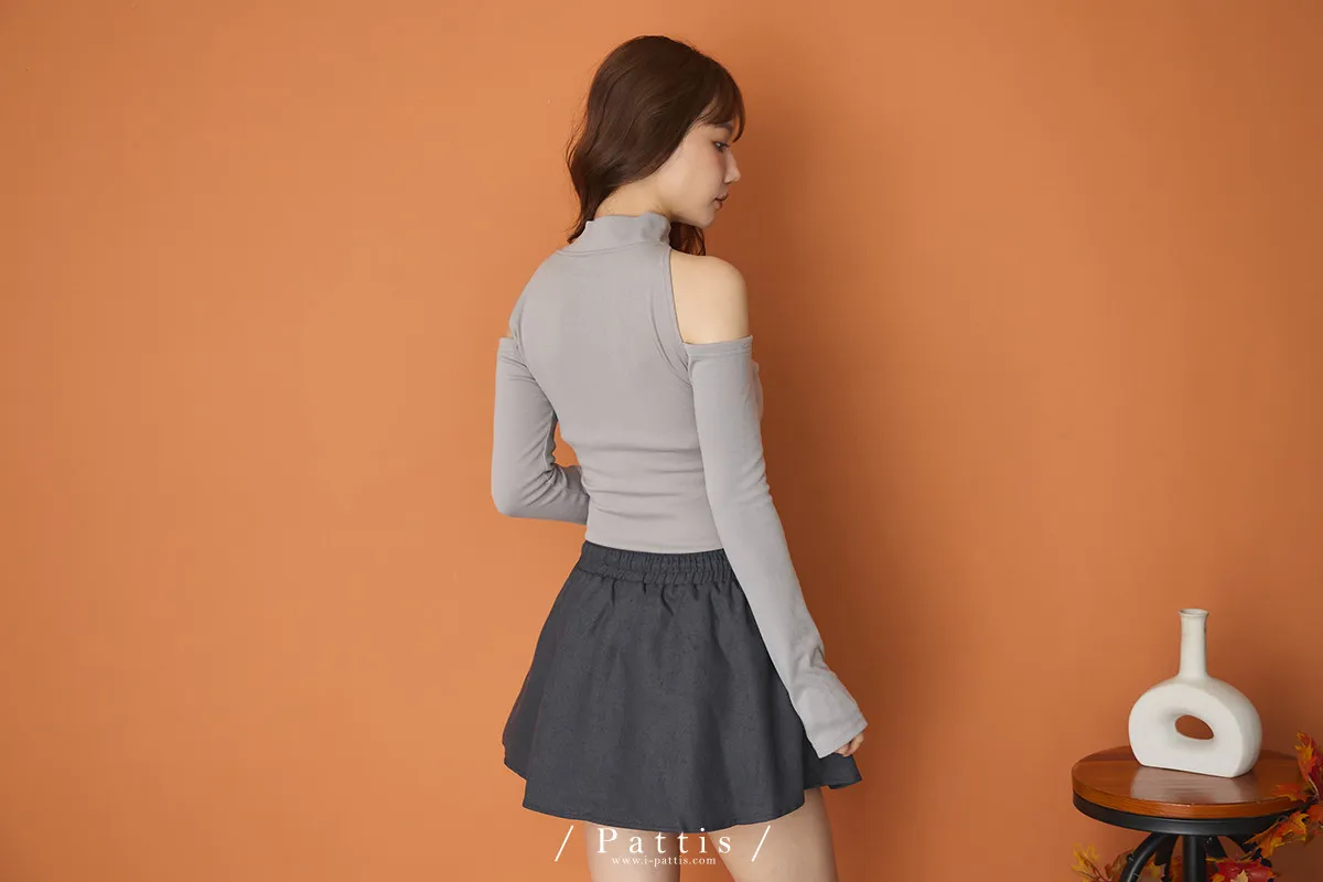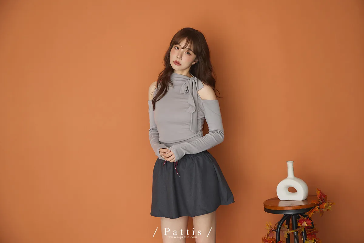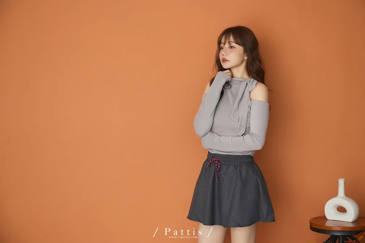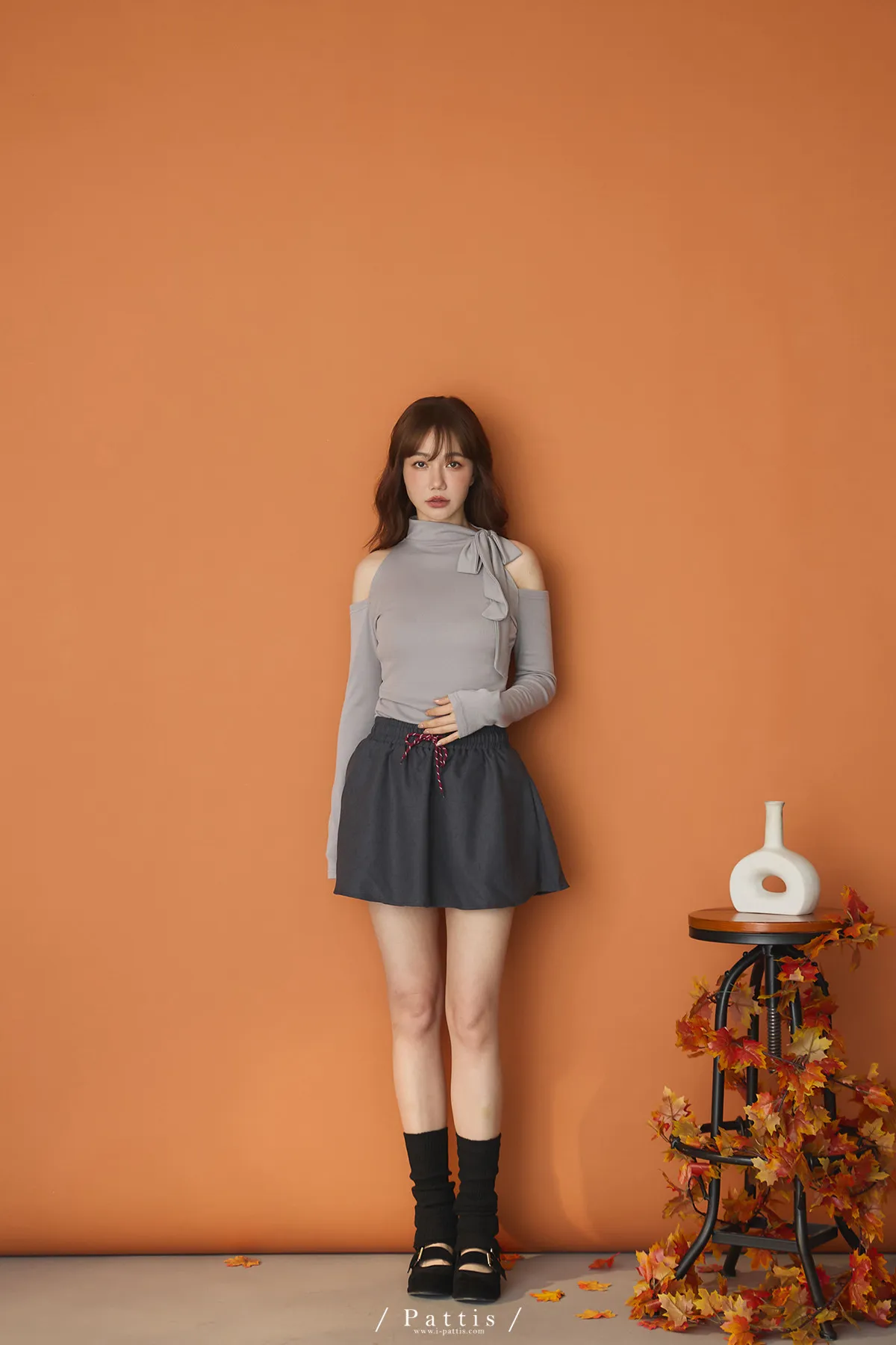 隱藏劇本 | 領口側綁結彈性挖肩上衣(灰紫)