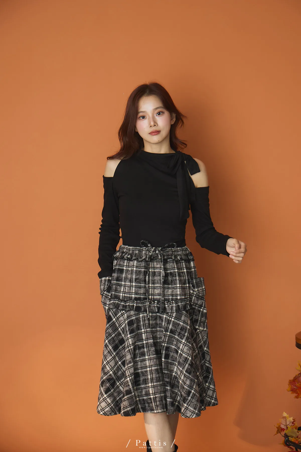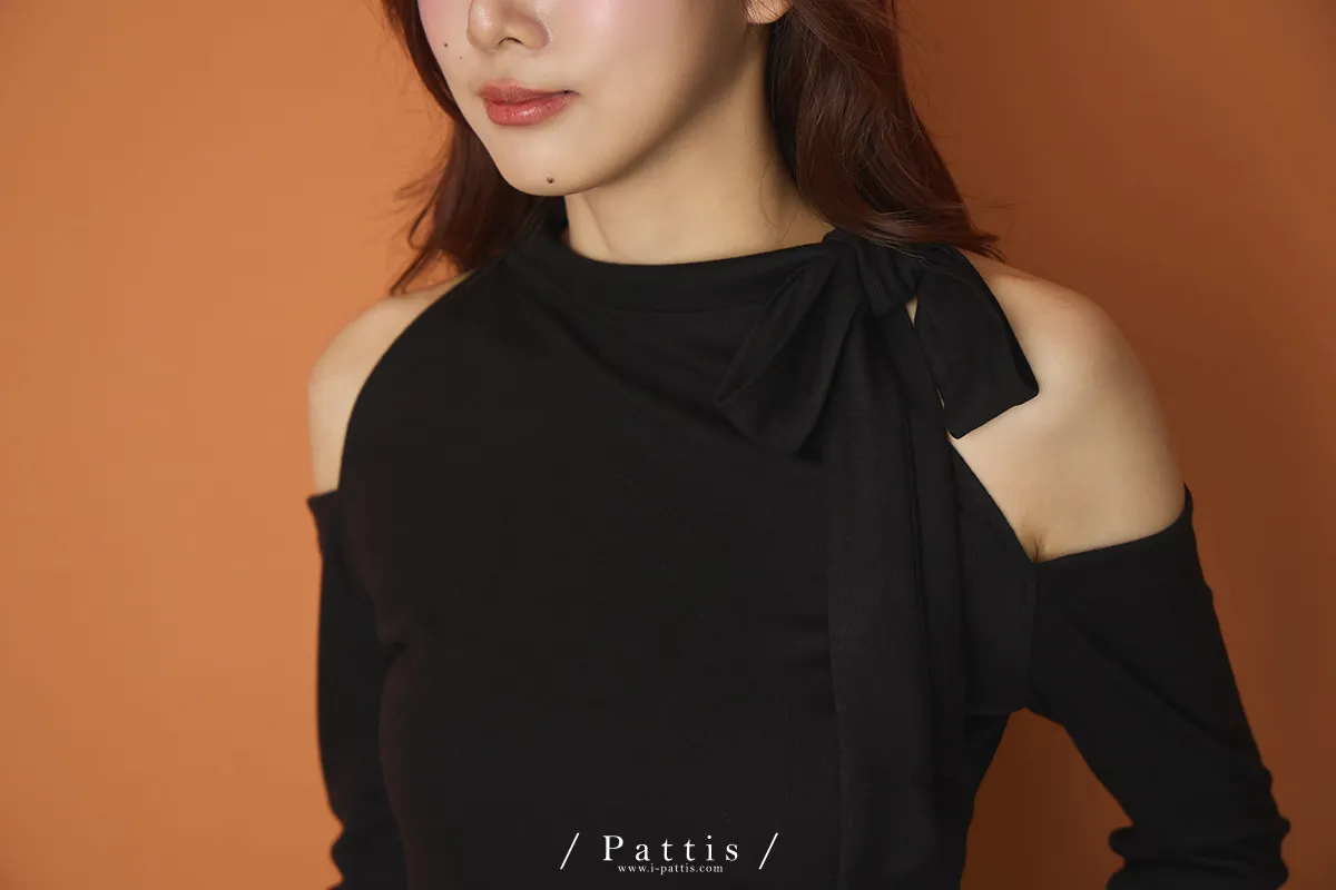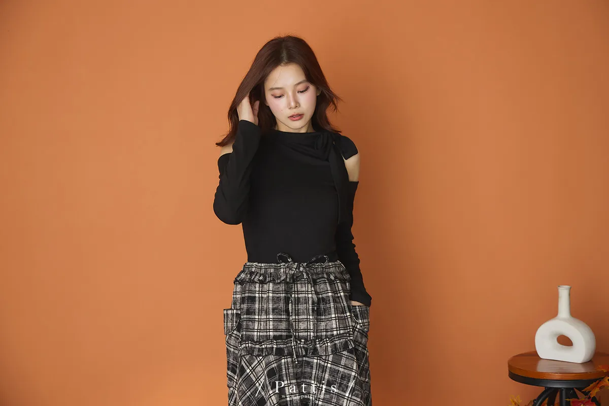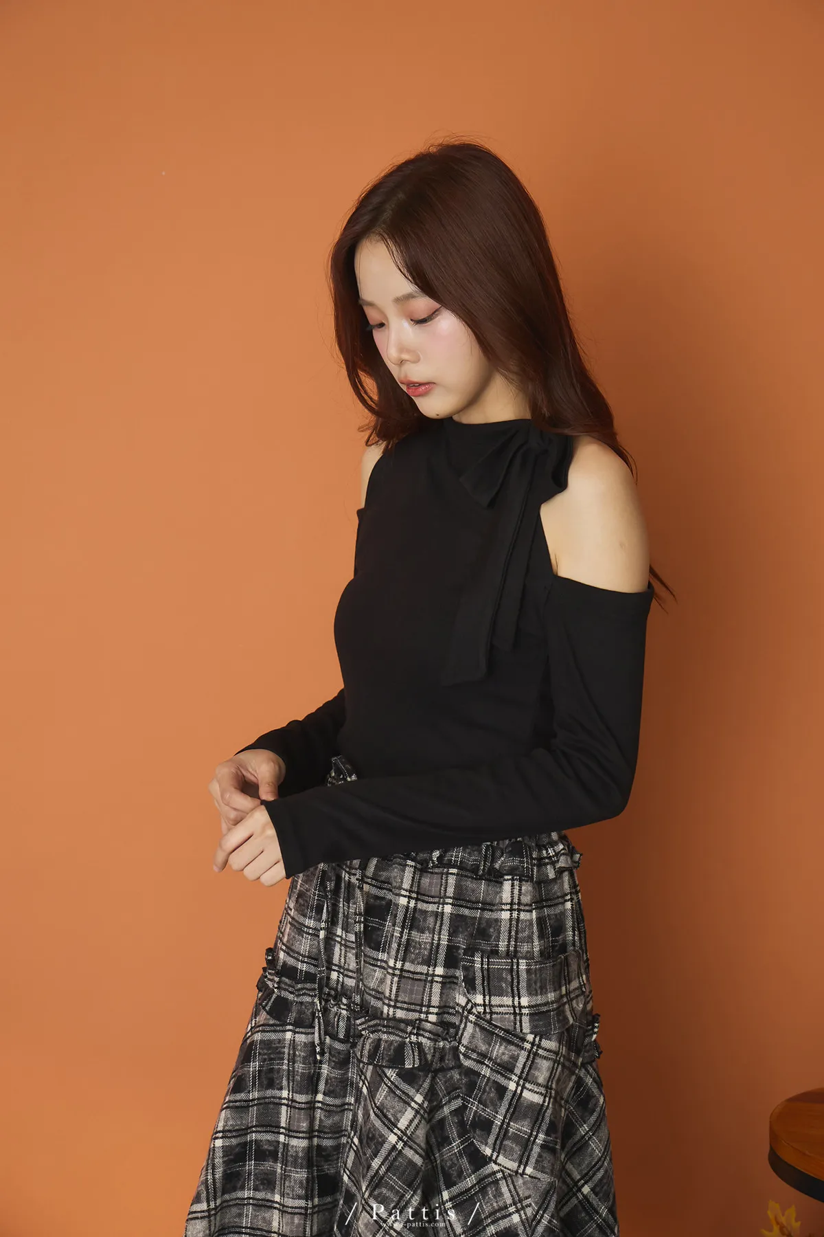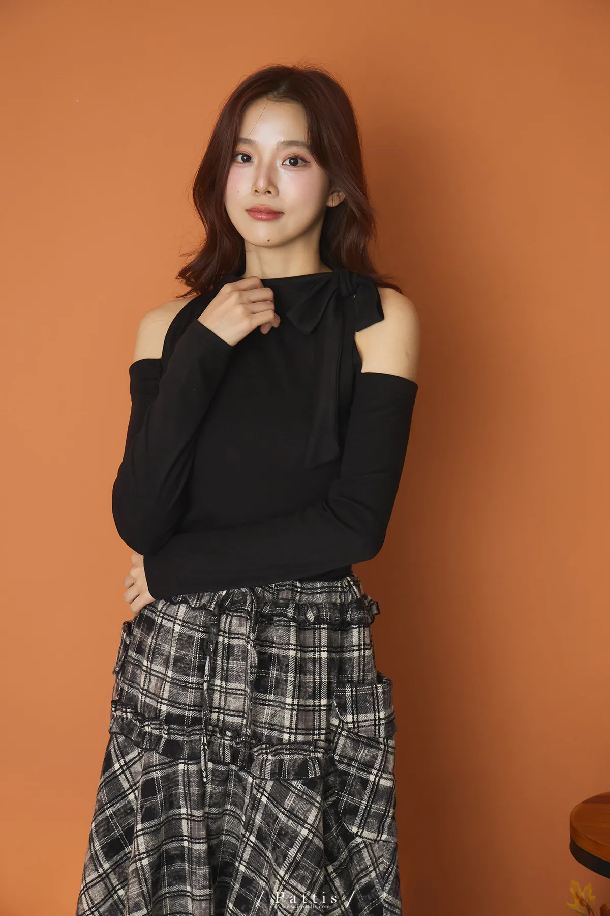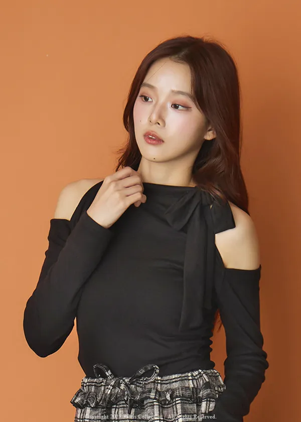 隱藏劇本 | 領口側綁結彈性挖肩上衣(黑)