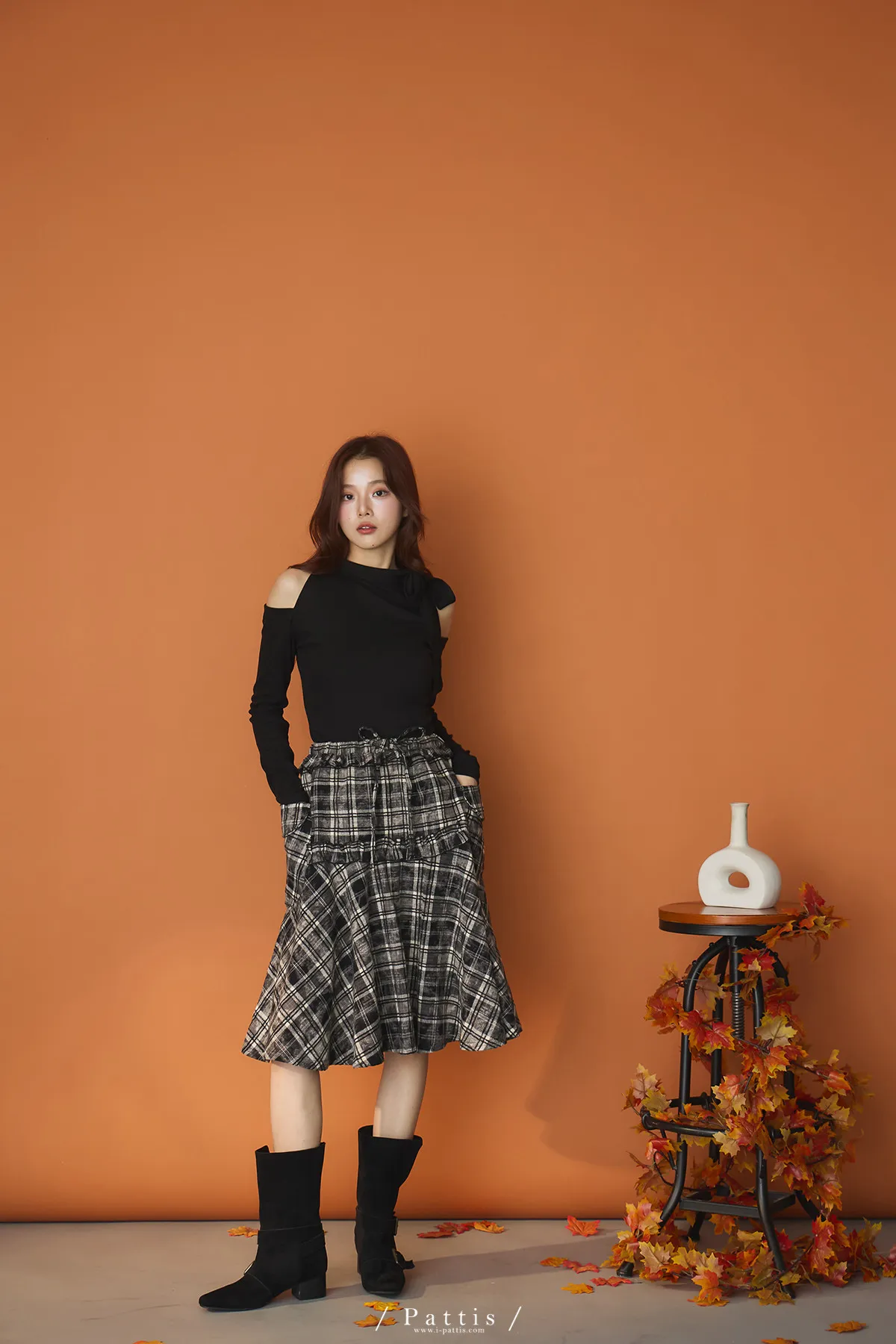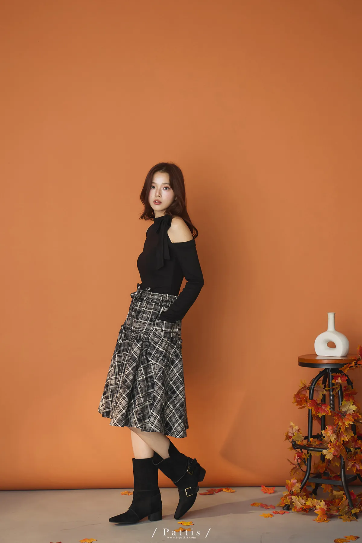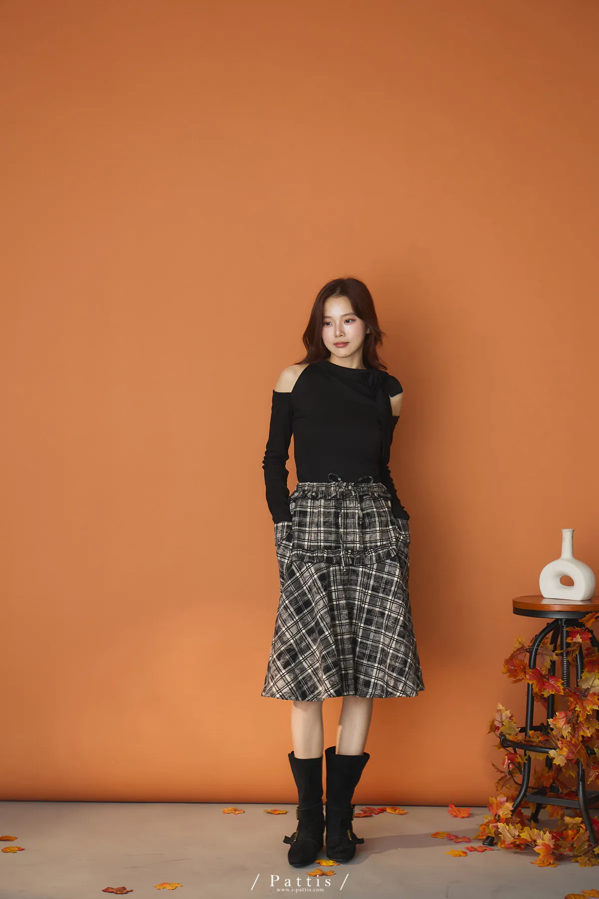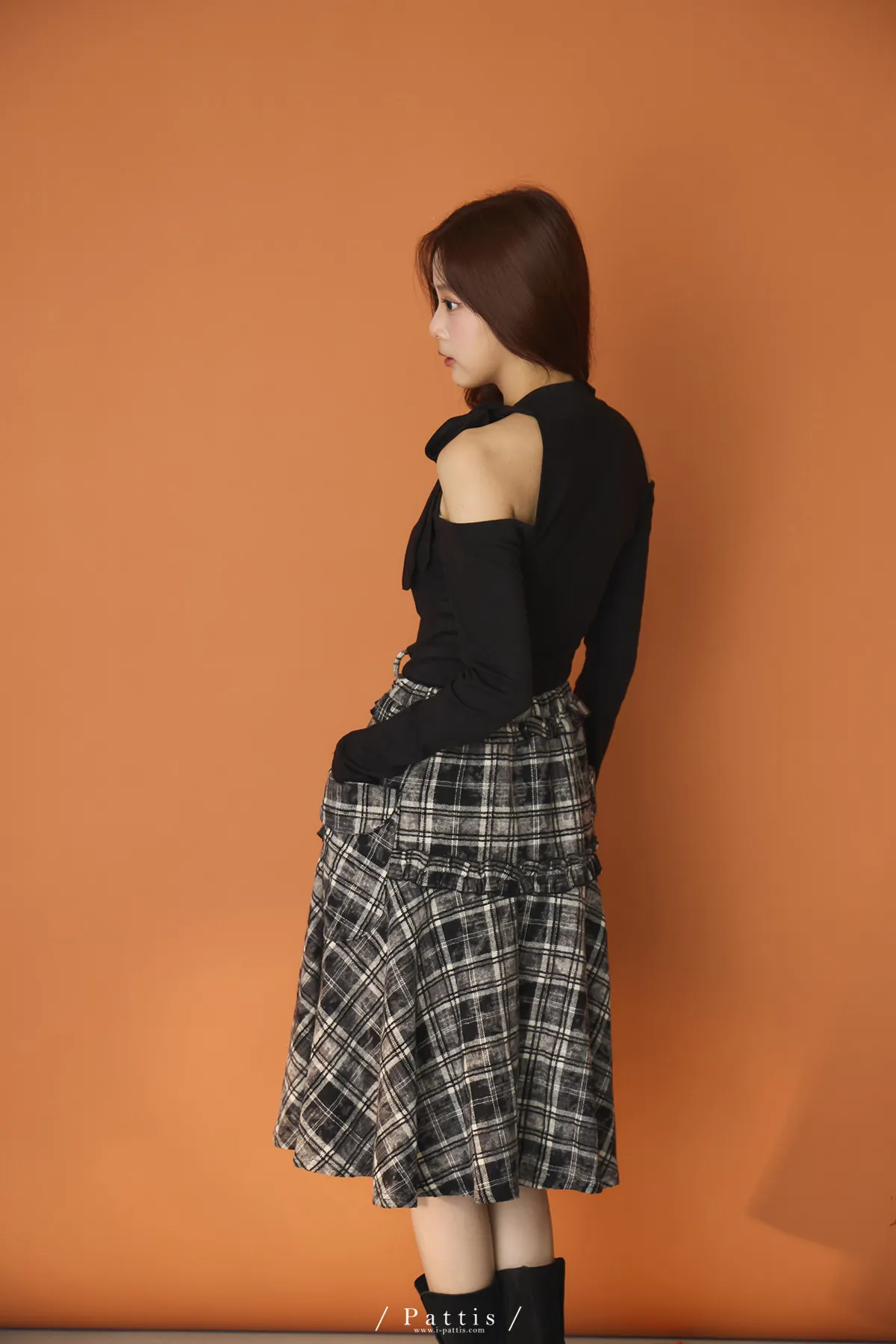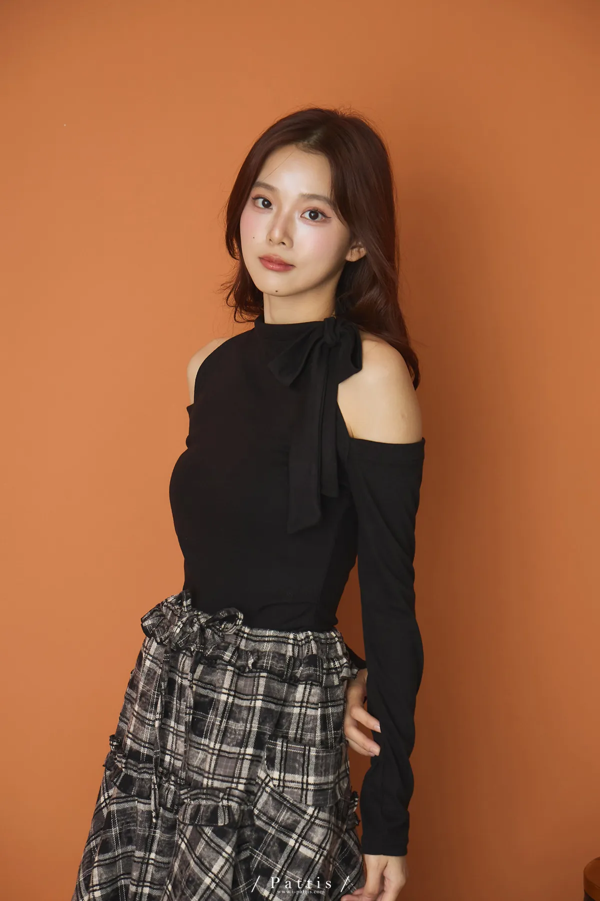 隱藏劇本 | 領口側綁結彈性挖肩上衣(黑)