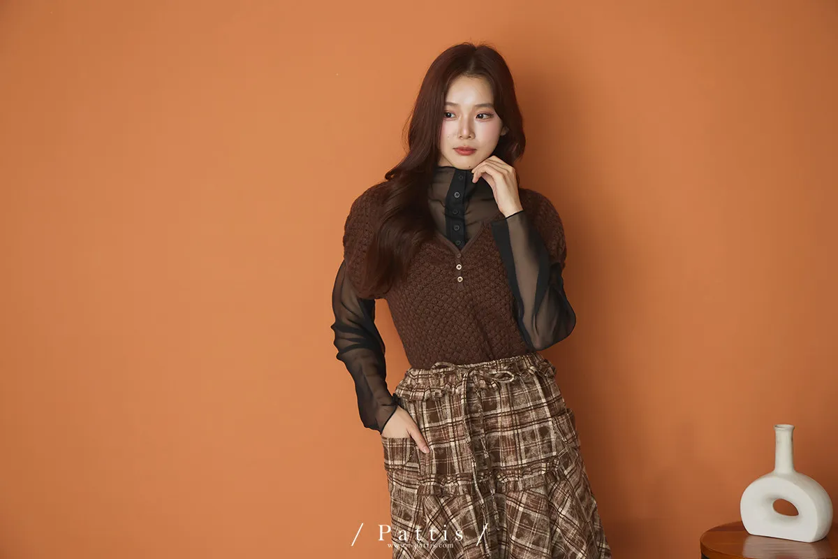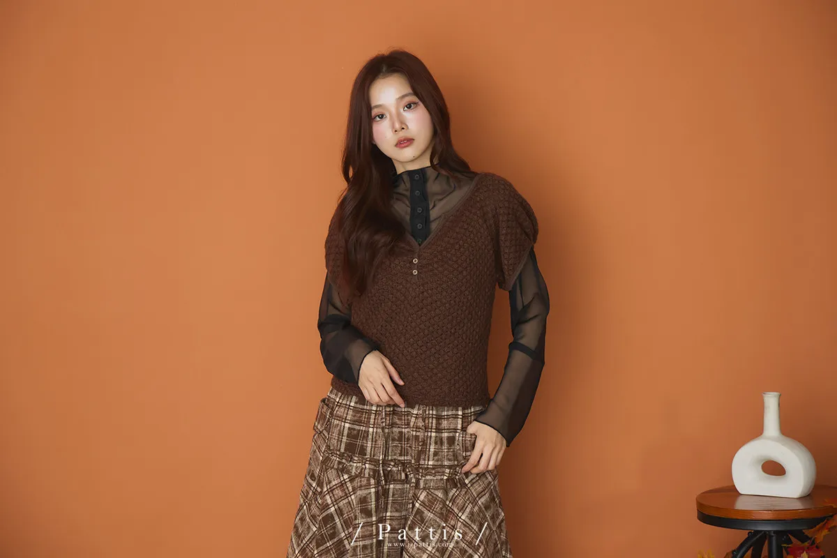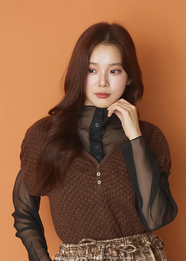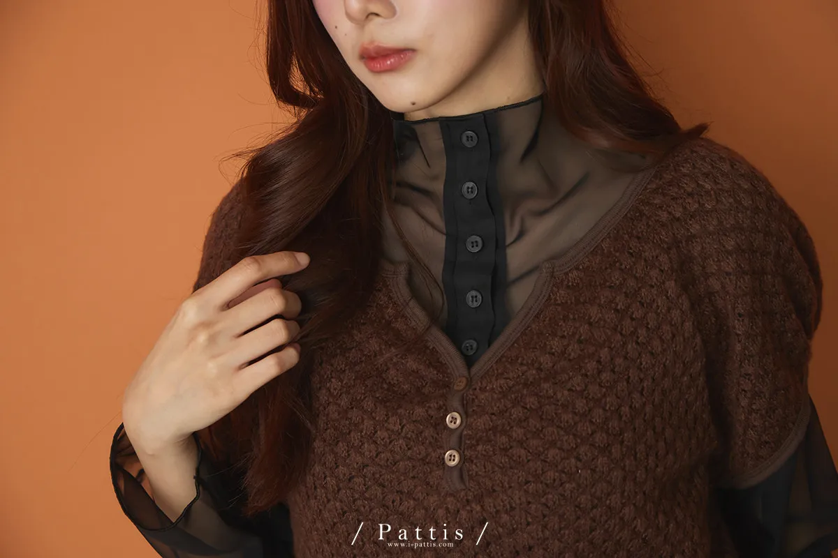 日常的一些呢喃 | 勾針小蓬袖V領上衣(咖啡)