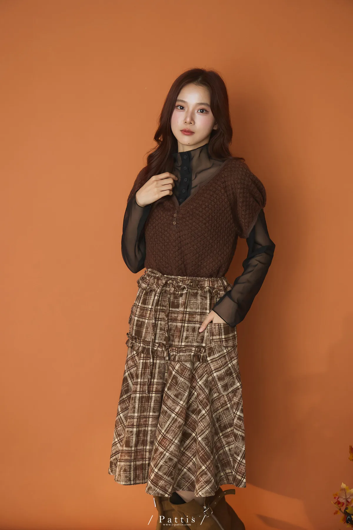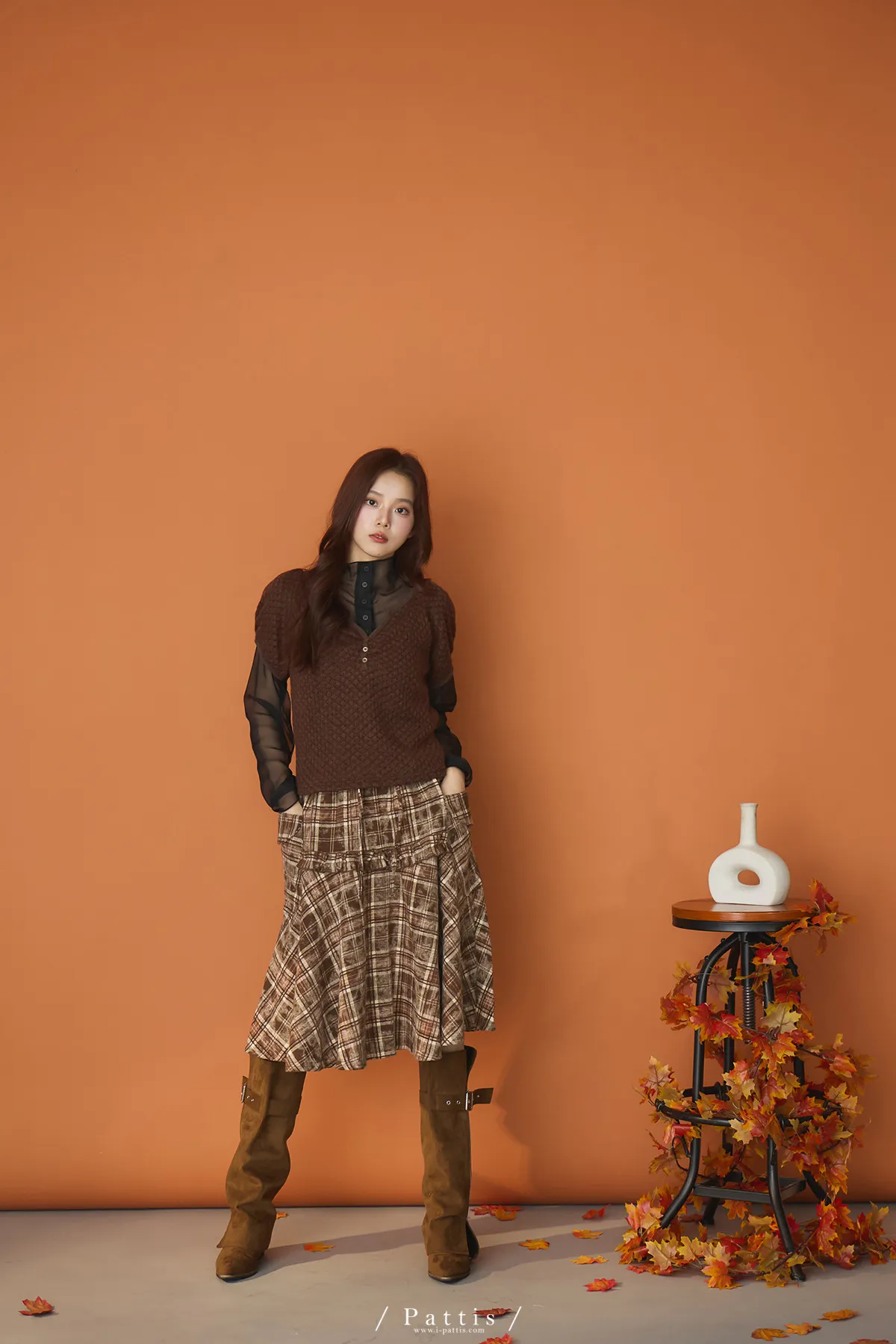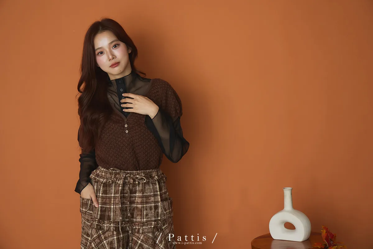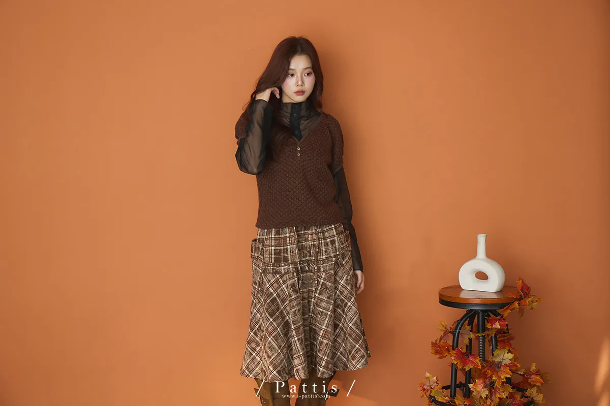日常的一些呢喃 | 勾針小蓬袖V領上衣(咖啡)