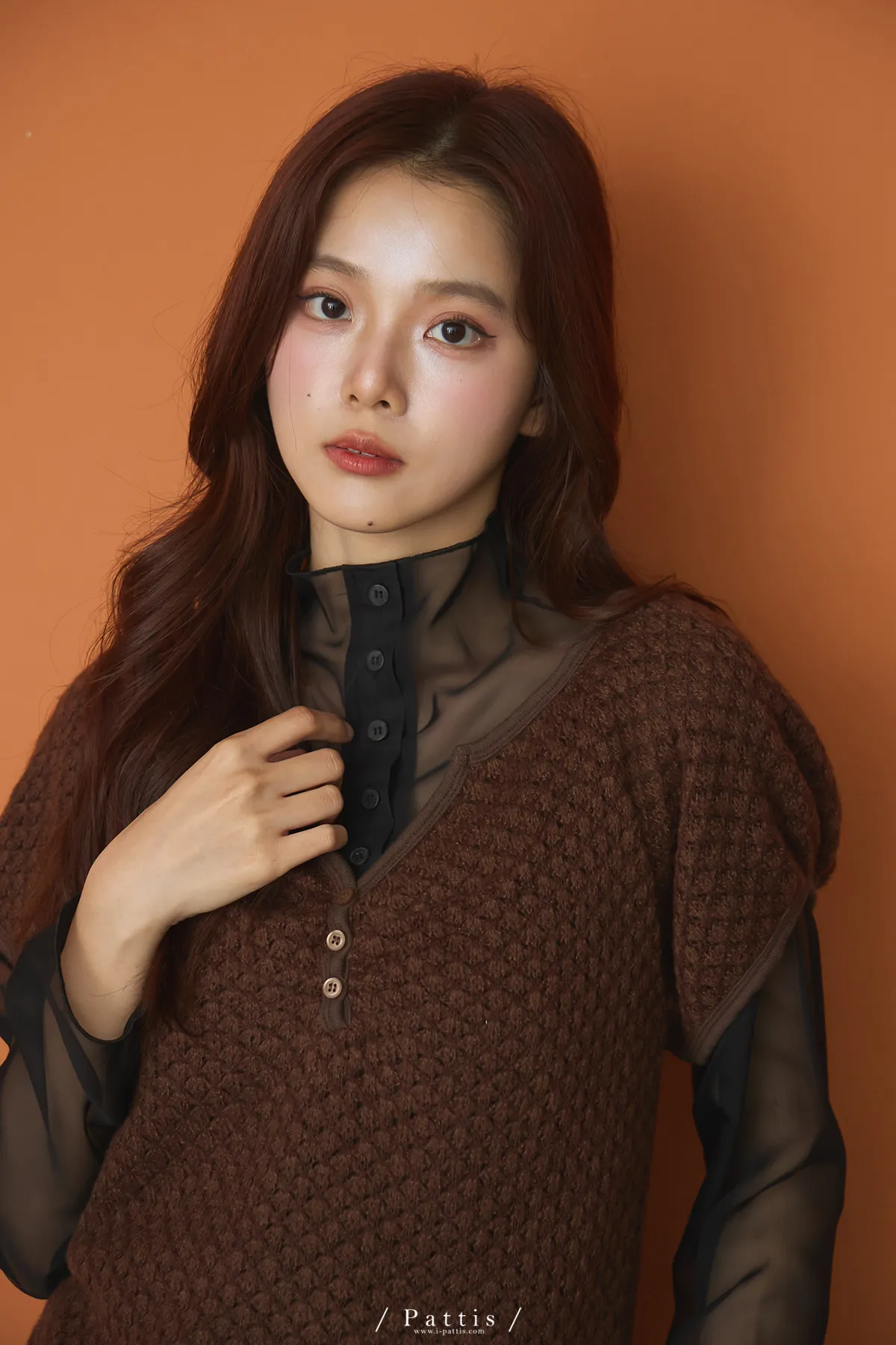 | F | 50 | - | 42 | 42 | 22(至領口) | 16 | 18 | 24 | 混毛針織 | X | 胸前鈕釦穿套 |
