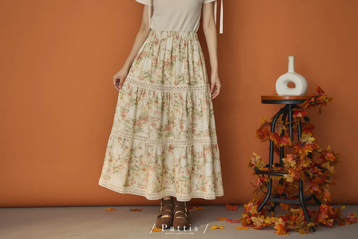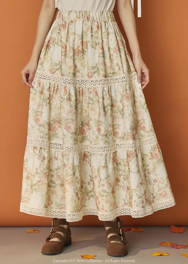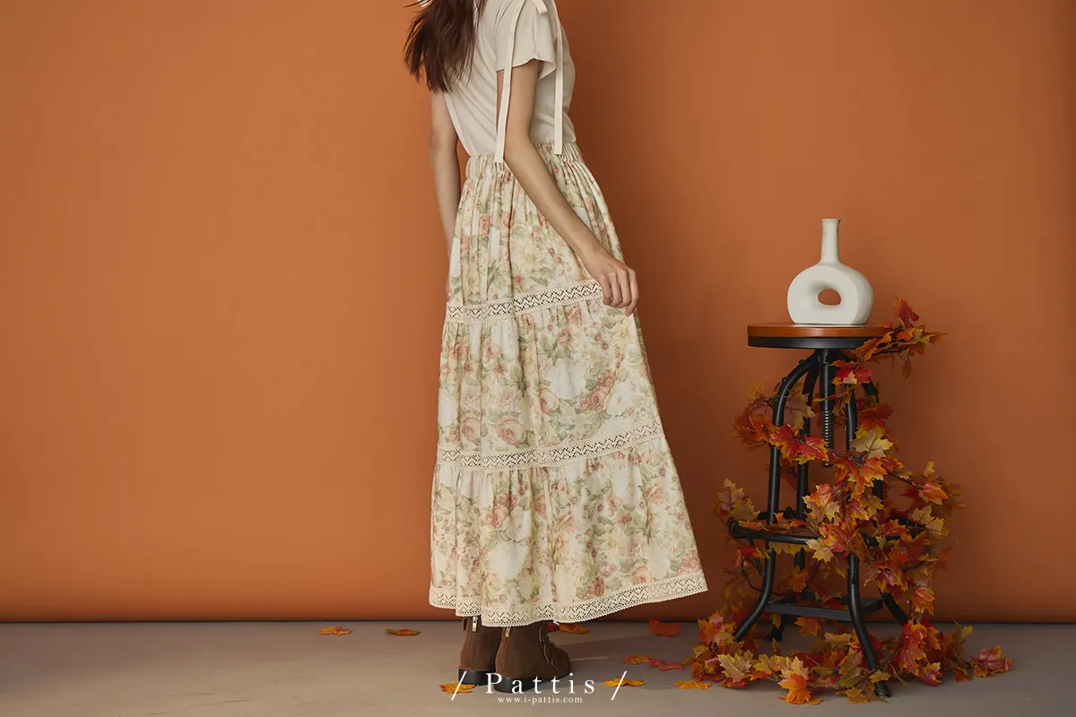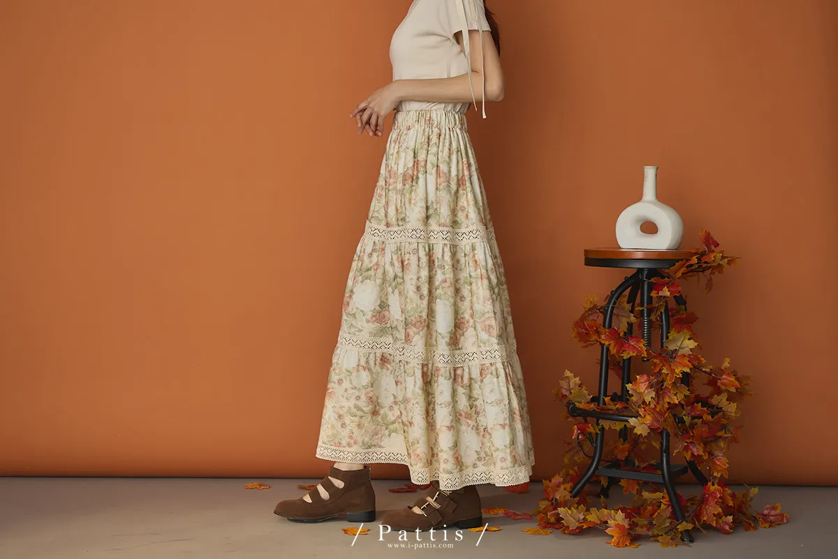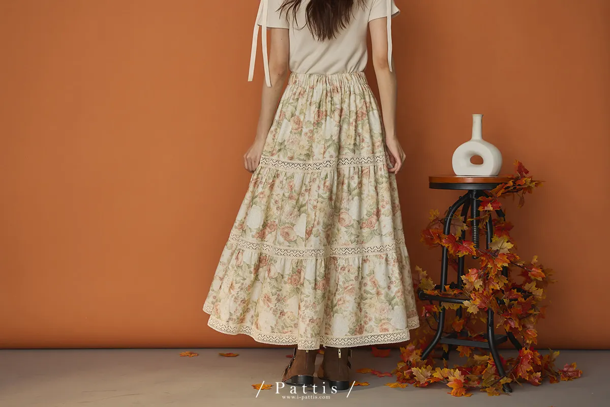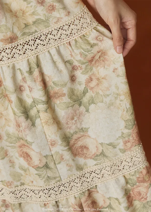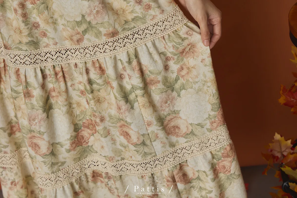 曠野玫瑰 | 古典法式玫瑰植絨蕾絲拼接長裙(單一色)