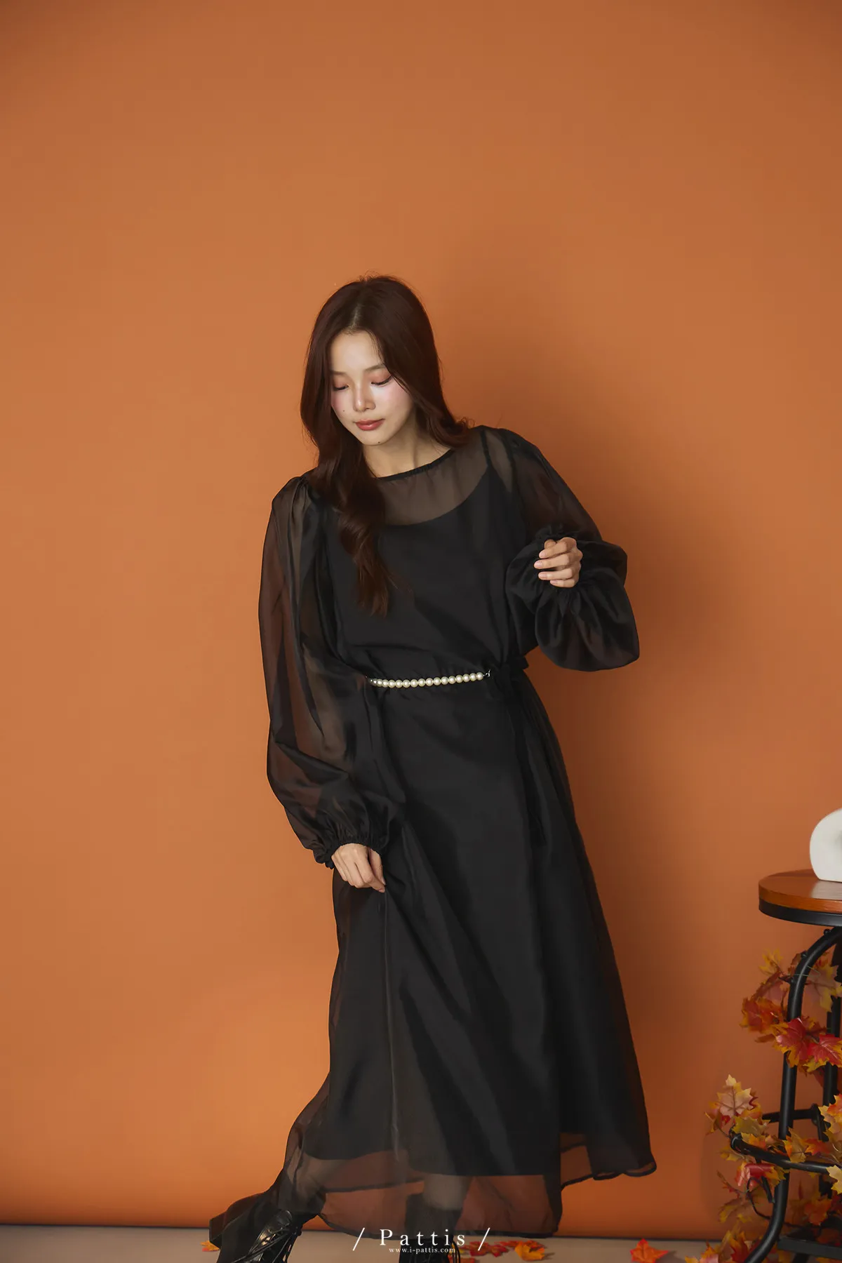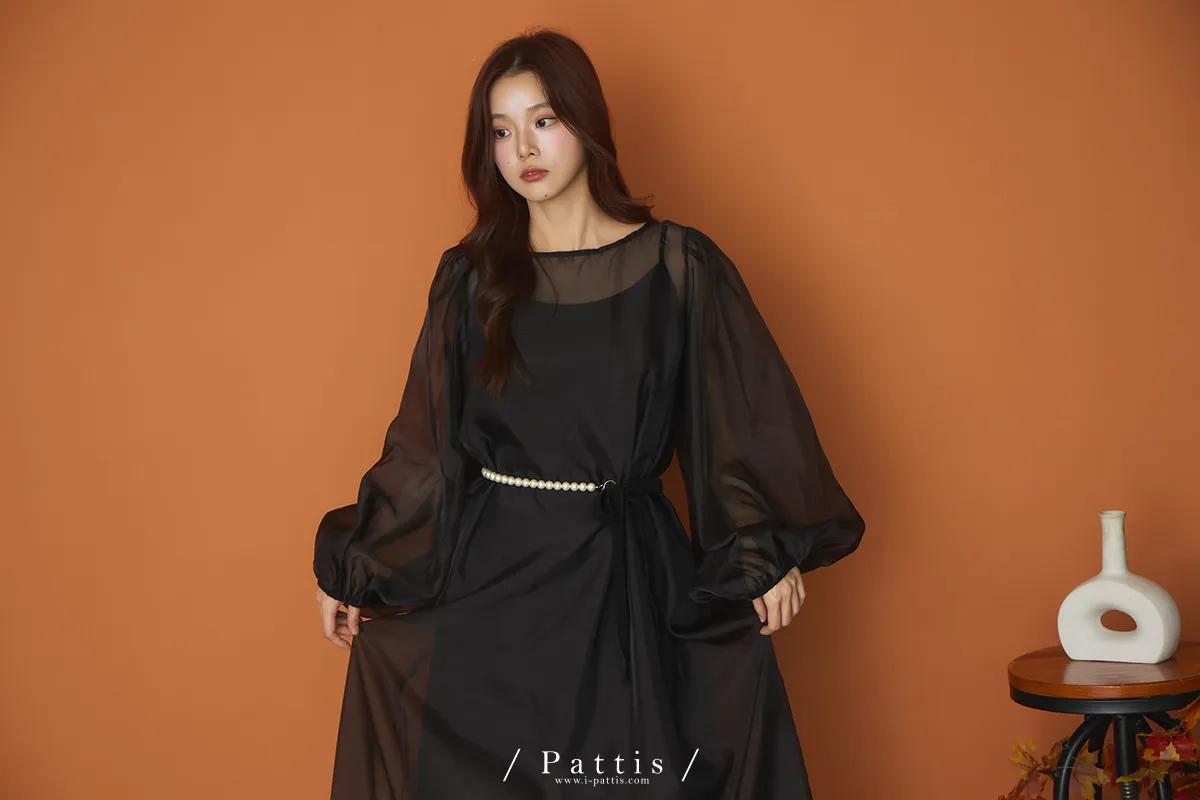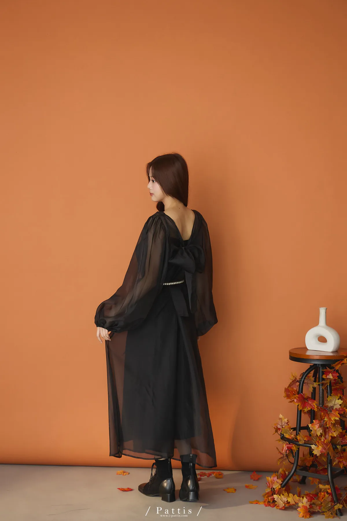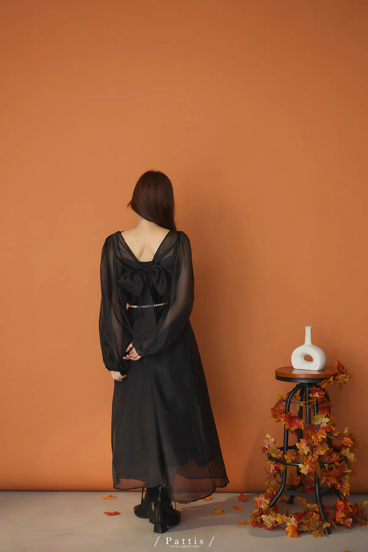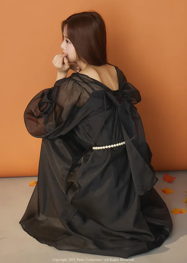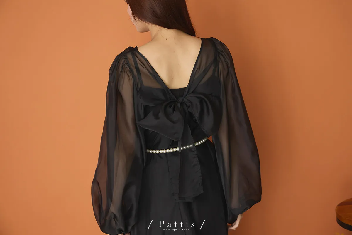 名為慵懶的週末日 | 正反兩穿蝴蝶結蓬袖罩衫+吊帶襯裙set(黑)