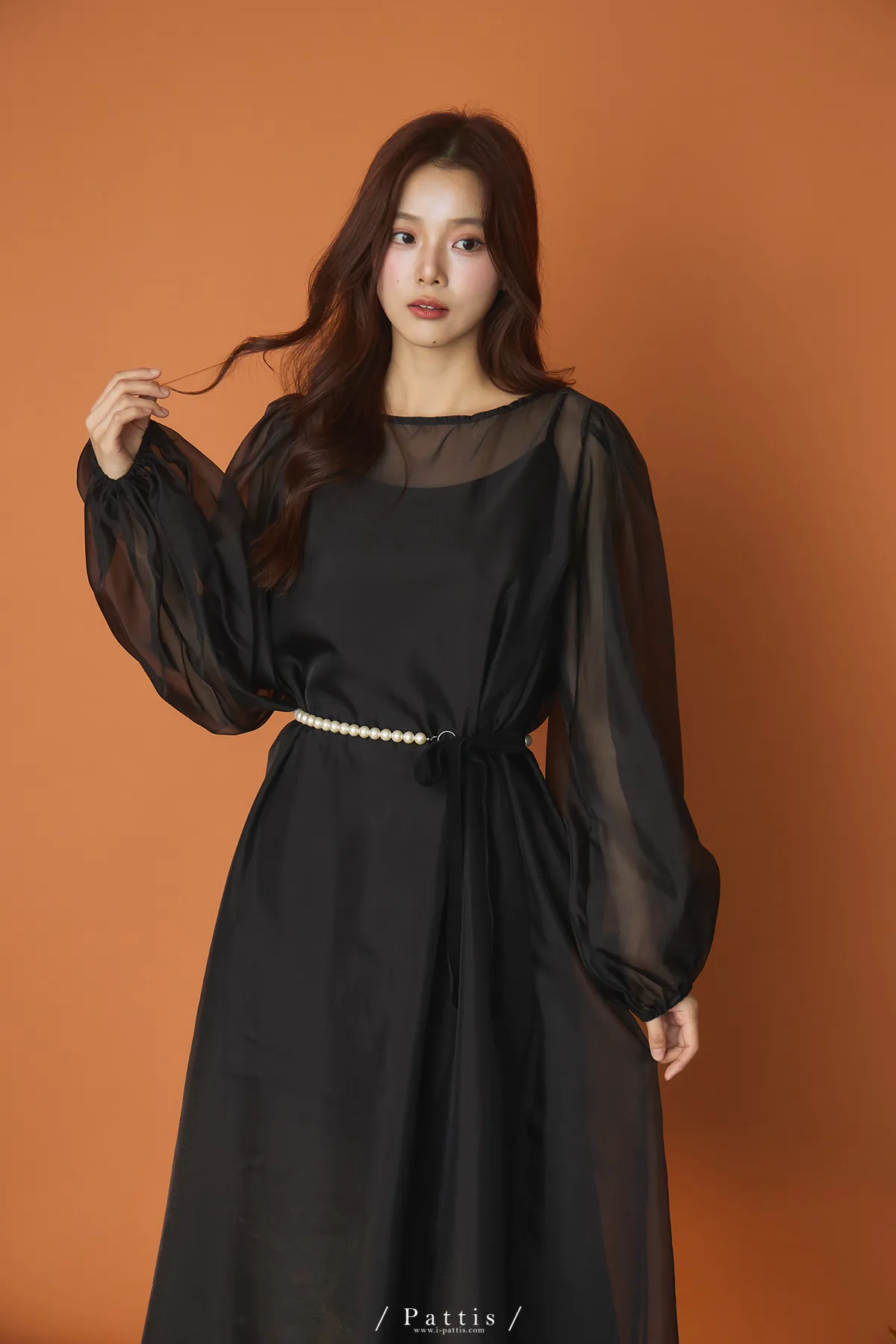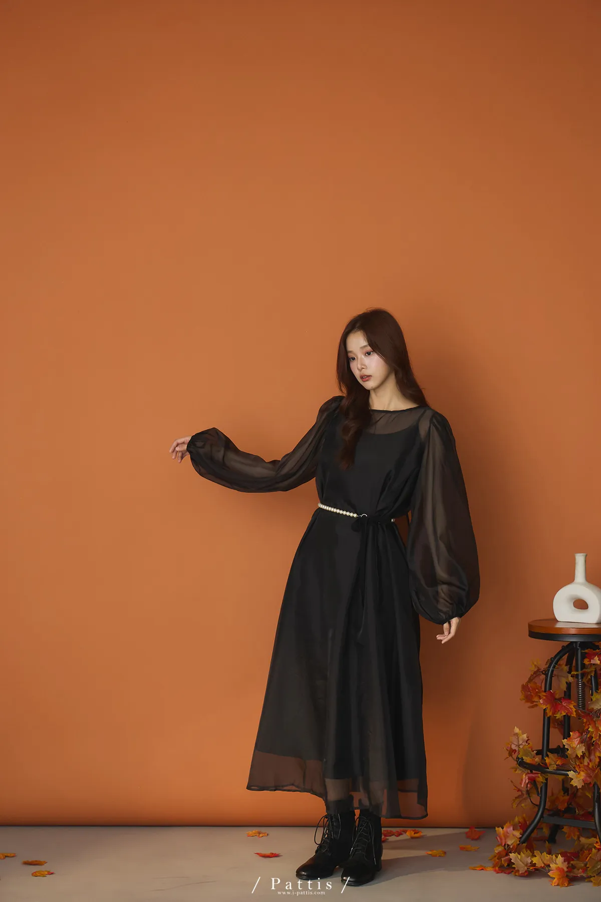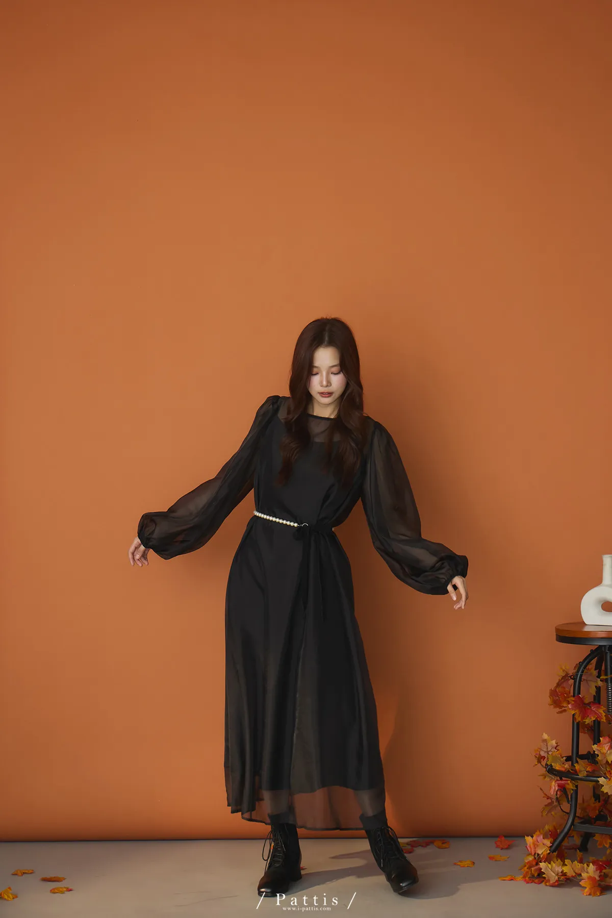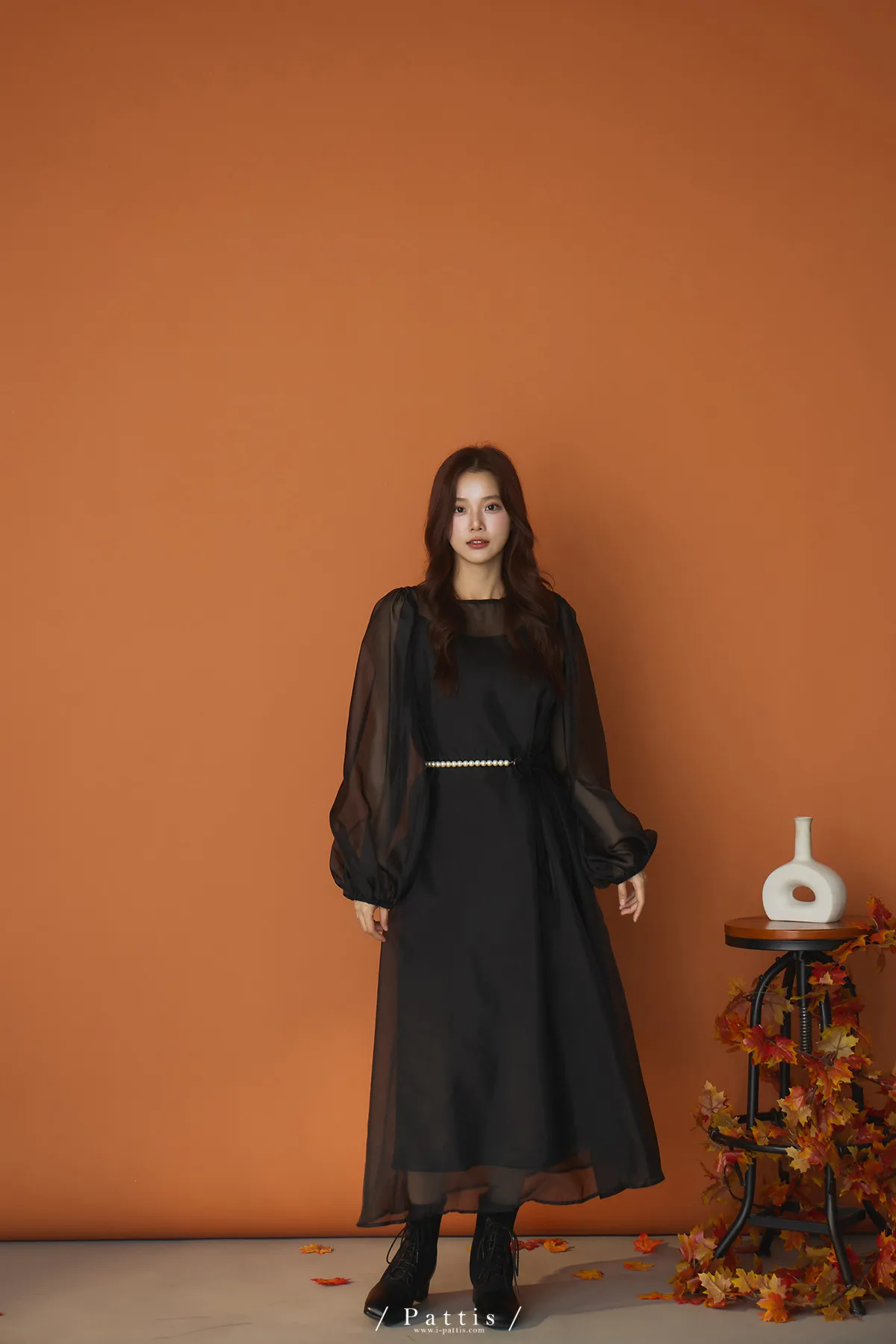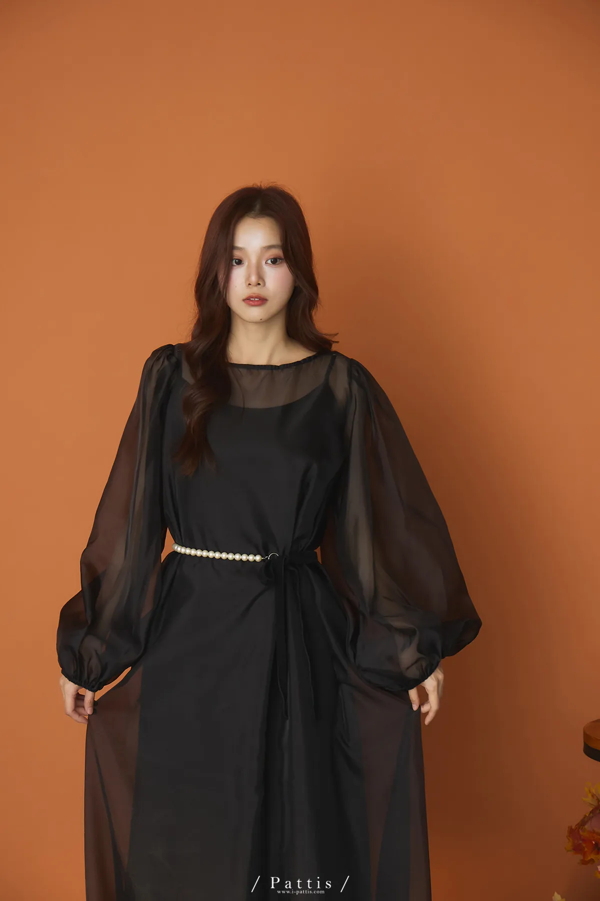 名為慵懶的週末日 | 正反兩穿蝴蝶結蓬袖罩衫+吊帶襯裙set(黑)