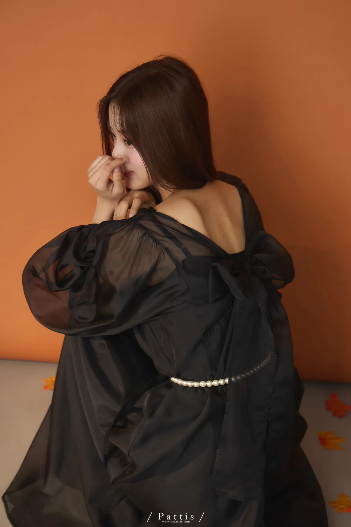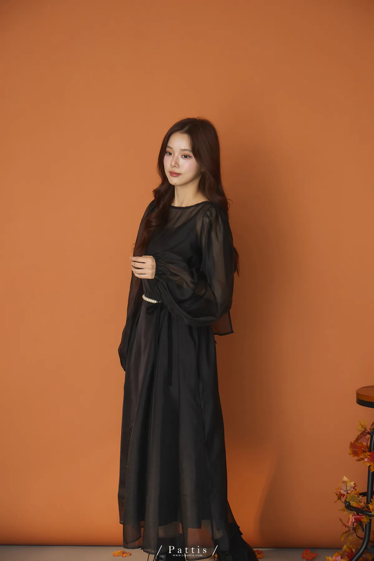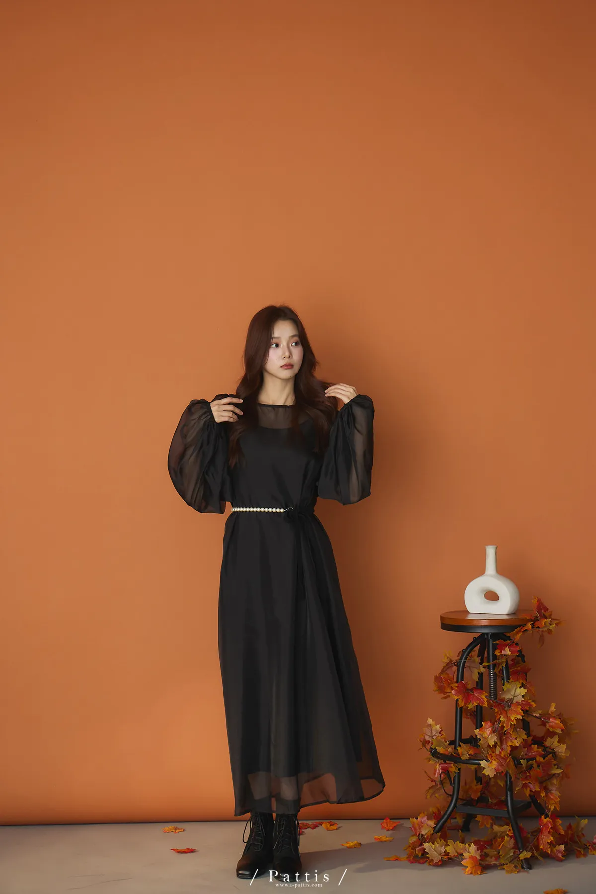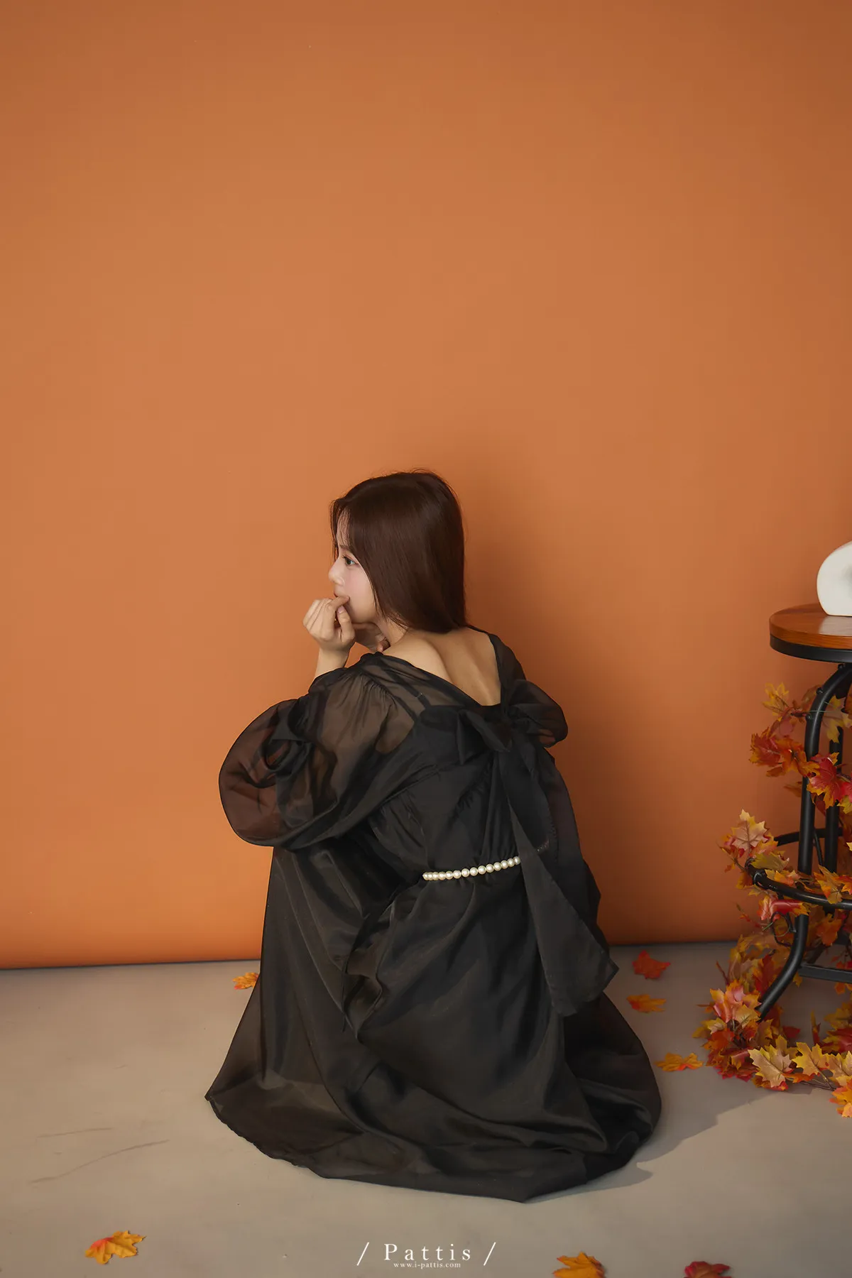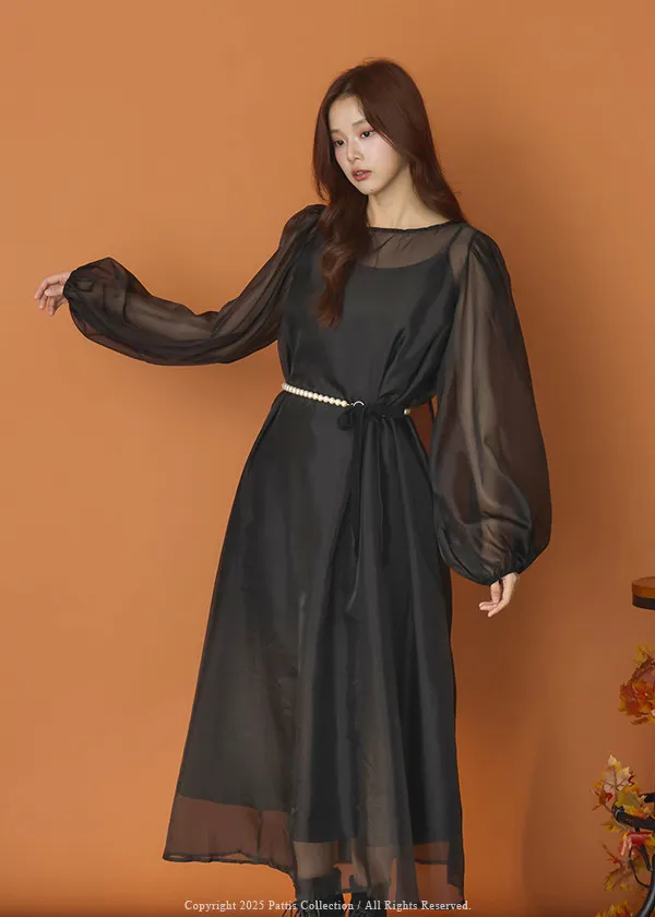 名為慵懶的週末日 | 正反兩穿蝴蝶結蓬袖罩衫+吊帶襯裙set(黑)