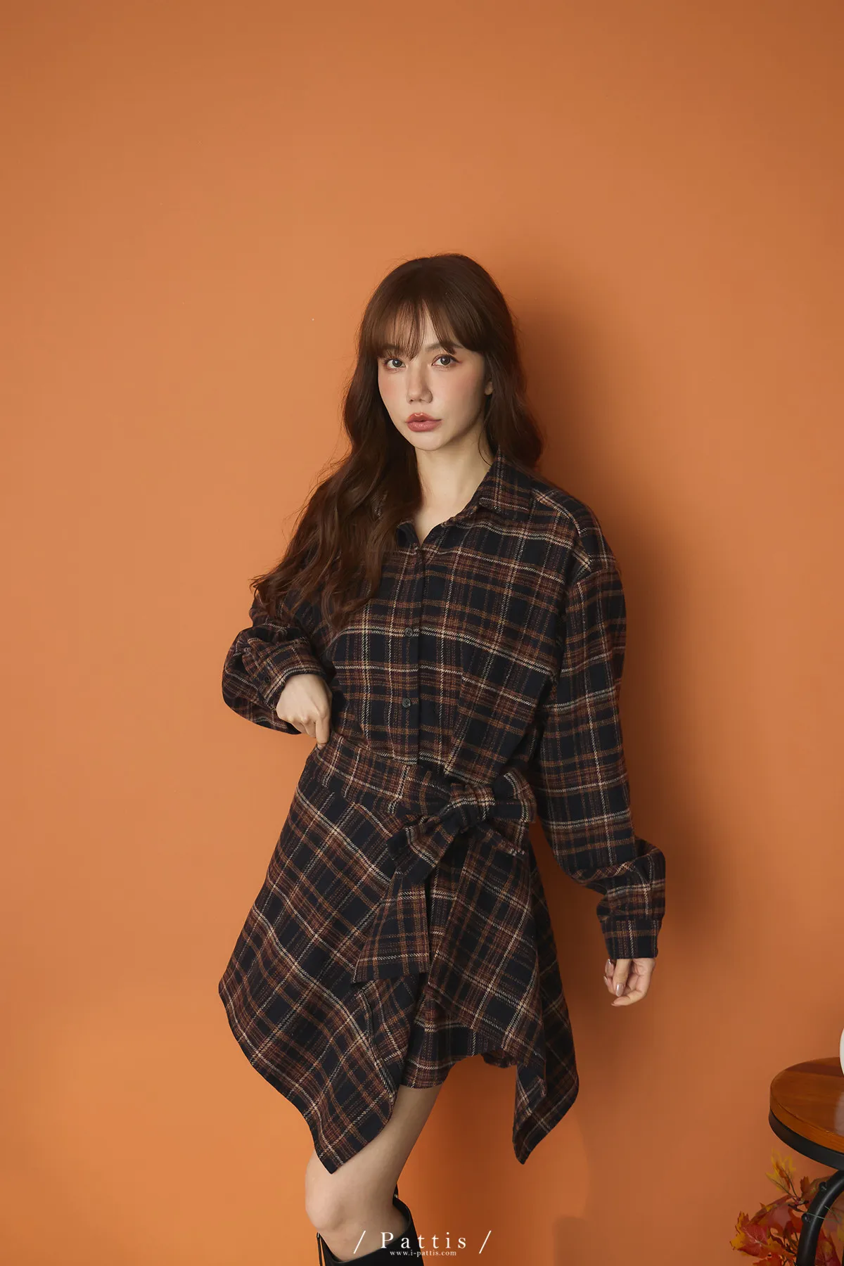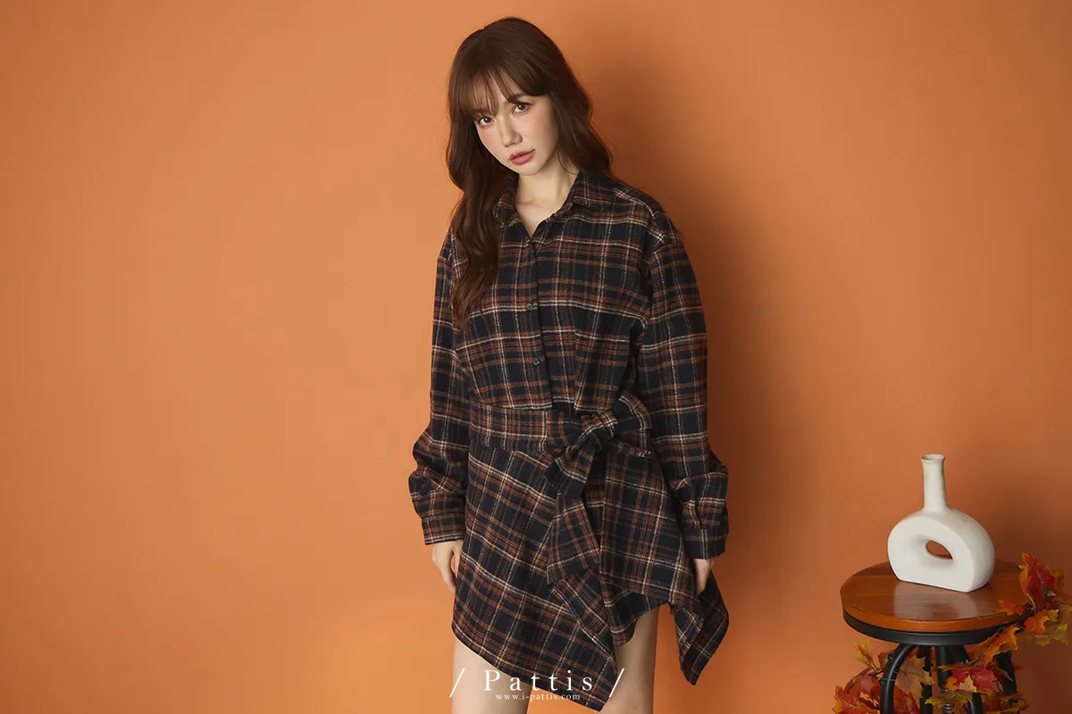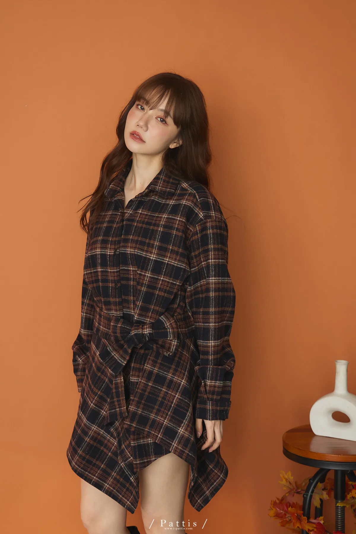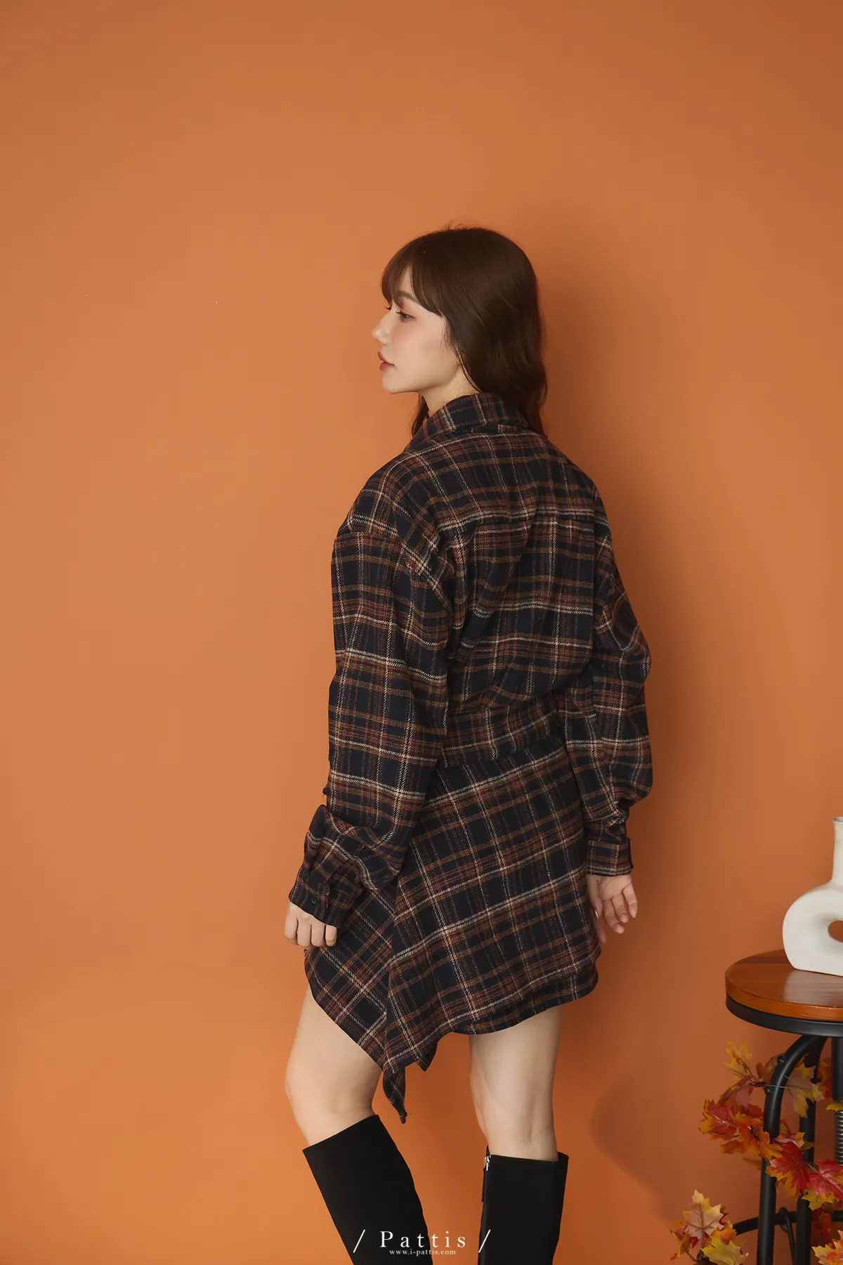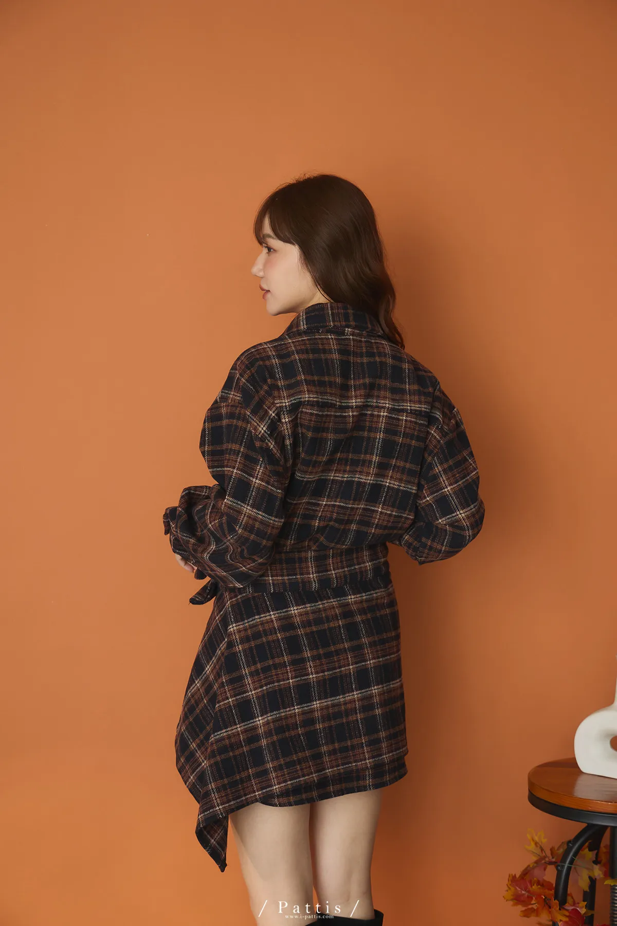 線上溫柔 | 格紋壓摺片裙+襯衫短羊毛洋裝set(黑)